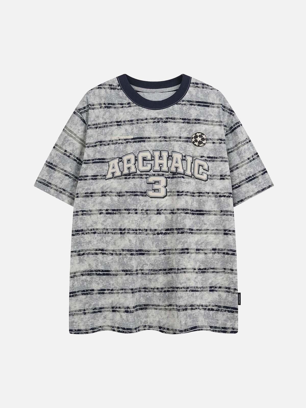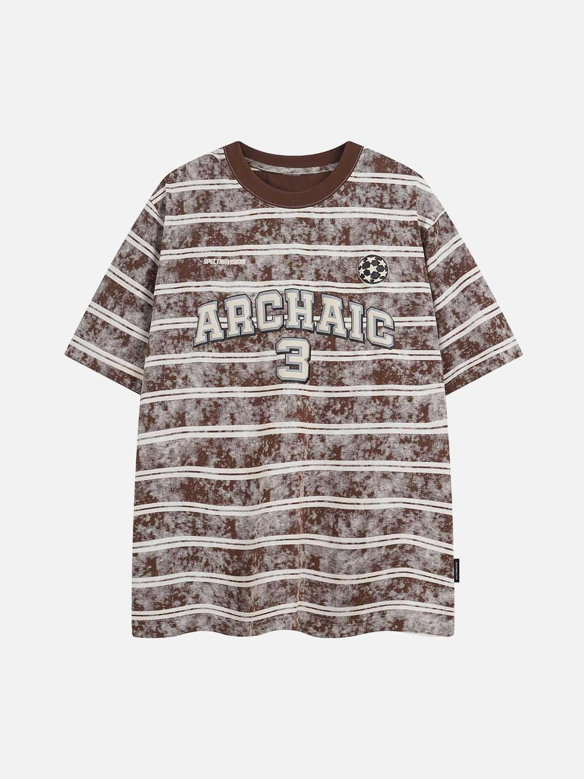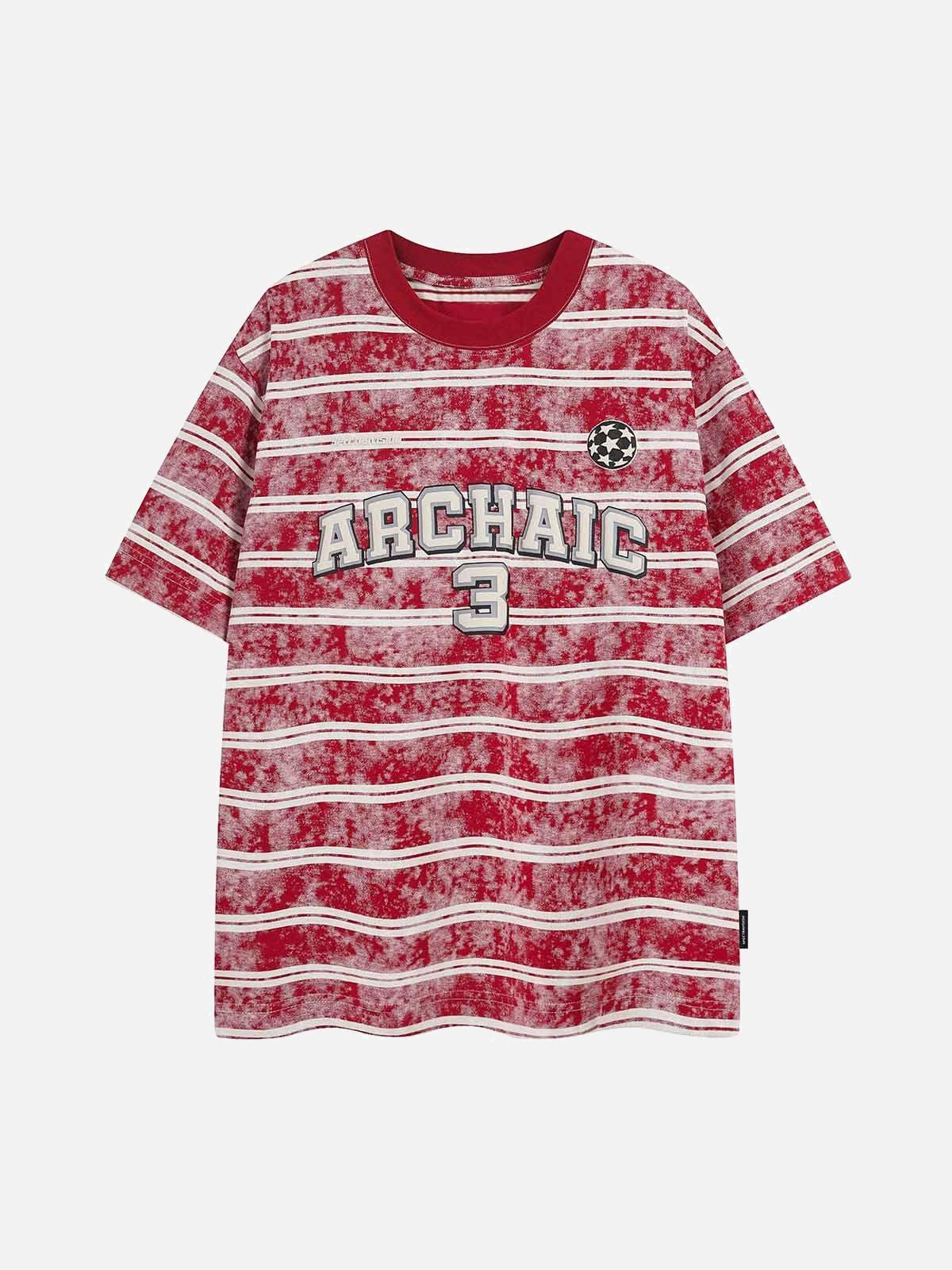 Dare to redefine your summer style with this striking red tee, where bold stripes and a distressed texture collide to create a look that speaks volumes. The prominent ‘ARCHAIC 3’ emblem adds an athletic edge, making it perfect for those who live life in high gear. Available in versatile sizes from S to XL, this piece is your go-to for a look that’s both relaxed and attention-grabbing. Pair it with your favorite jeans or shorts for a casual vibe that’s anything but ordinary. Ready to step up your summer fashion game?