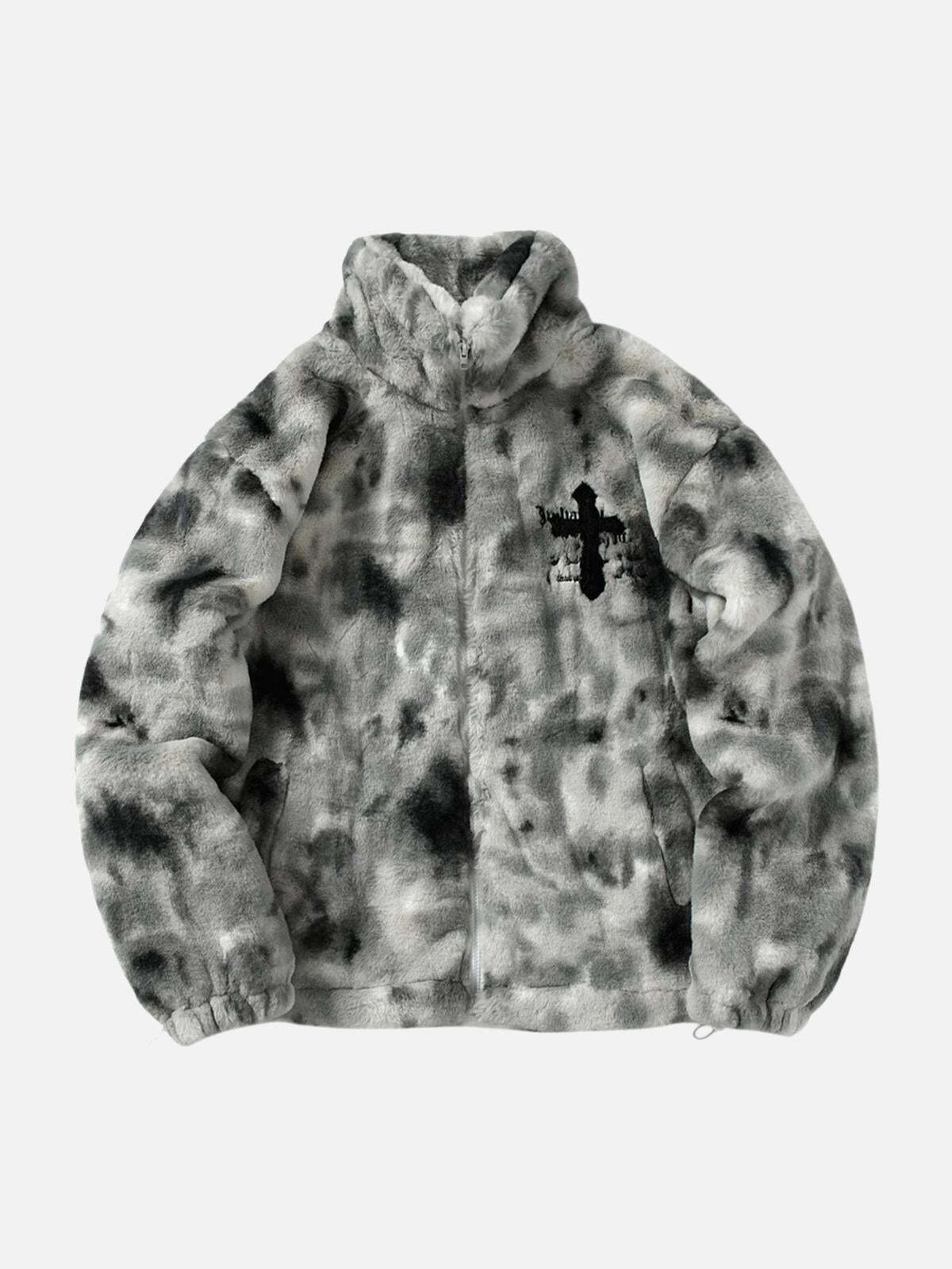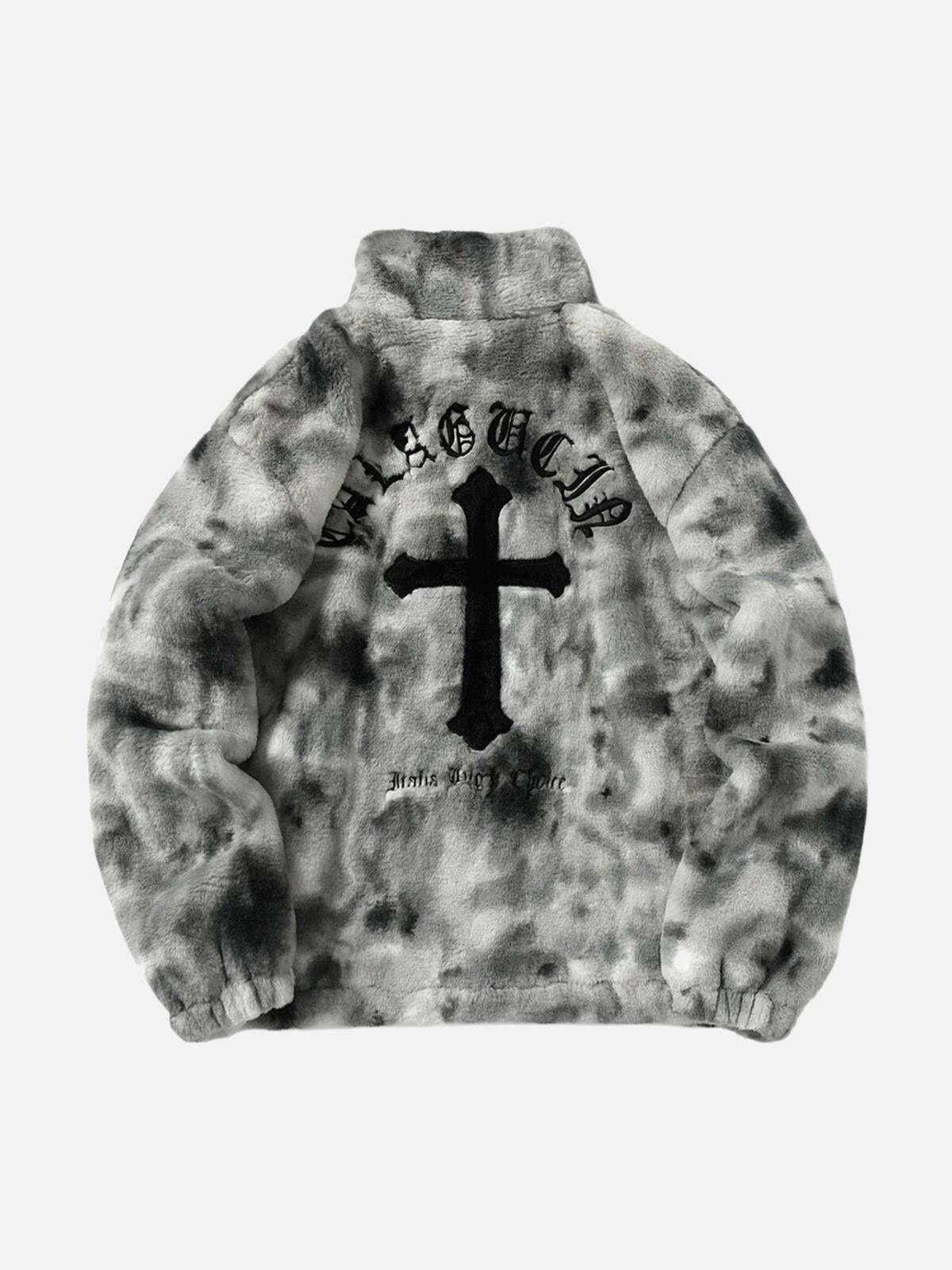 Unleash your edge with this bold streetwear essential, where the plush gray and blue hues collide in a mesmerizing tie-dye pattern that demands attention. The luxurious texture wraps you in warmth while the sleek fit offers comfort and confidence in sizes ranging from S to 2XL. Perfect for layering over your favorite y2k outfits, its edgy cross emblem adds a rebellious touch to any ensemble. Pair it with your go-to sneakers for effortless outfit inspo that keeps you ahead of the trend. Slip into this jacket and let your style speak volumes.