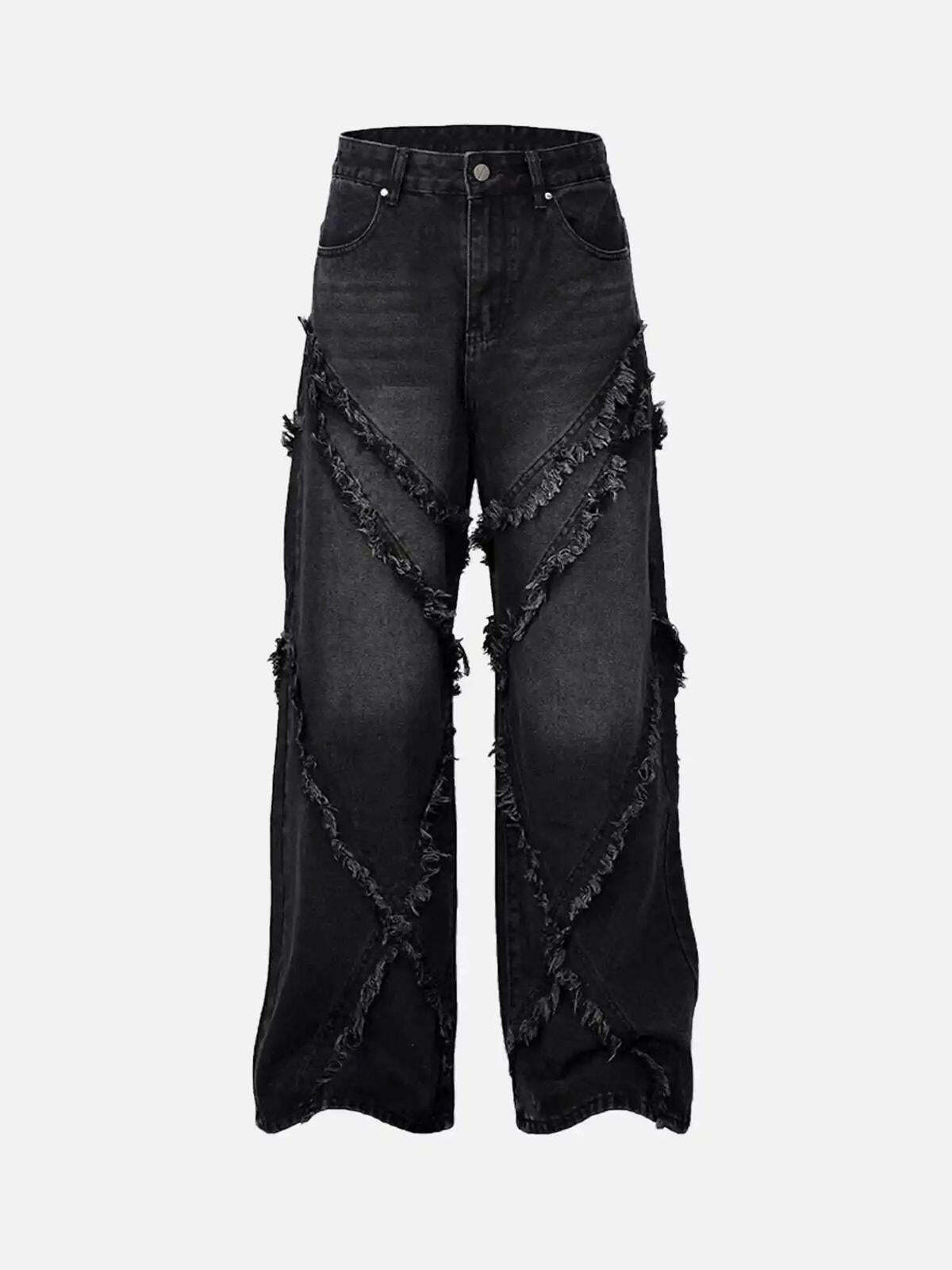 Break the mold with these daring oversized jeans, featuring bold diagonal stitching that redefines streetwear fashion with every step. Available in classic black and an electric blue, the raw textures and wide-leg fit create a striking silhouette that demands attention. Pair them with your favorite graphic tee or a sleek bomber jacket to channel ultimate Y2K vibes. Offered in sizes M, L, and XL, these jeans are your go-to for unapologetic style and comfort. Ready to redefine your outfit inspo? Dive into the revolution.