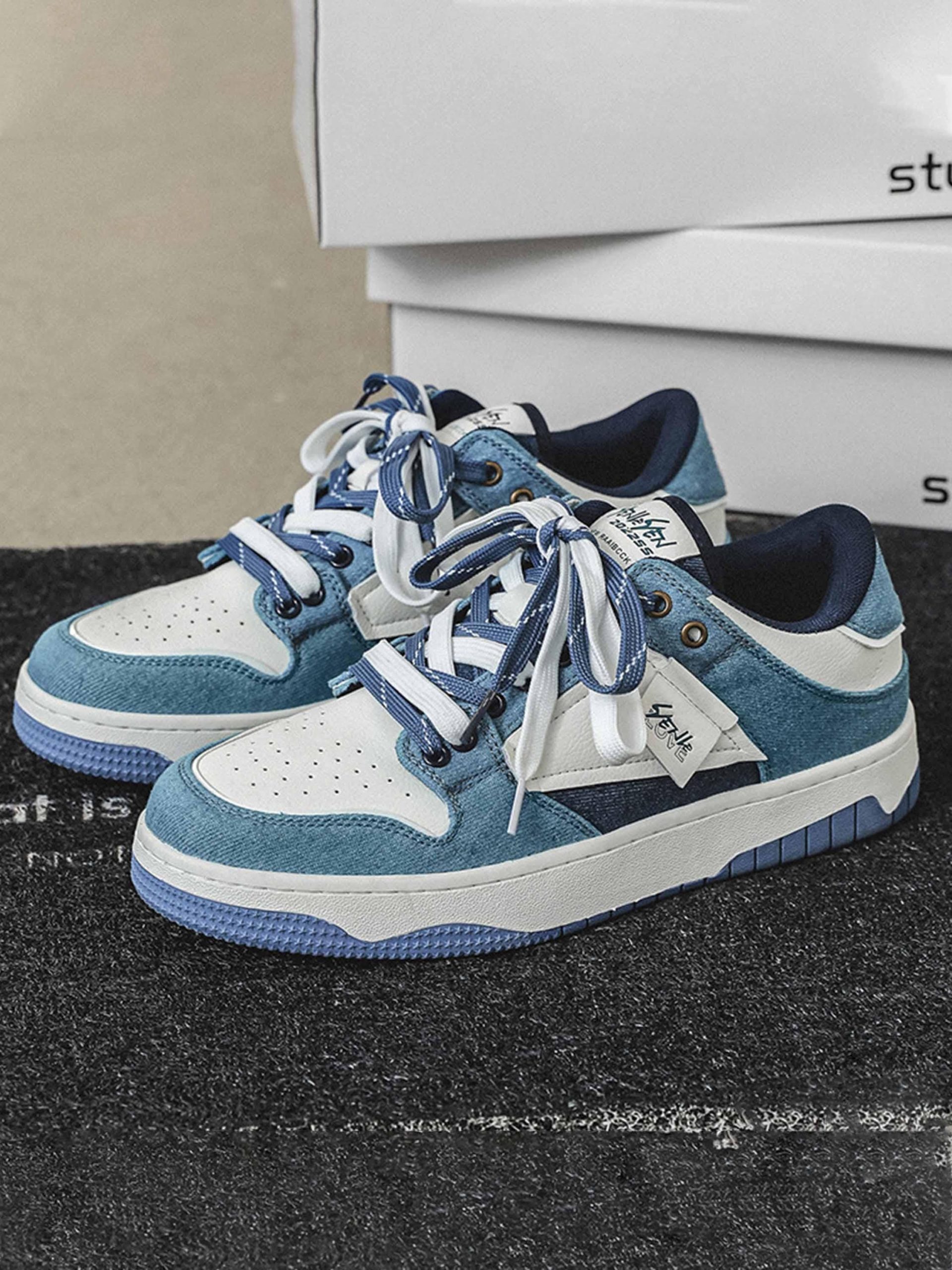 Step into urban flair with these dynamic kicks that blend retro vibes and modern edge. The striking combination of denim blue and crisp white makes these sneakers a standout choice for any streetwear fashion enthusiast. The textured layers and bold stitching add depth, while the comfortable fit ensures you’re ready to take on the city streets. Available in sizes ranging from 39 to 44, these sneakers are perfect for those who love to mix up their wardrobe with versatile outfit ideas. Lace up and let your feet do the talking.