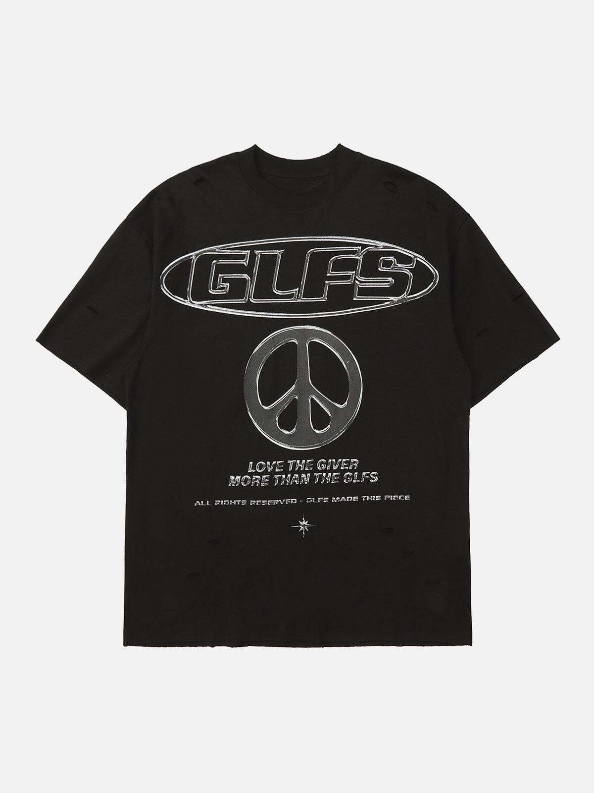 Break the mold with this standout tee, featuring a bold graphic design that commands attention. The distressed black fabric is your canvas for urban expression, while the prominent peace symbol and striking typography bring a message of unity and style. Available in versatile sizes from M to 2XL, this piece is perfect for pairing with your favorite summer outfit. Whether you’re hitting the streets or chilling with friends, let this shirt be your go-to for making a confident impression. Grab yours now and redefine your summer fashion story.