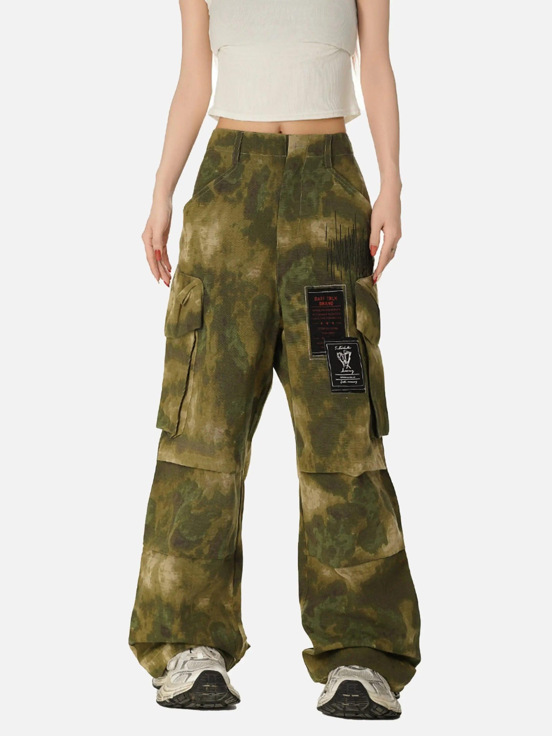 Stand out in the urban jungle with these bold camouflage cargo pants, blending rugged style with modern streetwear fashion. The textured fabric showcases a raw edge, while the oversized pockets add functionality and flair. With sizes available in M, L, and XL, these pants offer a relaxed fit that’s perfect for layering your favorite y2k outfits. Pair them with a graphic tee and chunky sneakers for effortless outfit ideas that scream confidence. Embrace the vibe and make your mark on the streets with every step.