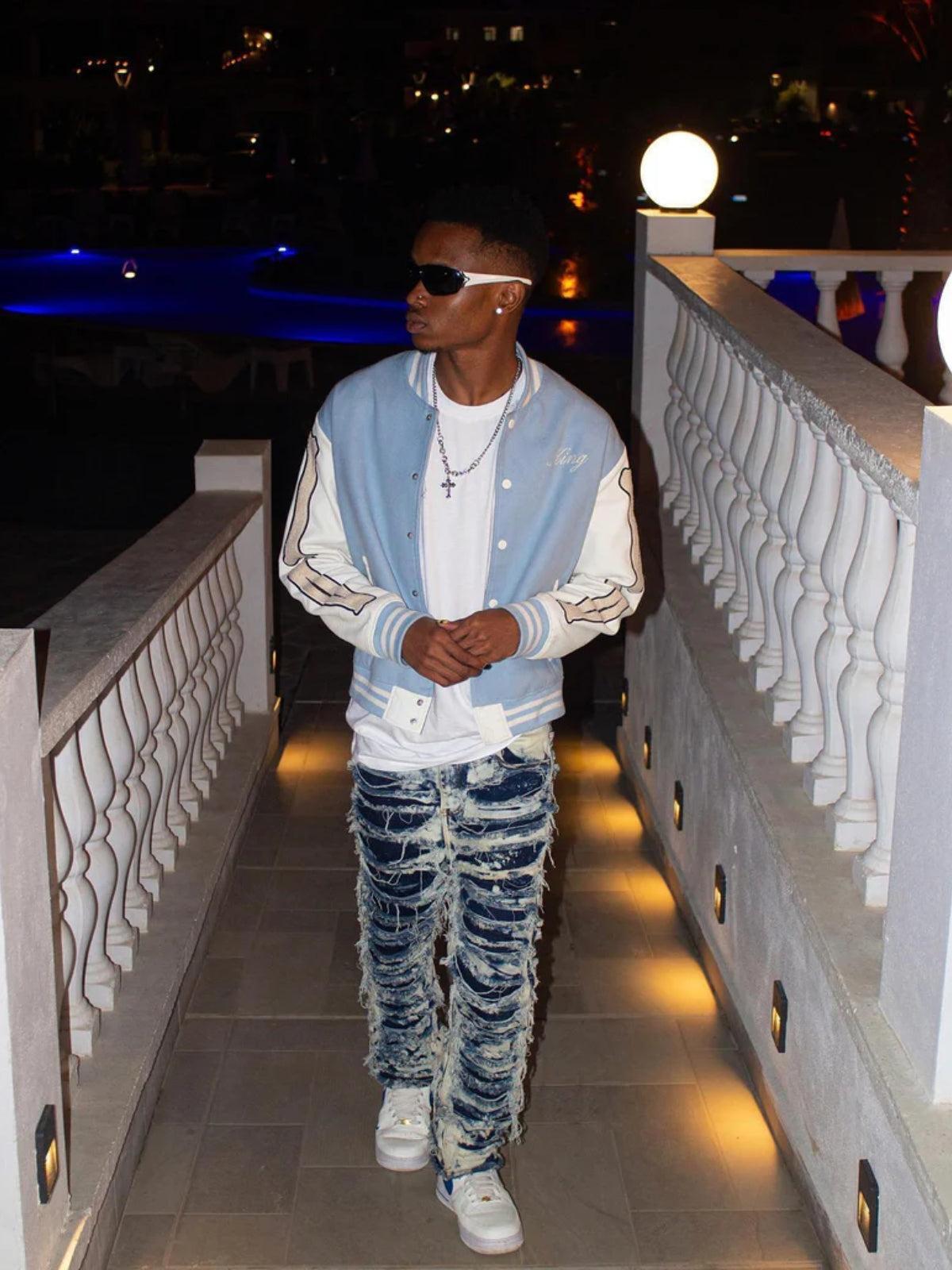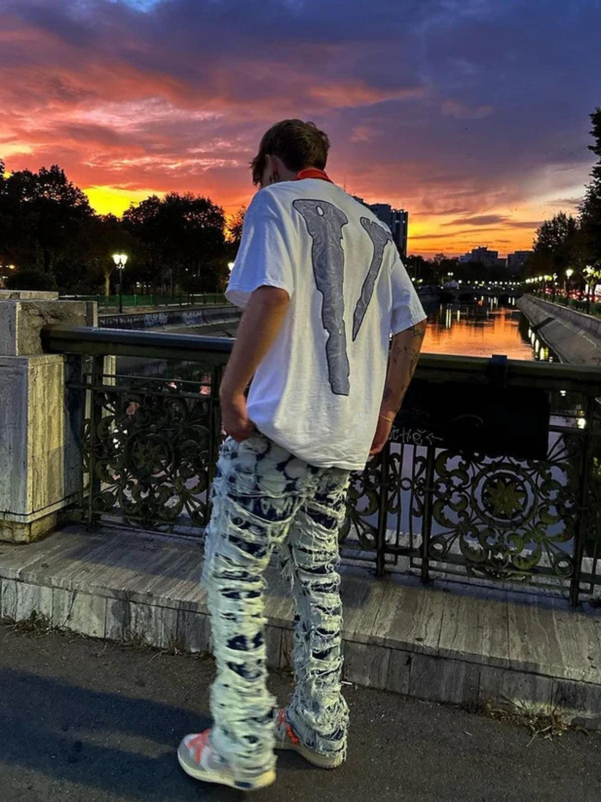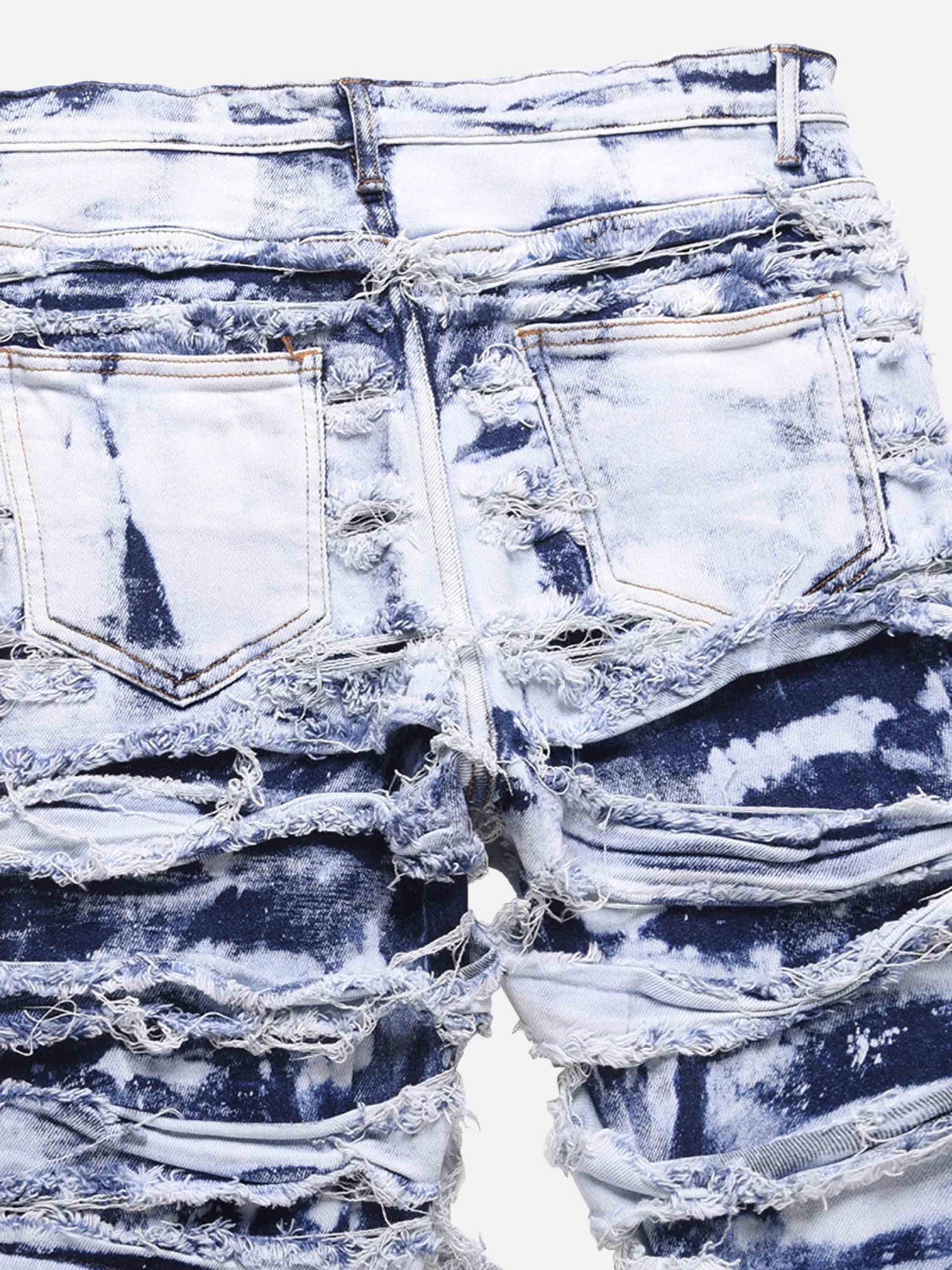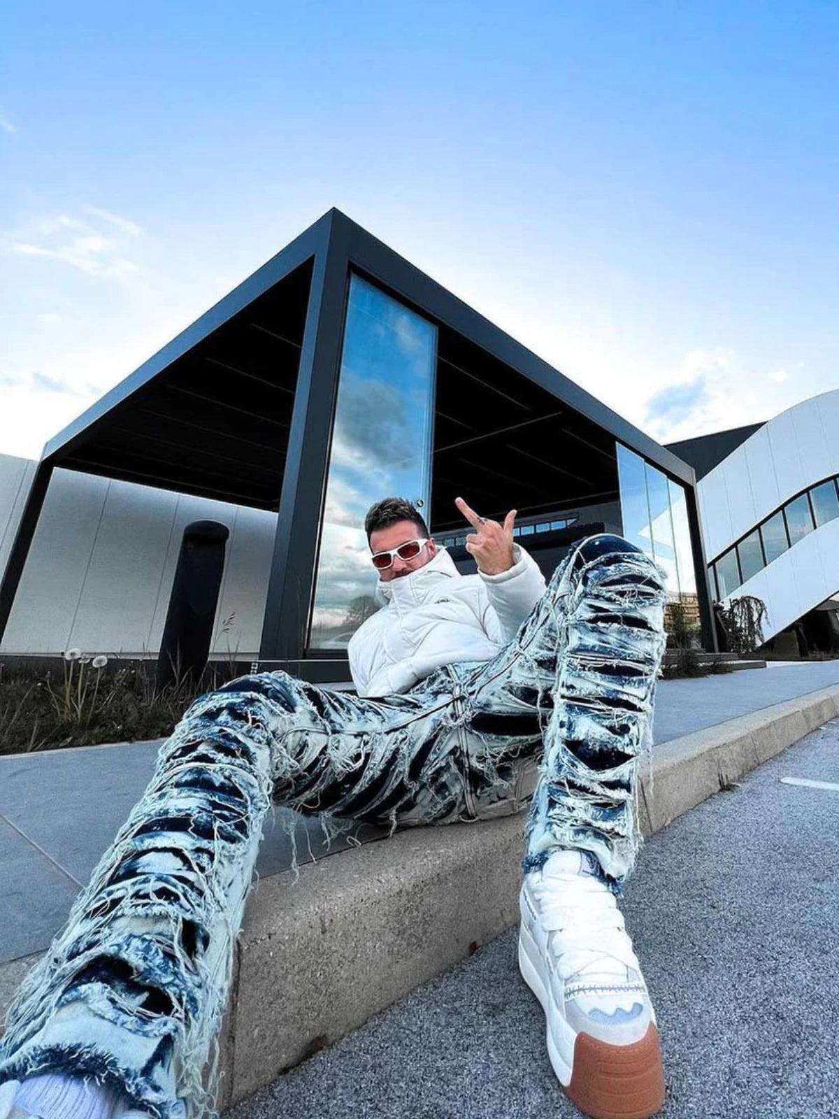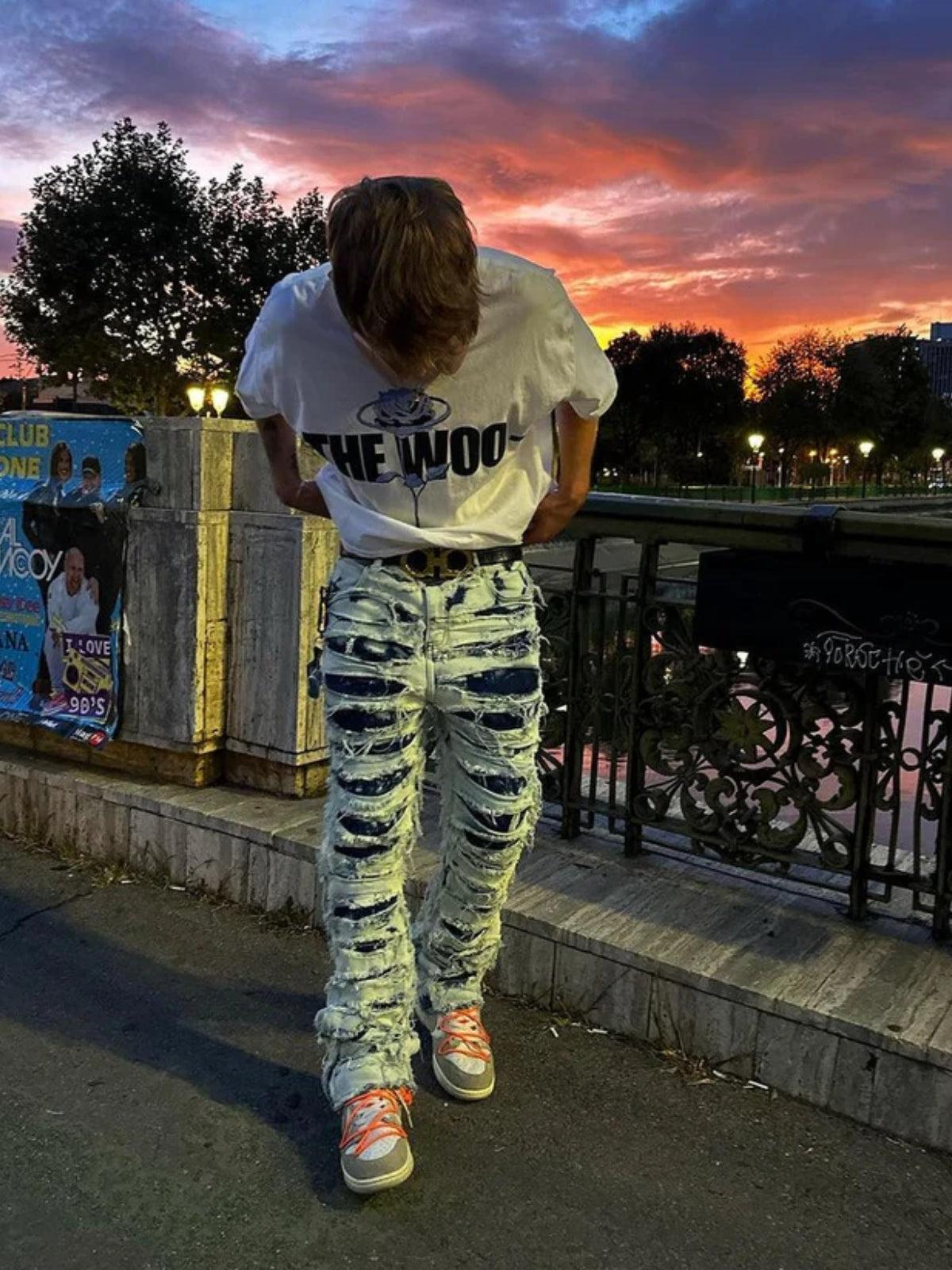 Break the mold with these audaciously distressed, blue denim jeans that scream individuality and fearless style. The rugged texture, with its artfully shredded details, captures the essence of bold streetwear fashion, making it a standout in any urban wardrobe. Available in sizes M through 2XL, these jeans offer a relaxed fit that pairs effortlessly with oversized tees or sleek jackets, perfect for those seeking fresh outfit ideas. Slide into these statement-makers and let your confidence lead the way.