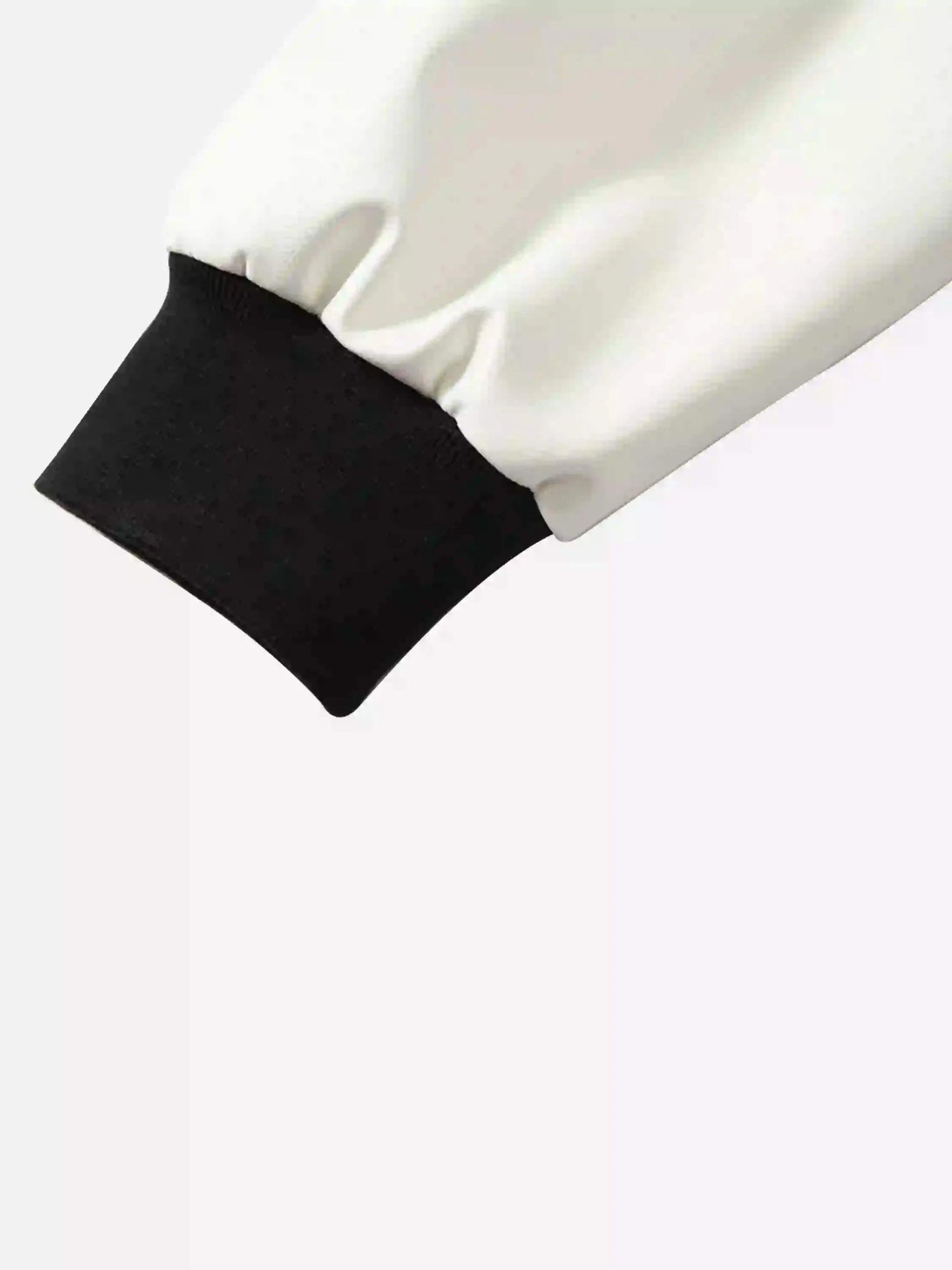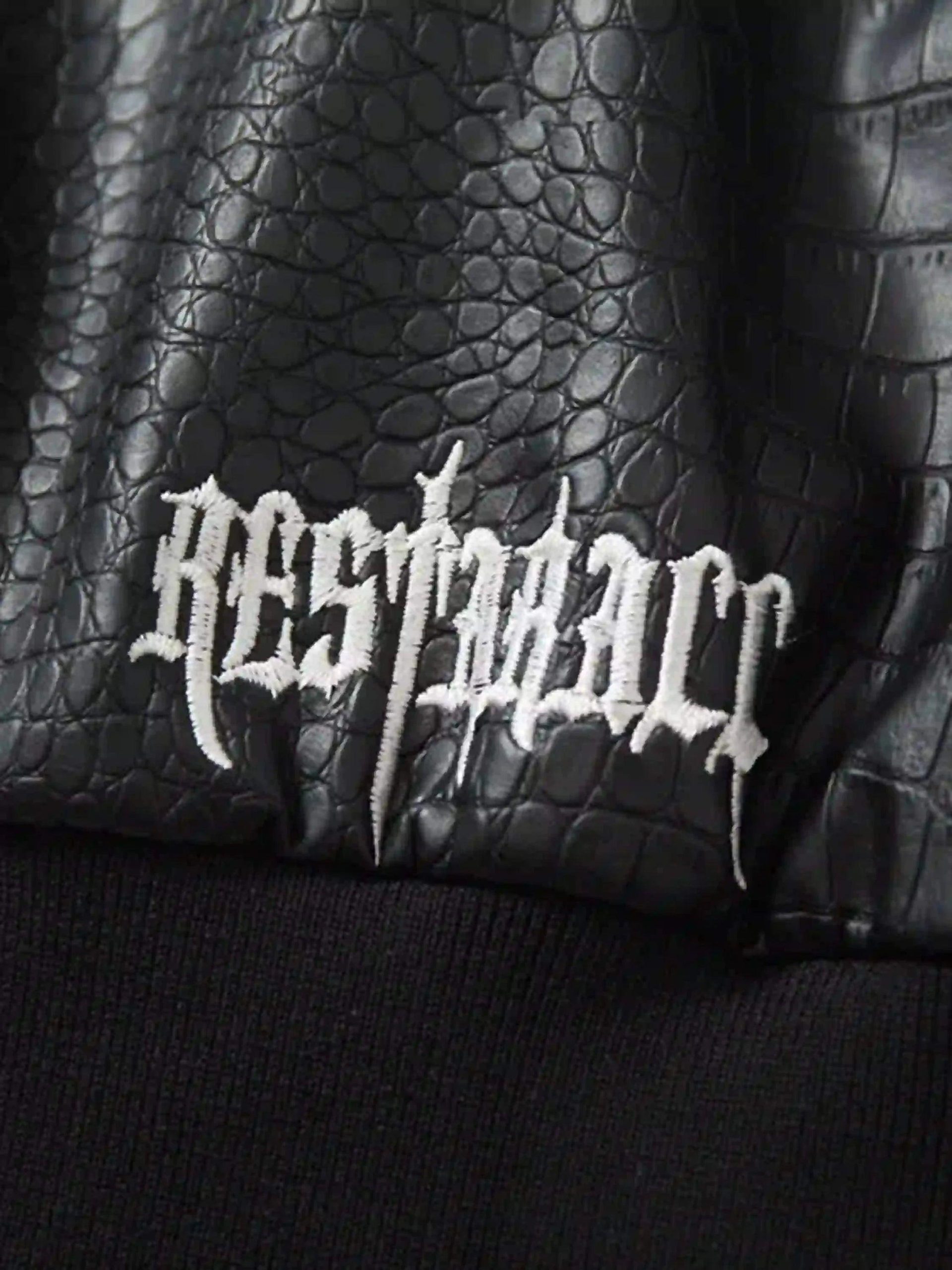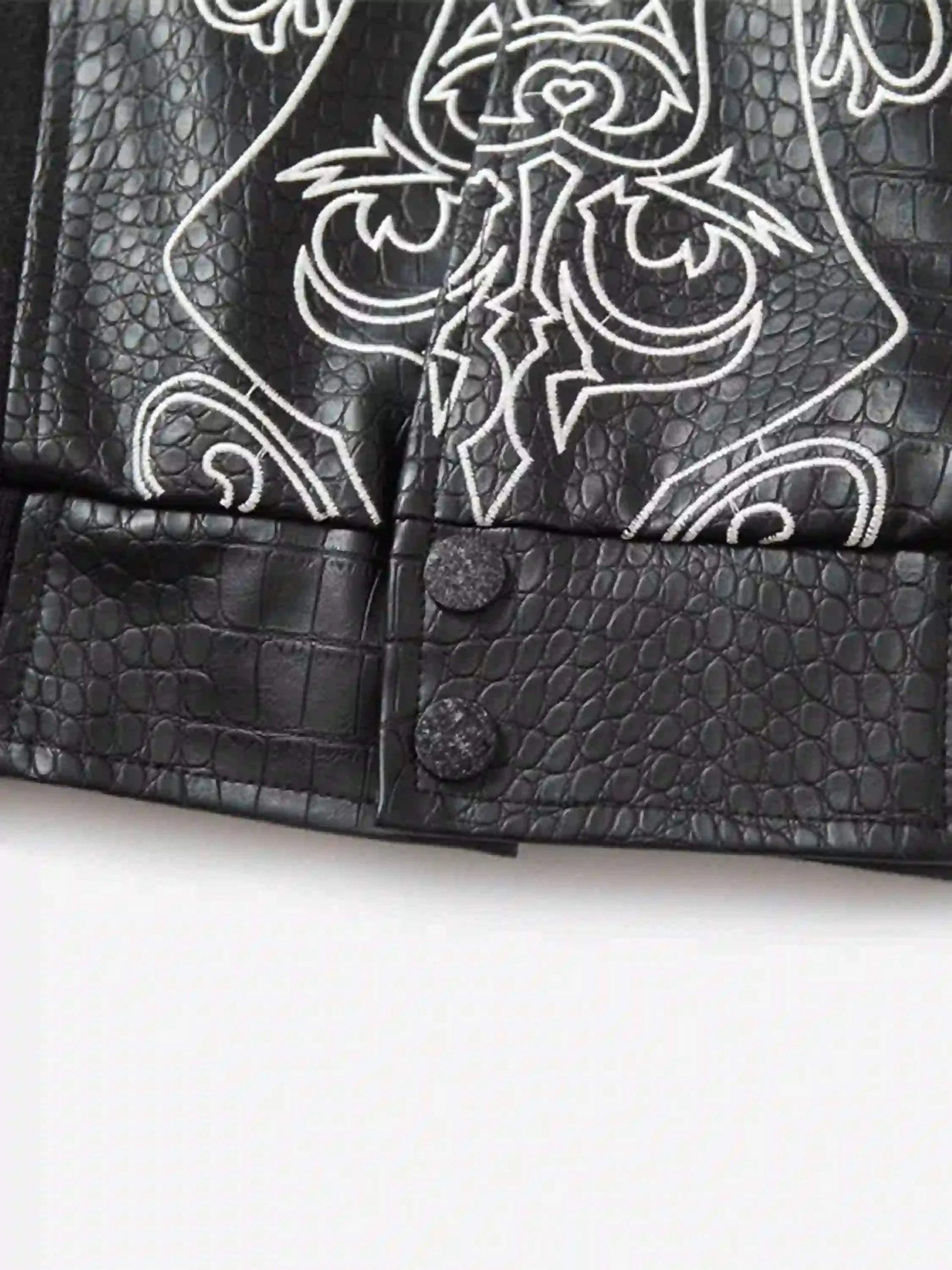 Embrace the raw edge of urban style with this striking jacket, where bold black contrasts meet intricately detailed white embroidery that demands attention. The sleek faux leather texture adds a touch of sophistication, effortlessly blending with the classic monochrome palette. Its relaxed fit ensures comfort across sizes from M to XXL, making it a versatile choice for any streetwear fashion enthusiast. Pair it with your favorite kicks and jeans for a look that resonates with the vibe of the city. Own the streets with confidence.