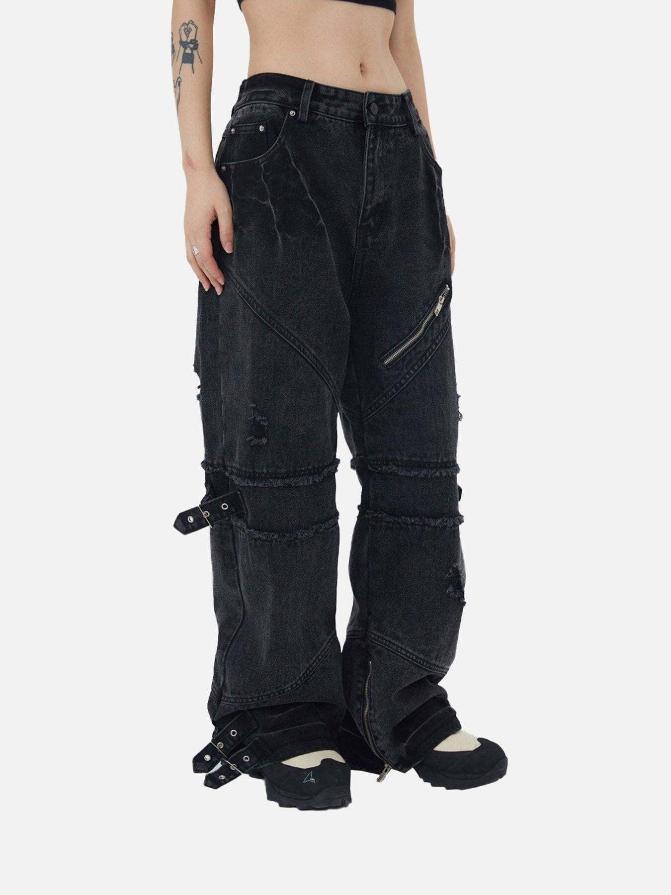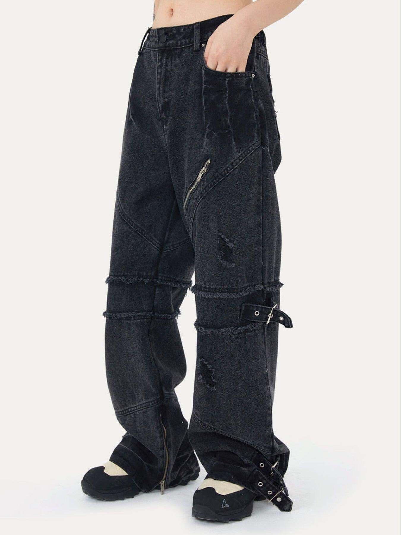 Concert Outfit Hip-hop Retro Wash Denim Straight-leg Pants – Concert Outfit