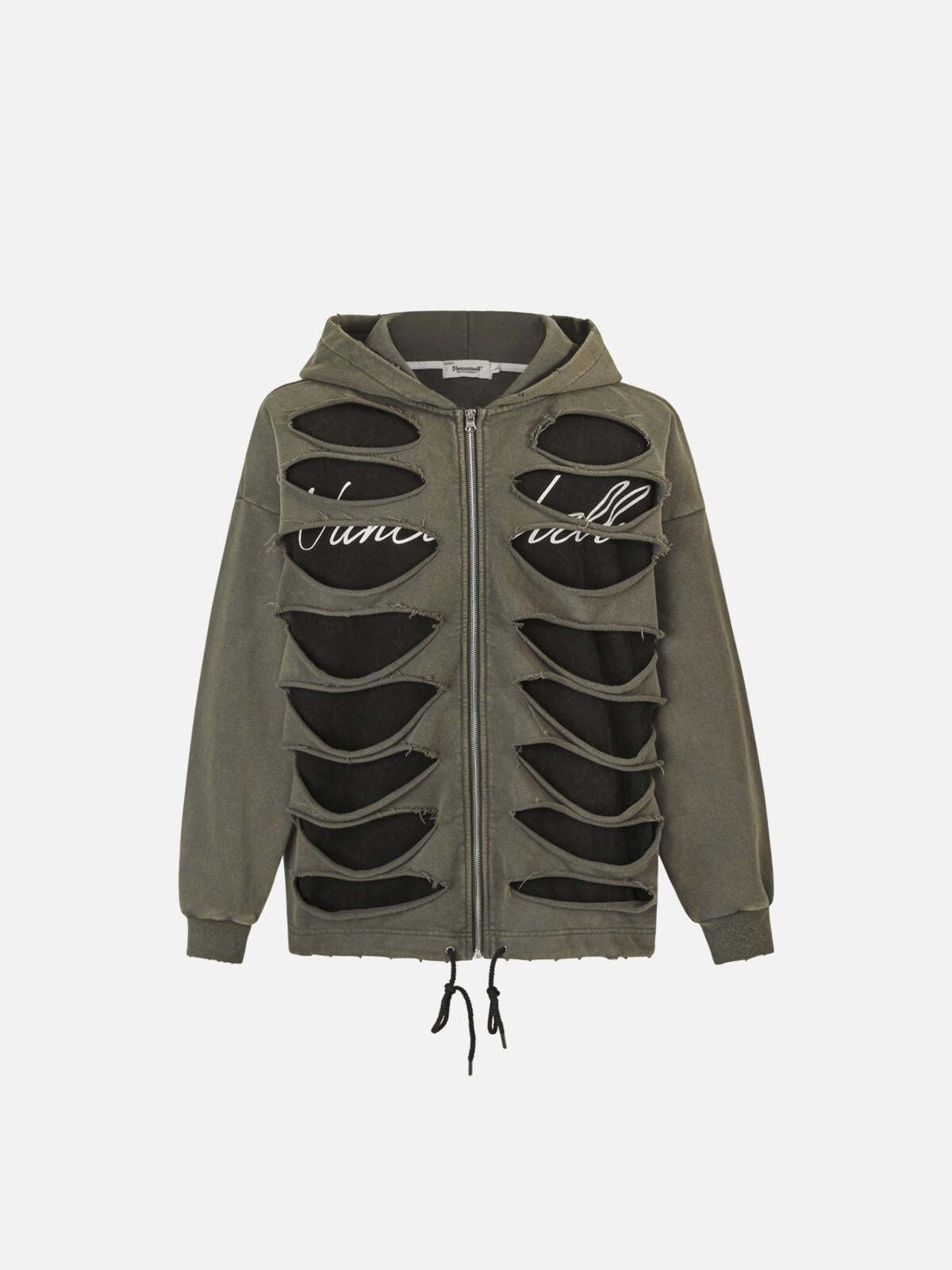 Redefine urban cool with this audacious hoodie, featuring edgy cut-out details that let you layer your look with bold confidence. The interplay of rugged gray and sleek black creates a striking contrast, making it a standout piece in any streetwear fashion ensemble. Available in sizes M, L, XL, and XXL, this hoodie offers a relaxed fit that’s perfect for layering over your favorite tees or pairing with distressed jeans for the ultimate Y2K outfit inspo. Zip it up, pull the drawstrings, and let your style speak volumes.