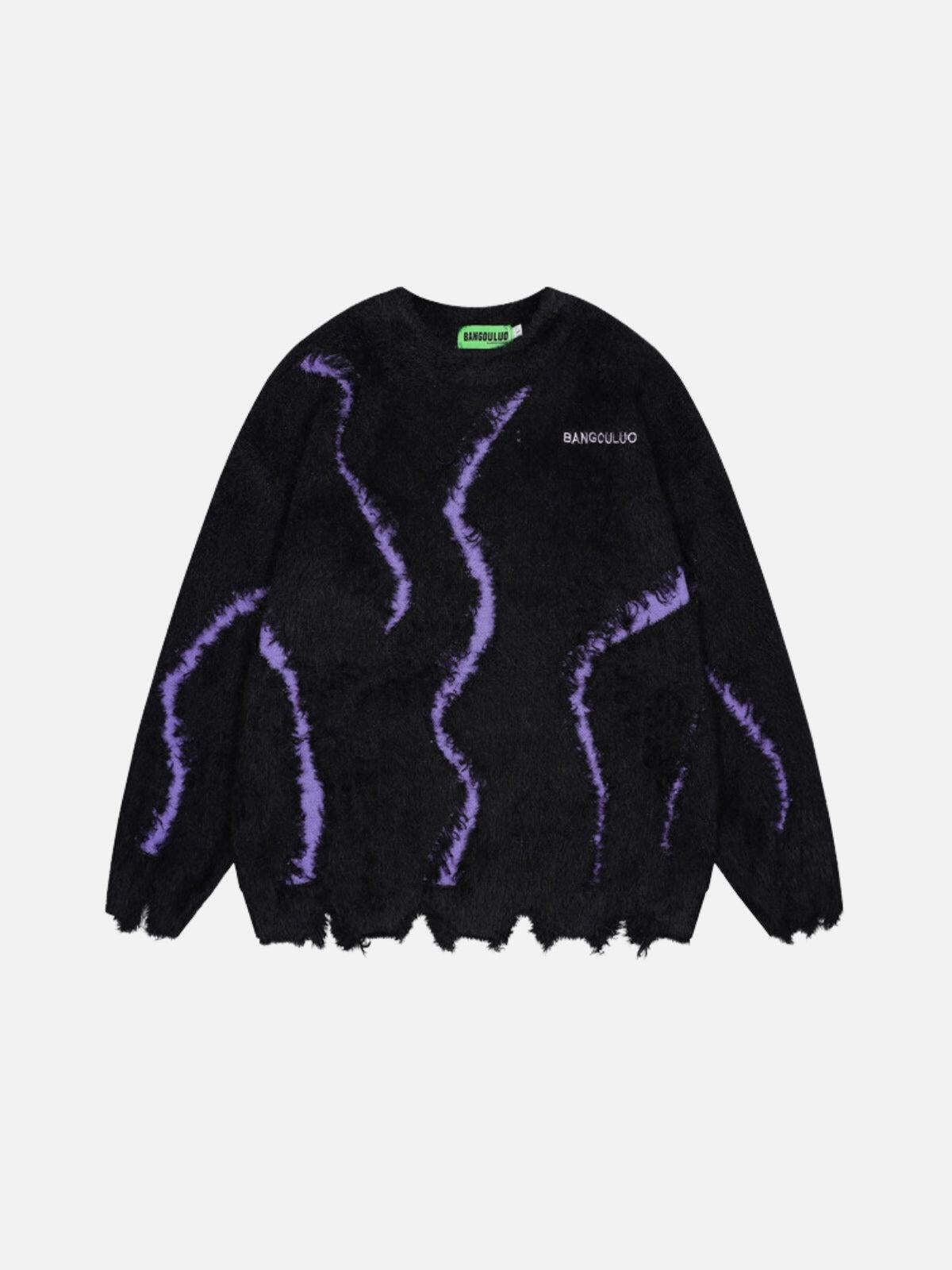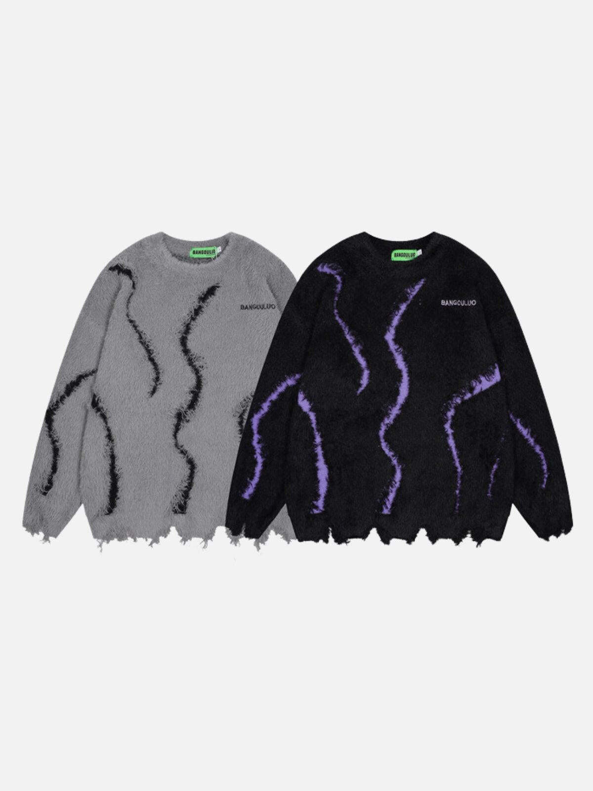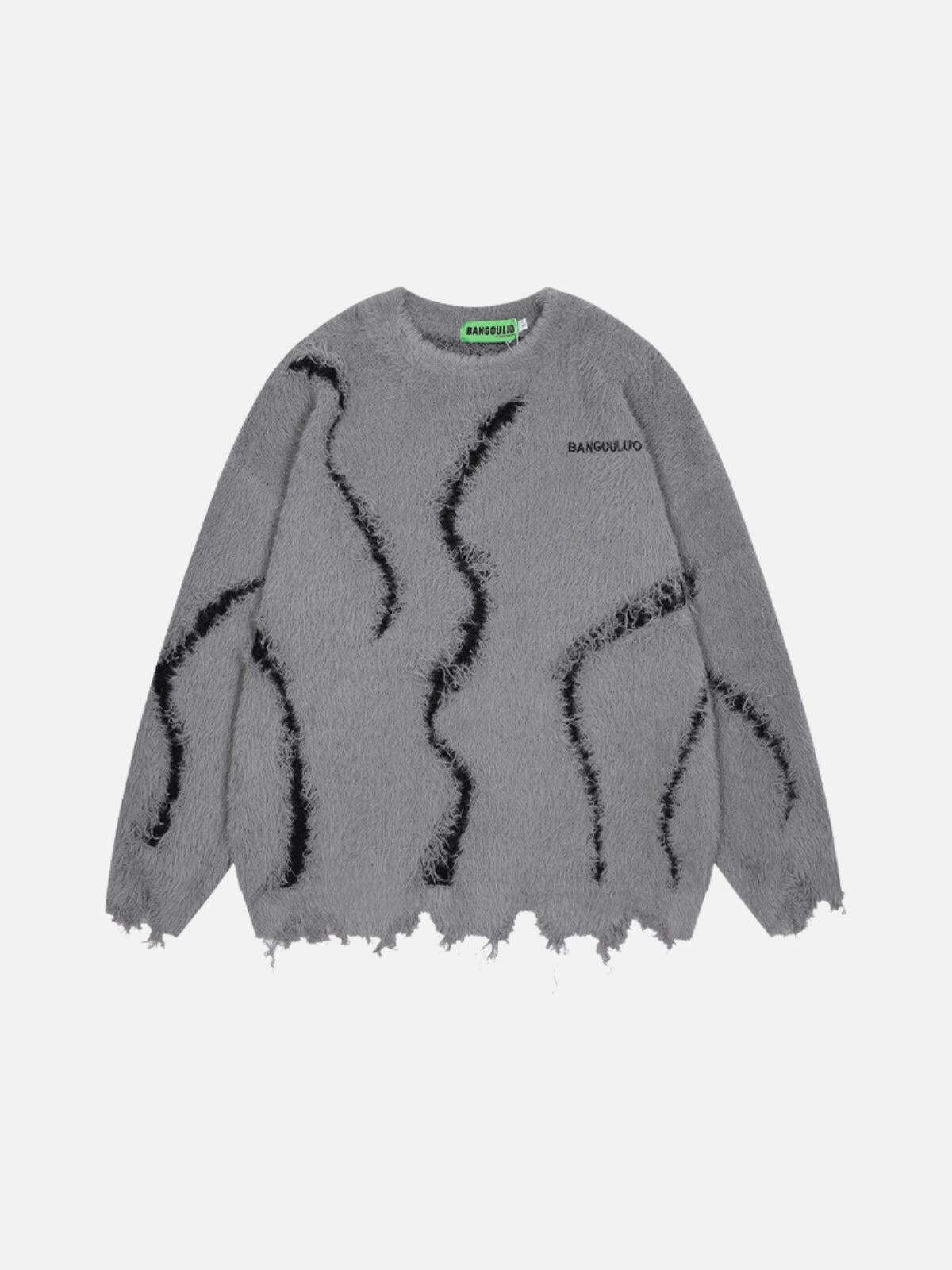 Break the mold with this audacious sweater that screams individuality. Its shaggy gray texture and bold black wave patterns create an edgy vibe, perfect for those who live for streetwear fashion. Whether you’re rocking it in a relaxed XS or going for a looser fit with an L, this piece promises both comfort and style. The rugged, distressed edges add a rebellious twist, making it a versatile staple for both y2k outfit lovers and modern trendsetters. Pair it with your favorite jeans or layer it for a standout look. Dive into the world of urban outfit ideas and grab yours now.