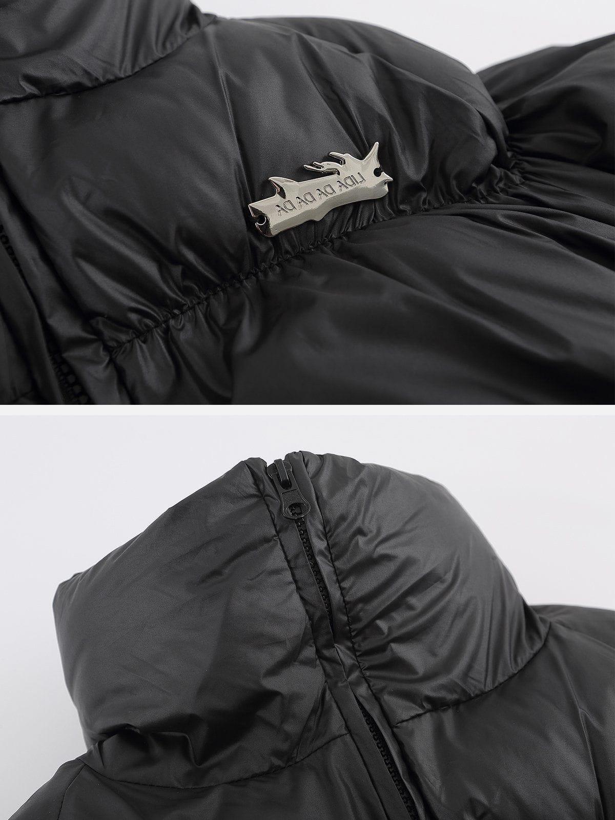 Unleash your inner rebel with this oversized puffer that effortlessly blends futuristic vibes with streetwear fashion. The glossy black finish commands attention, while the bold, exaggerated quilting adds an edge that’s impossible to ignore. Available in versatile shades like green, blue, and white, this piece is perfect for those who dare to stand out. Crafted for comfort and warmth, it offers a relaxed fit that layers seamlessly over your favorite hoodies or tees. Whether you’re hitting the city streets or chilling with friends, this jacket in sizes S to XL ensures you’re always at the forefront of style. Grab yours now and redefine your y2k outfits with an uncompromising flair.