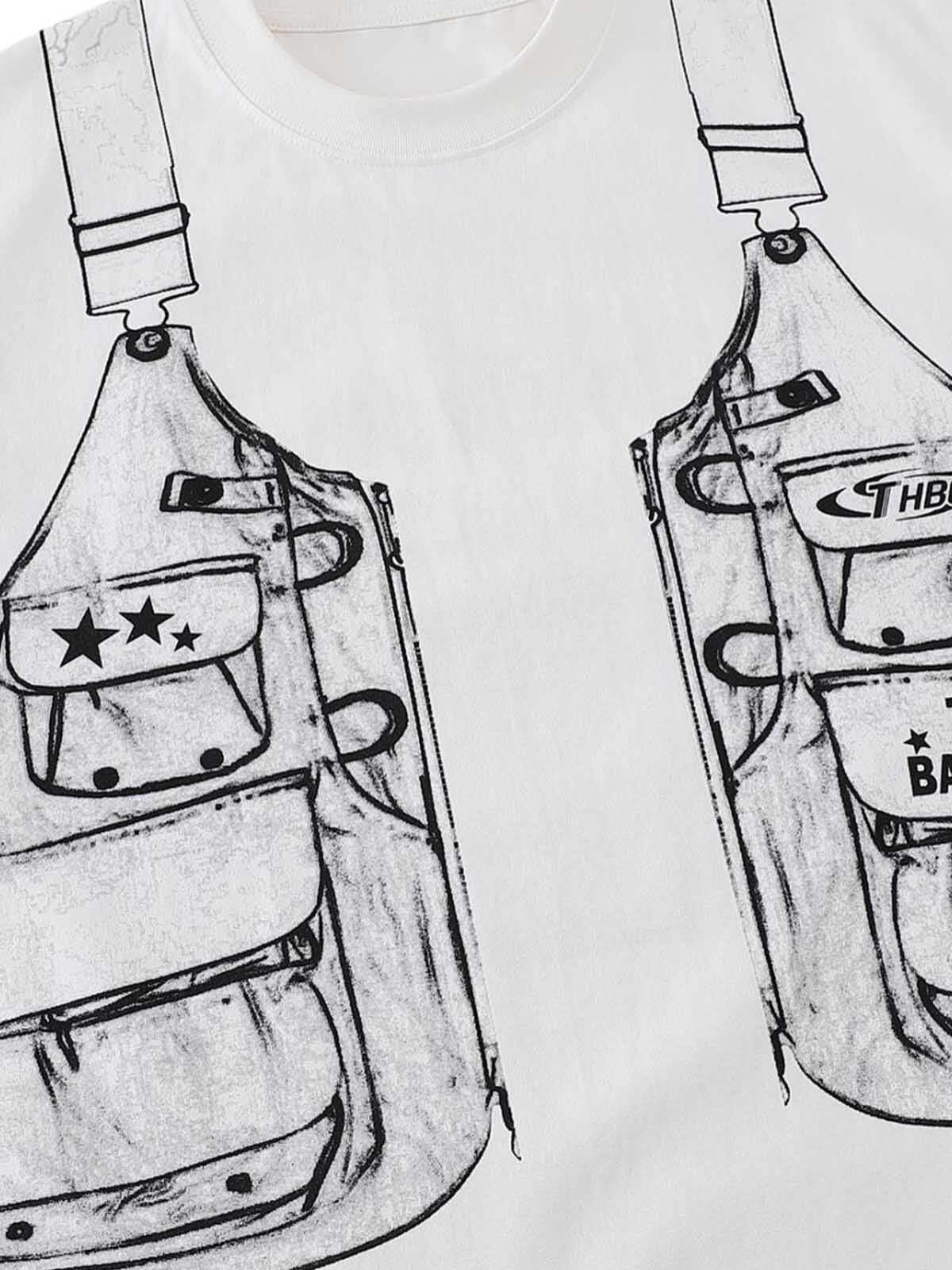 This tee isn’t just clothing; it’s a canvas for fearless expression with its bold graphic design of sketched utility vests on a crisp white backdrop, perfect for those who live to stand out. The relaxed fit ensures comfort, making it a go-to piece for summer fashion inspo, whether you’re hitting the streets in the classic black or keeping it fresh in white. Layer it over your favorite shorts or jeans for an effortless vibe, available in sizes S through XL. Ready to make your mark? This tee is your ticket to unapologetic style.