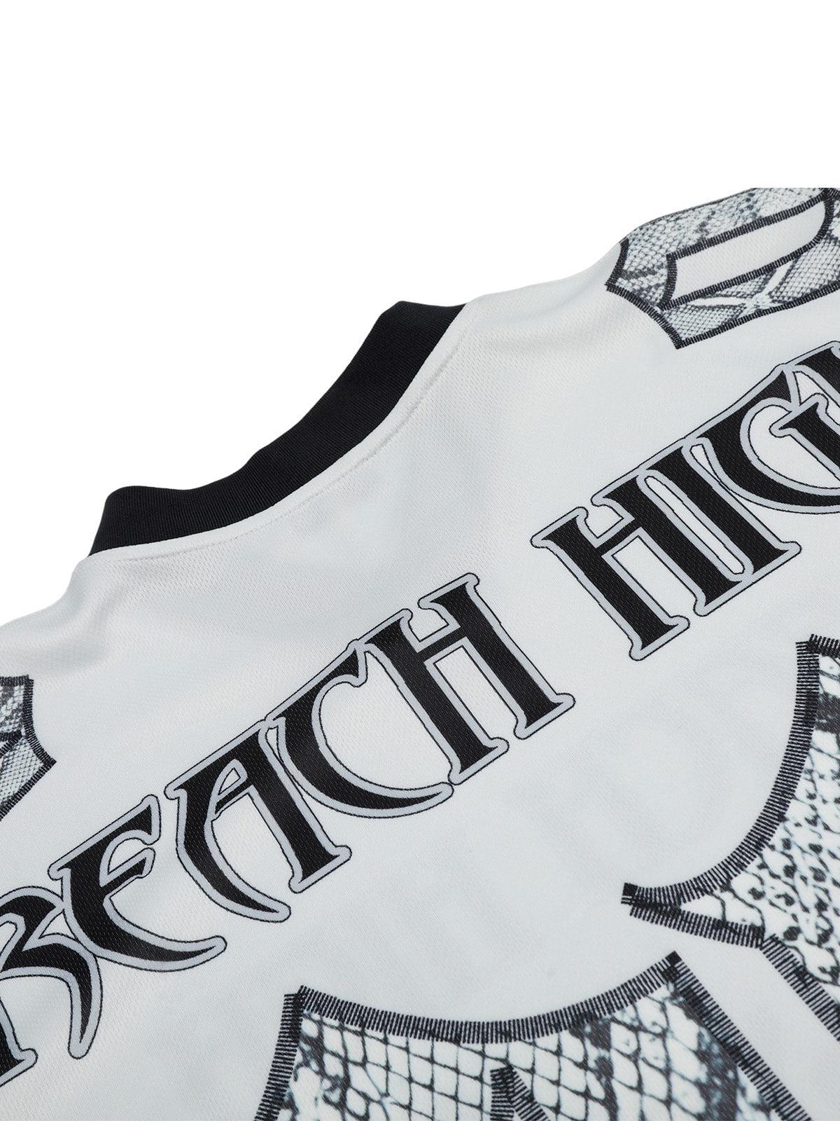 Defy the ordinary with this edgy tee, where bold typography meets striking snake-skin graphics, embodying the true essence of urban streetwear. The crisp white fabric serves as the perfect canvas for the daring ‘REACH HIGH’ slogan, while the intricate details add a layer of rebellious flair. Designed for those who embrace summer fashion with confidence, this piece is available in sizes S through XL, ensuring a comfortable fit for everyone. Pair it with your favorite denim or layer it under a sleek jacket for a versatile summer outfit that speaks volumes. Own your summer style with this captivating piece.