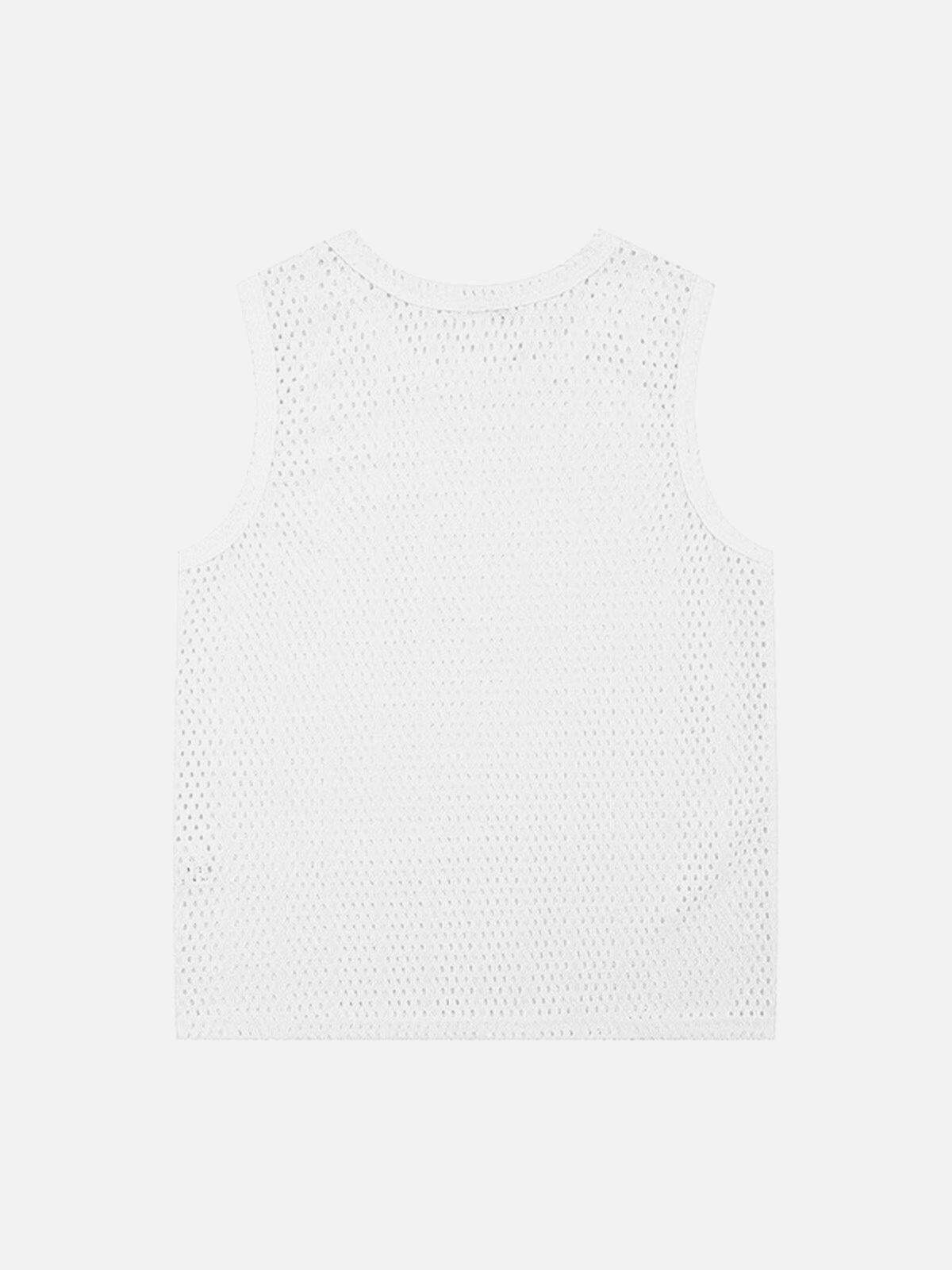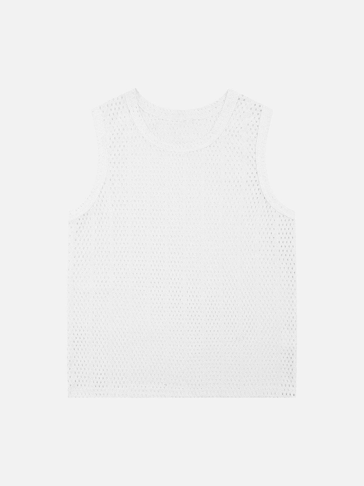 Redefine edgy elegance with this mesh tank that breathes life into any urban ensemble. This sleeveless wonder in black offers an effortlessly relaxed fit, perfect for layering over a crisp white tee or pairing with your favorite oversized jacket. The subtle texture and bold cutouts elevate your streetwear fashion game, making it a staple for those who dare to defy the ordinary. Available in sizes M, L, XL, and 2XL, this tank top adapts seamlessly to any silhouette, ensuring both comfort and style. Slide into your next adventure with confidence.