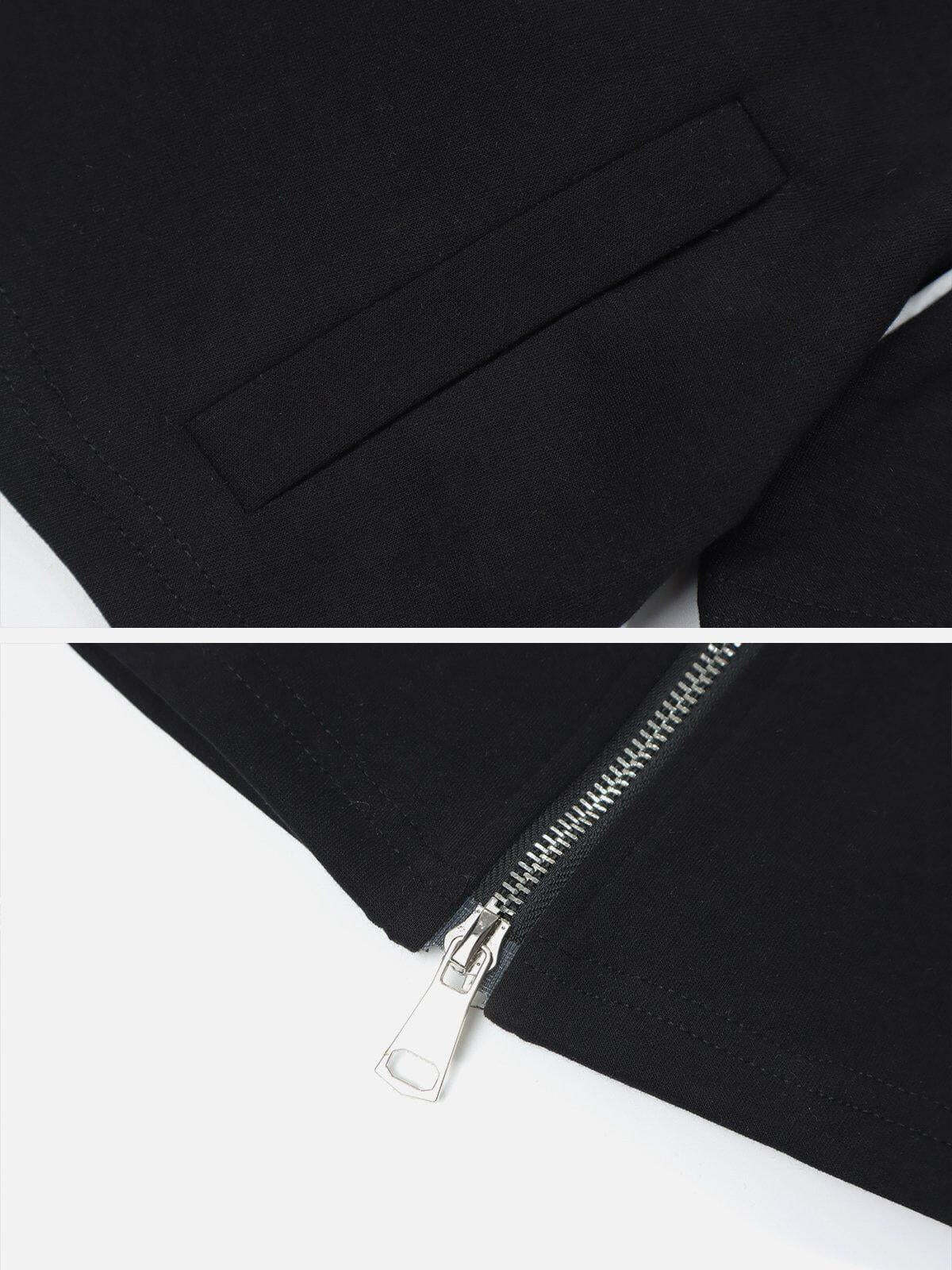 Break boundaries with this sleek black cropped zip-up that redefines summer style. The bold contrast of white detailing along the shoulders and sleek zipper gives an urban edge to your look, perfect for those who embrace their individuality. Available in sizes S, M, and L, this piece offers a relaxed yet fitted feel, making it a versatile choice for any summer outfit. Layer it over a tank or rock it solo with high-waisted jeans for a vibe that speaks volumes. Get ready to own your streetwear game.