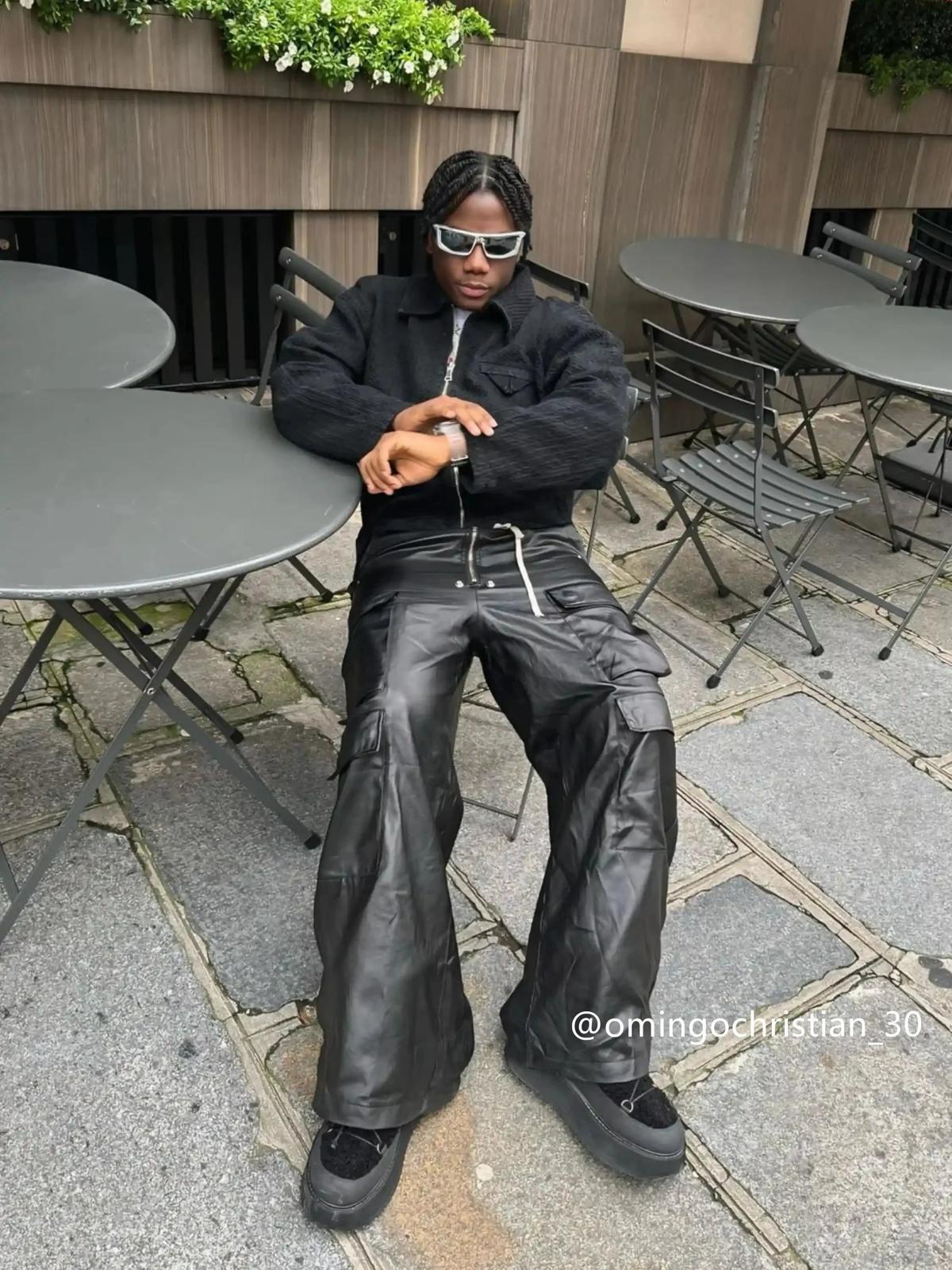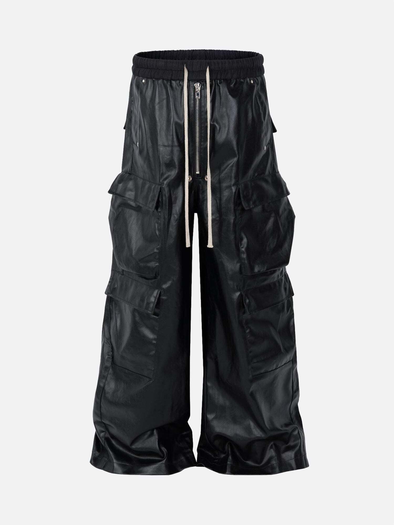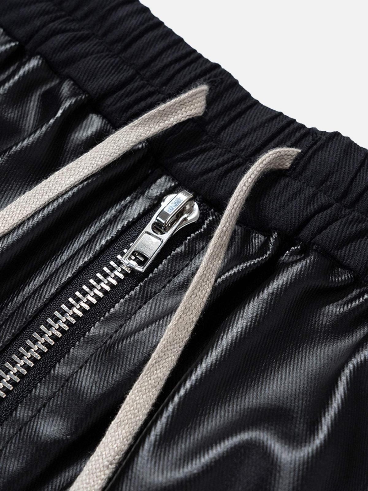 Dare to redefine the streets with these sleek black cargo pants that blend edgy style with ultimate comfort. The glossy finish and bold zipper detail add a touch of futuristic flair, while the roomy pockets are perfect for stashing your essentials. Designed for those who thrive on streetwear fashion, these pants offer a relaxed fit available in M, L, XL, and XXL, making them an ideal choice for any body type. Pair them with a cropped hoodie or an oversized graphic tee for a y2k-inspired outfit that turns heads. Elevate your wardrobe game and let these pants be your canvas for creativity.