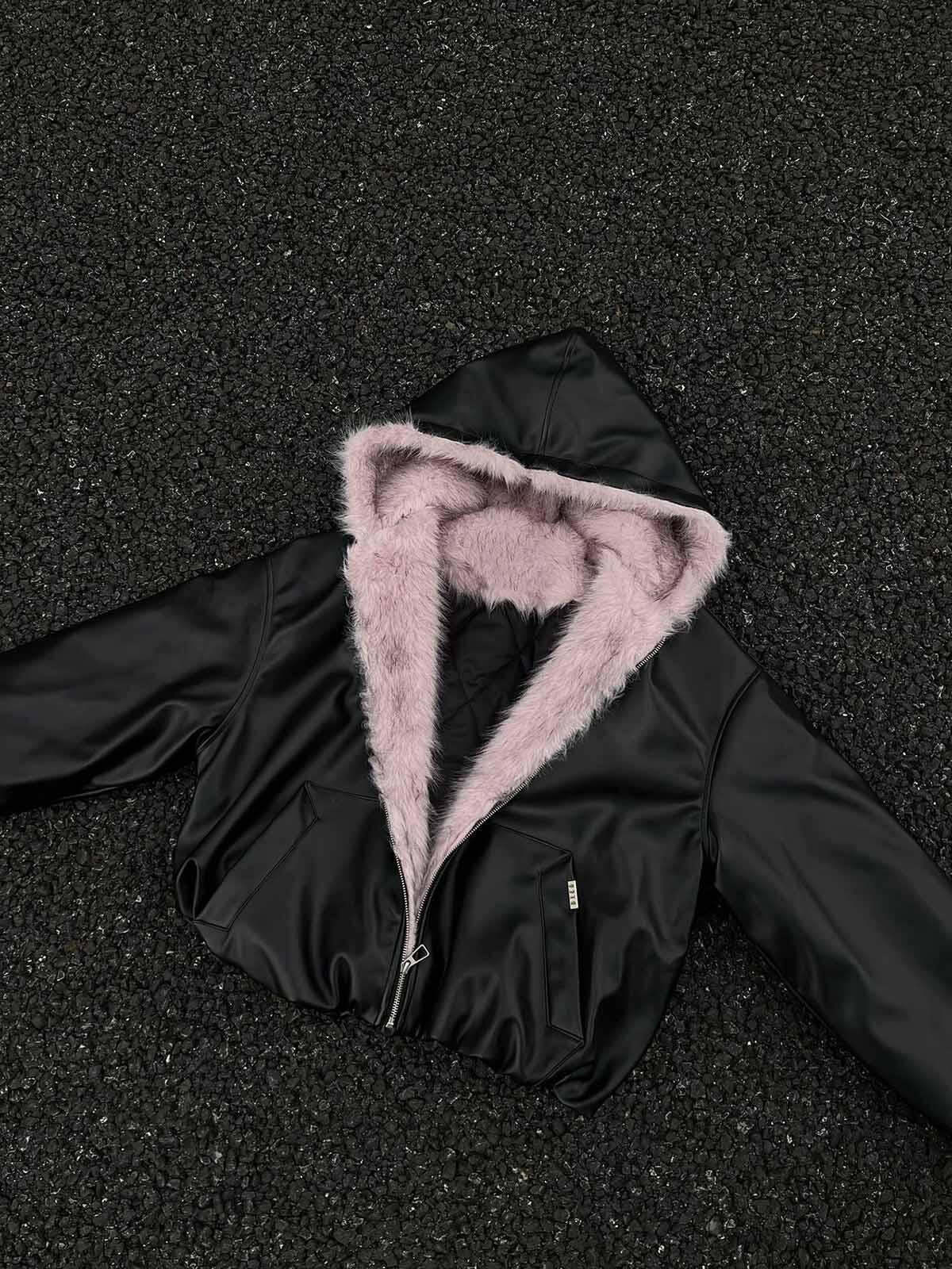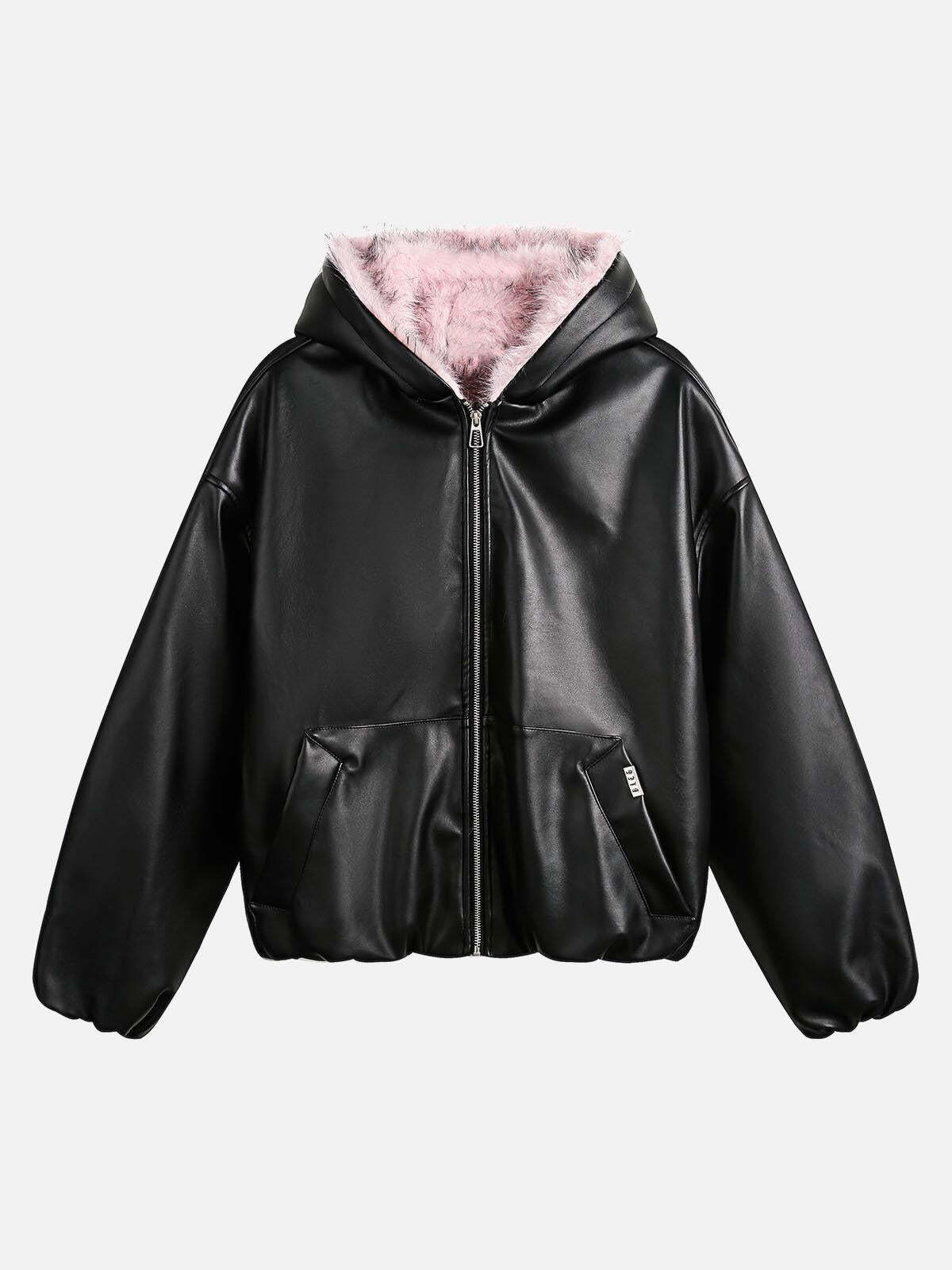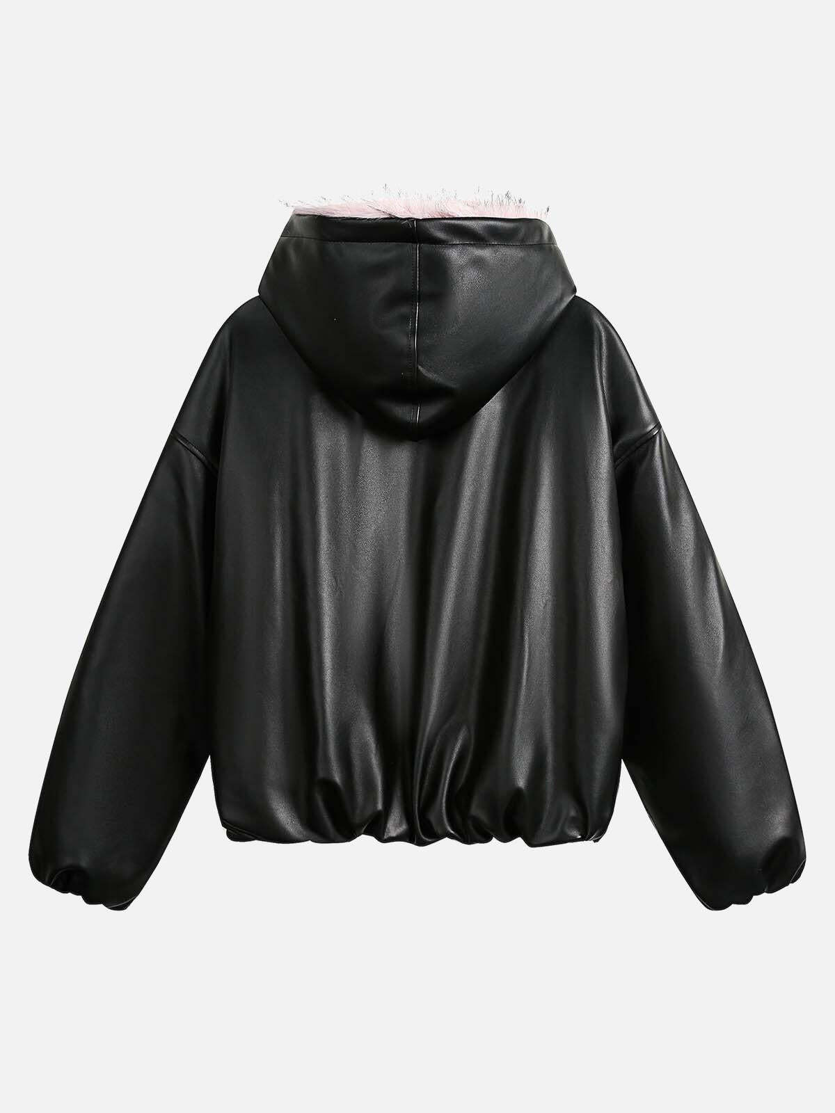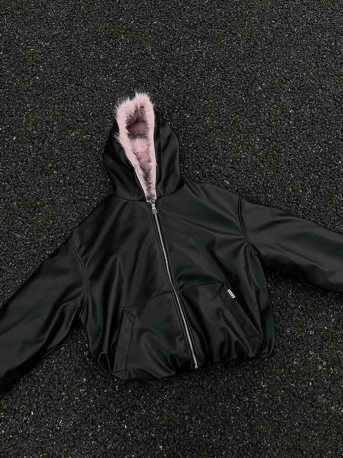 Dare to redefine streetwear fashion with this striking black jacket, where sleek faux leather meets plush pink lining for an unexpected twist of softness and edge. This bold piece combines an oversized fit that offers comfort in S, M, L, and XL sizes, making it the perfect choice for those who embrace both style and freedom. The contrast of textures elevates your outfit ideas, whether you’re pairing it with casual jeans or layering over y2k outfits for a modern, urban vibe. Zip up and let the hoodie transform your look with effortless flair.
