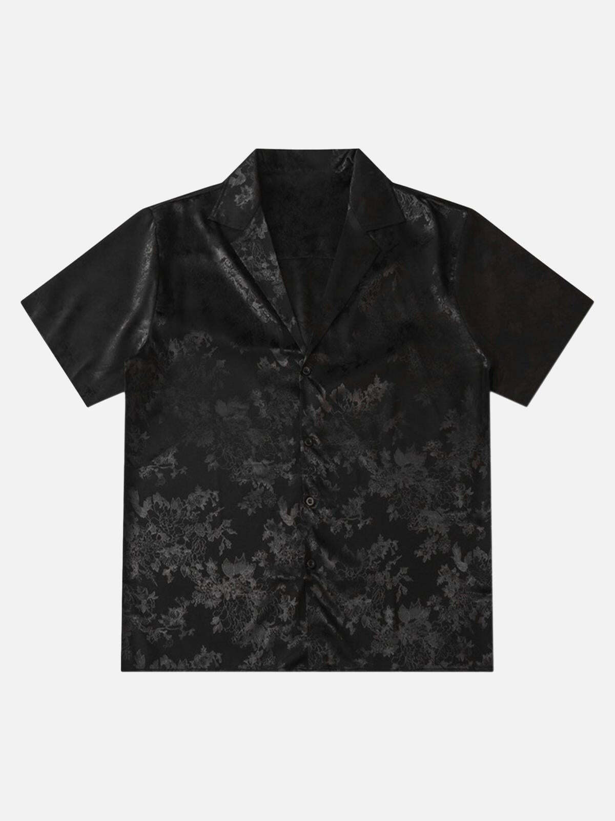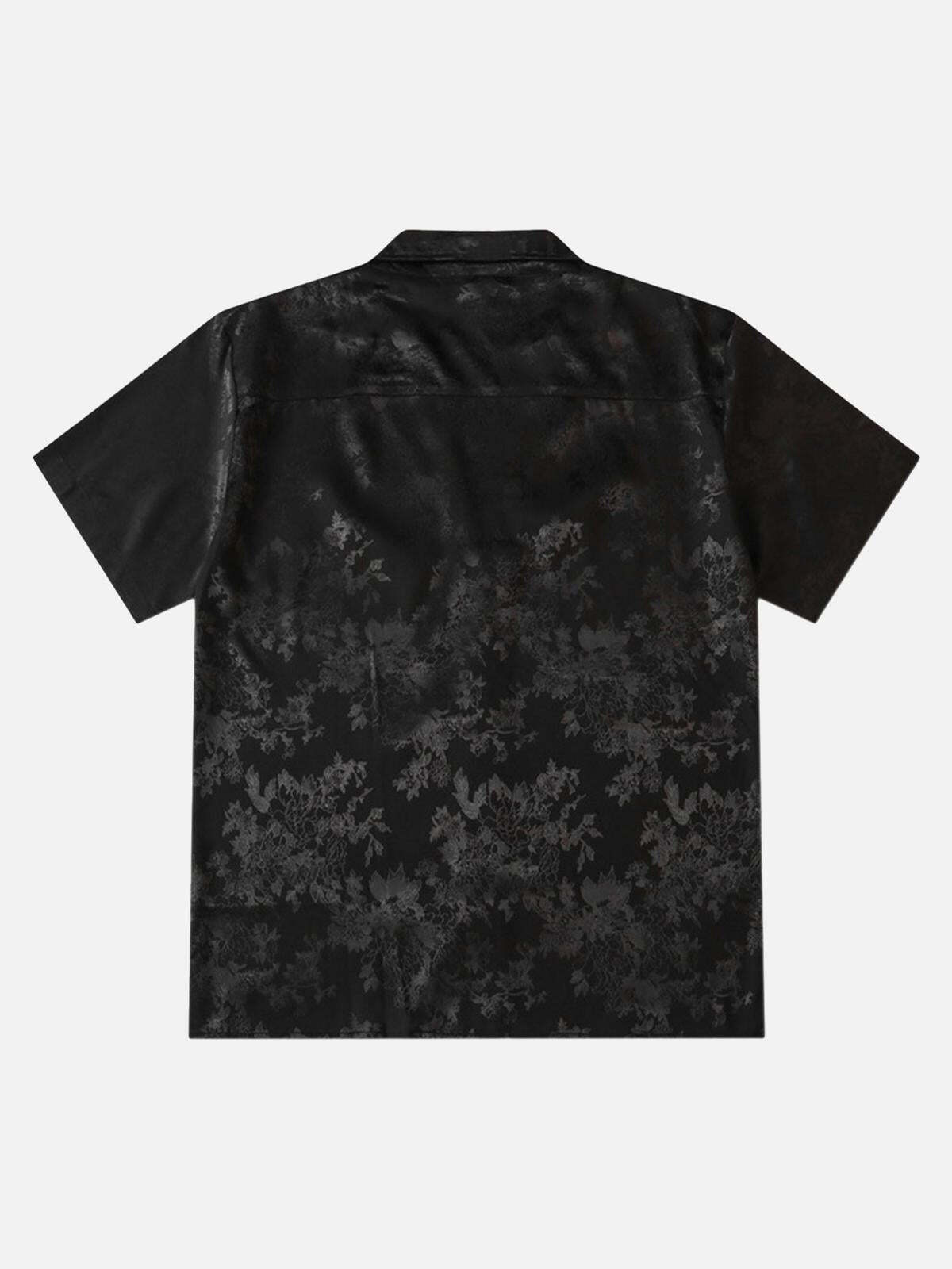 Break away from the ordinary with this sleek, black short-sleeve shirt that redefines streetwear fashion with its subtle, floral jacquard pattern. The luxurious texture catches the light, adding depth and intrigue to any outfit, perfect for those who appreciate both style and substance. Available in sizes from S to XL, its relaxed fit ensures comfort without compromising on edge, making it a versatile piece for every wardrobe. Pair it with distressed jeans for a rugged look or tailored trousers for a night out, and let your clothing speak volumes. Dive into the realm of y2k outfit inspo with this standout piece.
