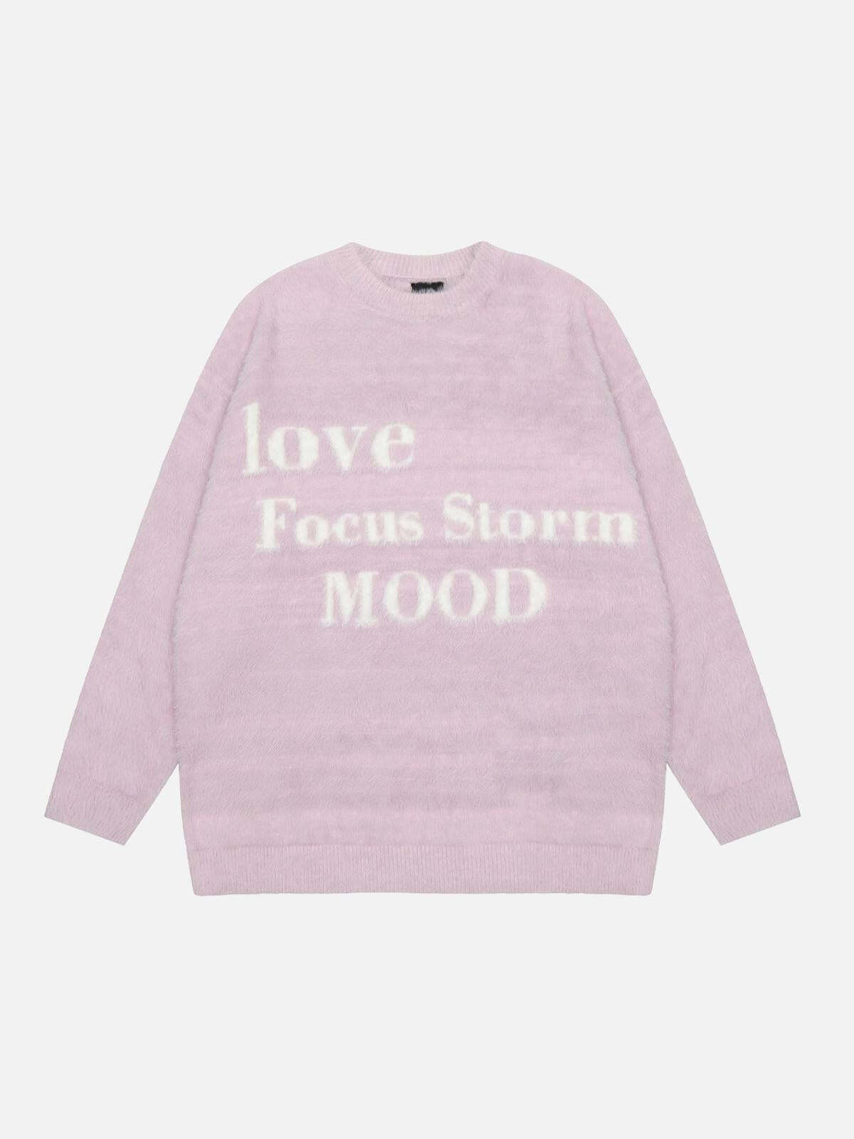 Channel your inner urban vibe with this plush, oversized sweater that screams boldness and individuality. Crafted in a deep black hue with striking white text, it exudes an unapologetic attitude that fits right into the heart of streetwear fashion. The cozy texture wraps you in warmth, making it perfect for layering over your favorite Y2K outfits. Available in edgy shades of pink, apricot, and purple, and sizes M, L, and XL, this piece offers versatility for any mood or occasion. Pair it with distressed jeans or joggers for outfit inspo that turns heads. Slide into this mood and redefine your streetwear game.