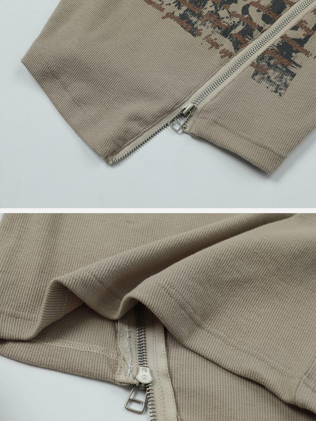 Embrace the raw edge of urban fashion with this distinctive gray tee, where bold graphics collide with asymmetrical zippers for a look that’s anything but ordinary. The ribbed texture adds depth, making it a perfect canvas for layering in your summer style lineup. Available in sizes S, M, and L, this piece offers a versatile fit that drapes effortlessly on any silhouette. Pair it with your favorite denim or cargo pants for an effortlessly cool summer outfit. Get ready to turn heads with every wear.