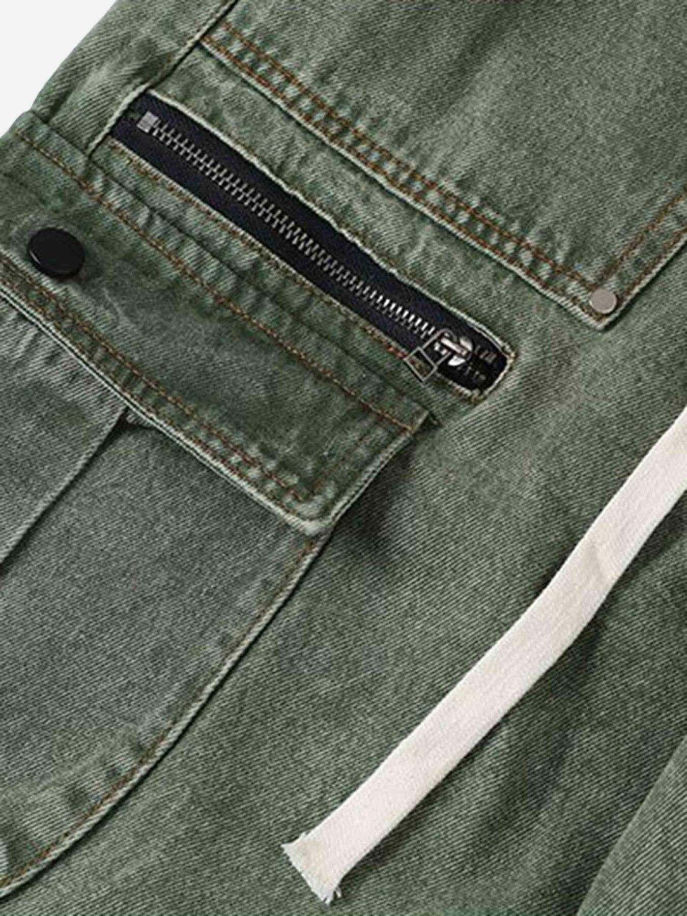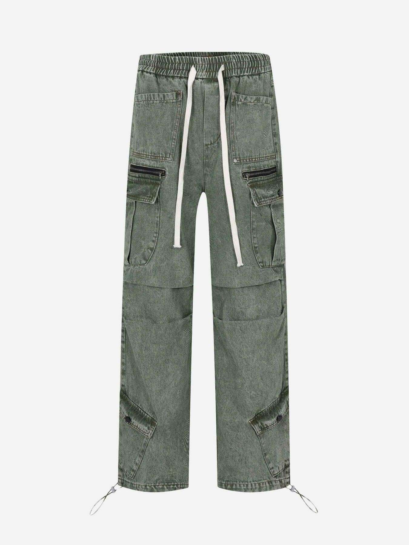 Revitalize your streetwear fashion with these edgy green cargo pants, where function meets fierce design. The rugged texture and bold zippered pockets embody an urban vibe, perfect for blending into cityscapes or standing out at skate parks. With sizes ranging from S to 2XL, the relaxed fit ensures all-day comfort while the adjustable drawstrings and cuffs let you tweak your style to match any mood. Whether paired with a graphic tee for some serious y2k outfit inspo or layered with a hoodie for chillier days, these pants are your go-to for redefining cool. Elevate your street game effortlessly with this essential piece in your wardrobe.