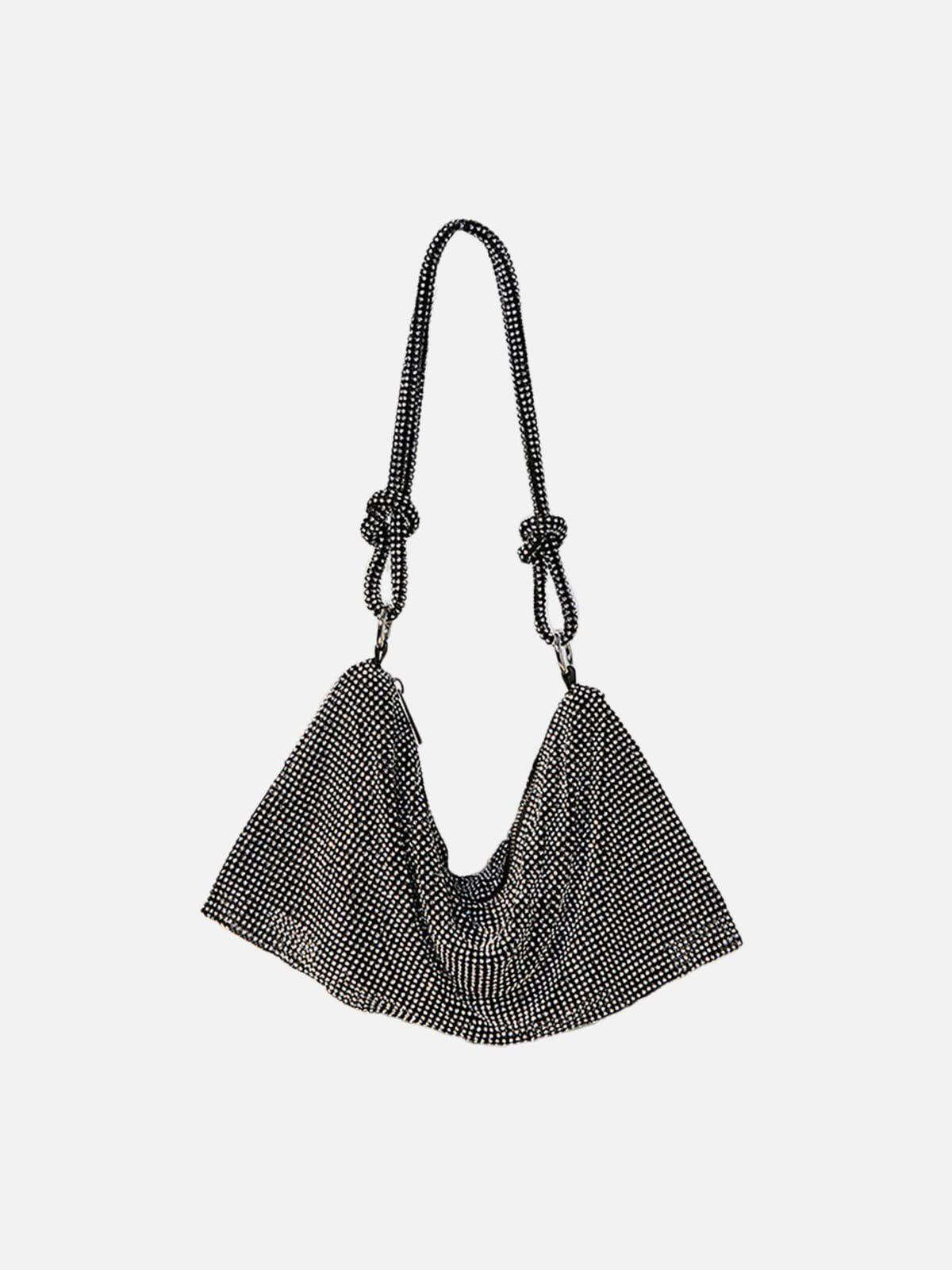 Embrace the rhythm of the city with a bag that embodies bold sophistication and urban flair. This stunning piece, with its shimmering black and silver texture, catches every ray of light, making it a must for the fearless trendsetter. The intricate knot details on the strap add a unique twist, making it not just an accessory, but a statement of individuality. Perfect for elevating your y2k outfits, this bag holds its shape with a slouchy, relaxed fit that’s effortlessly chic. Whether you’re hitting the streets or heading to the club, it’s available in one size that fits all your essentials. Own your style and step into the spotlight with confidence.