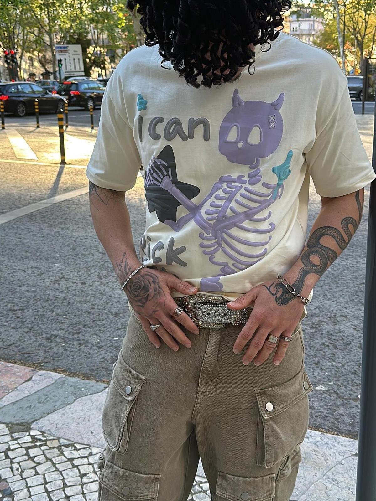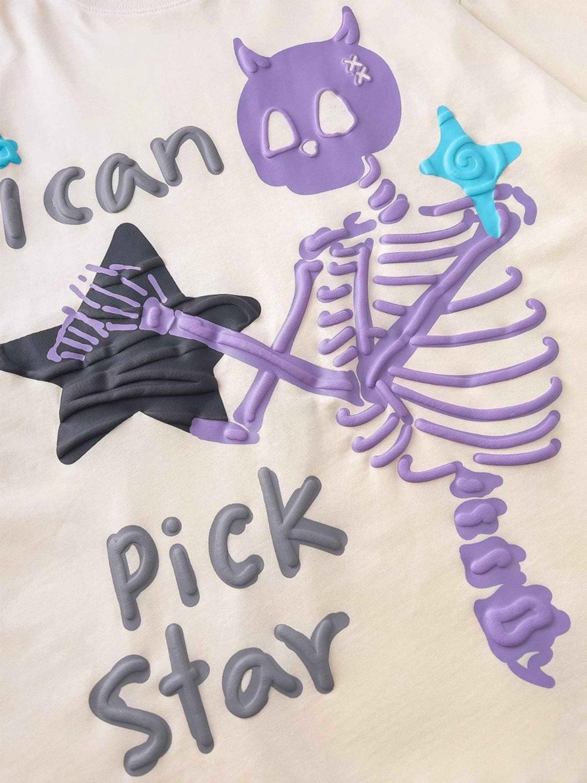 Concert Outfit Made Retro Skull Letter Foam T-shirt – Concert Outfit