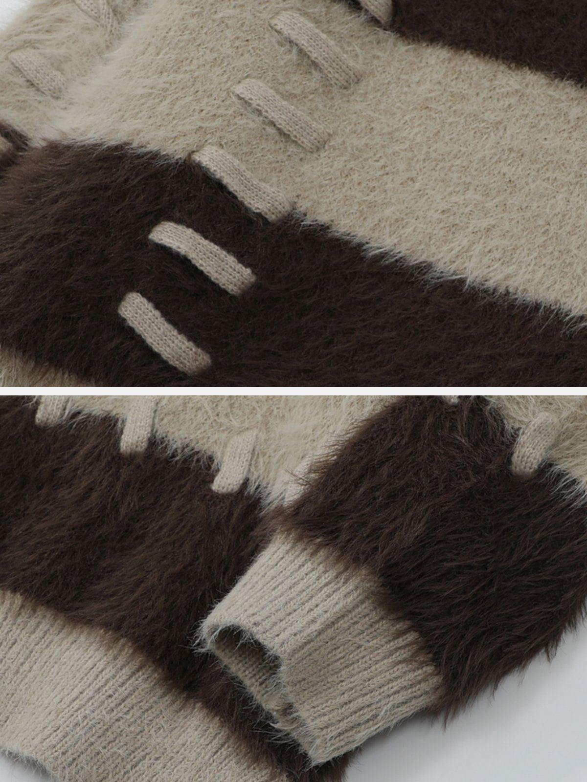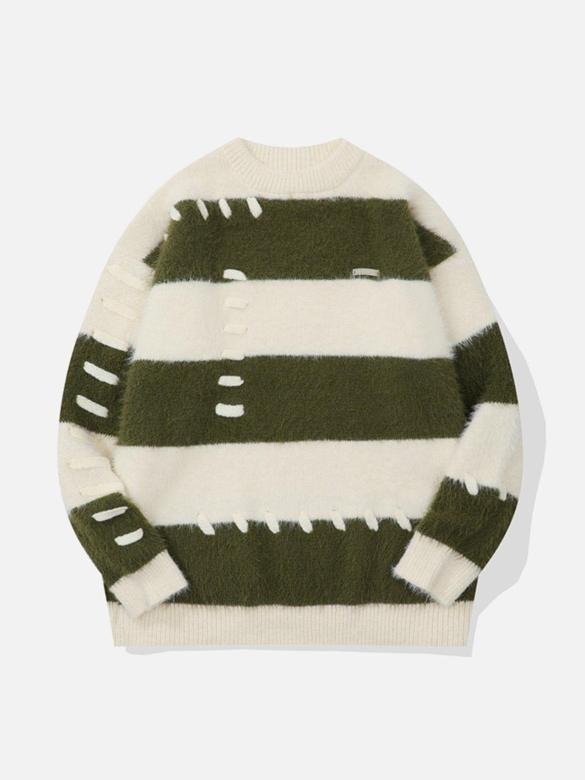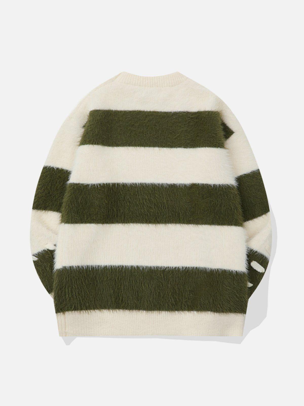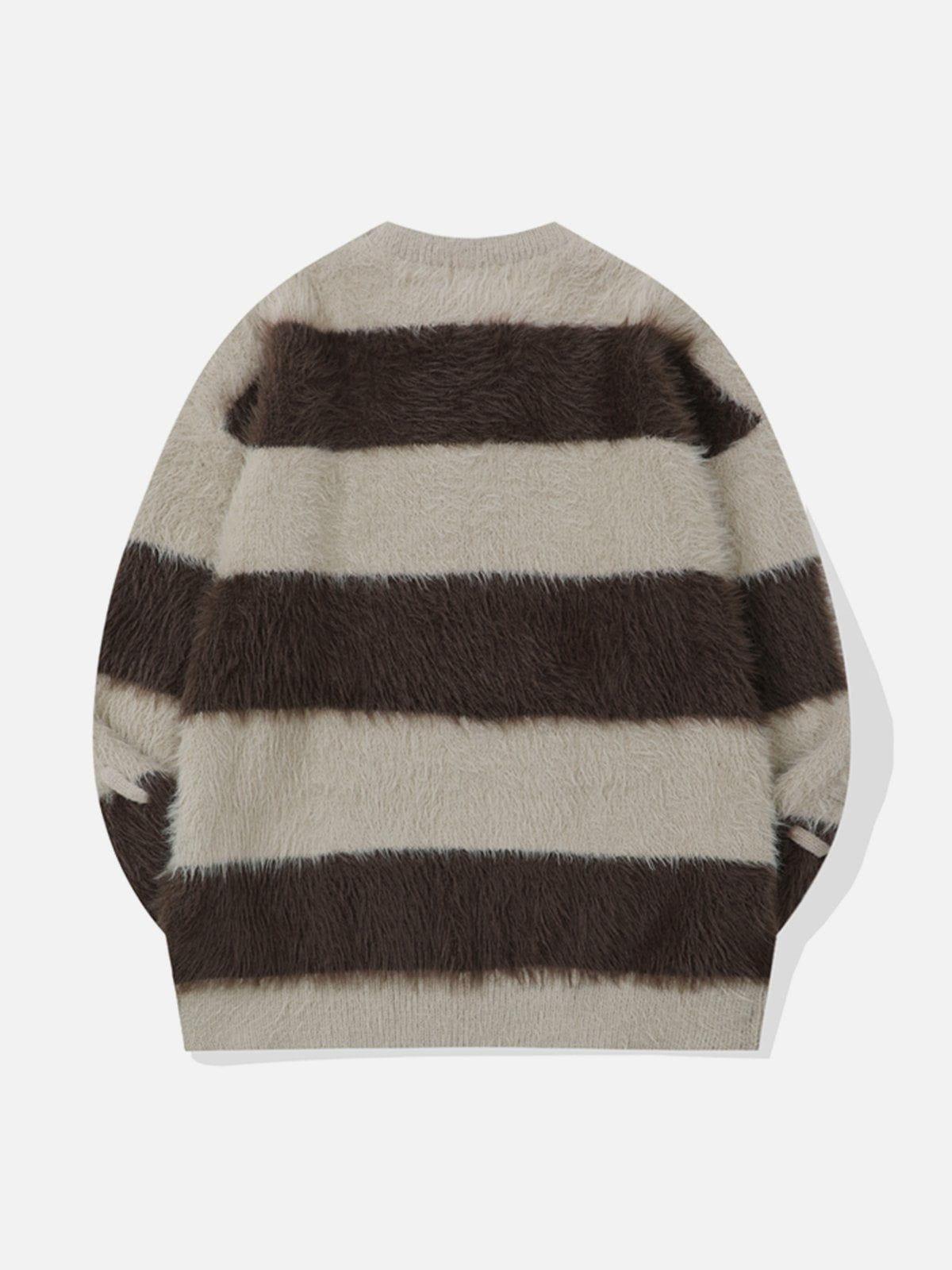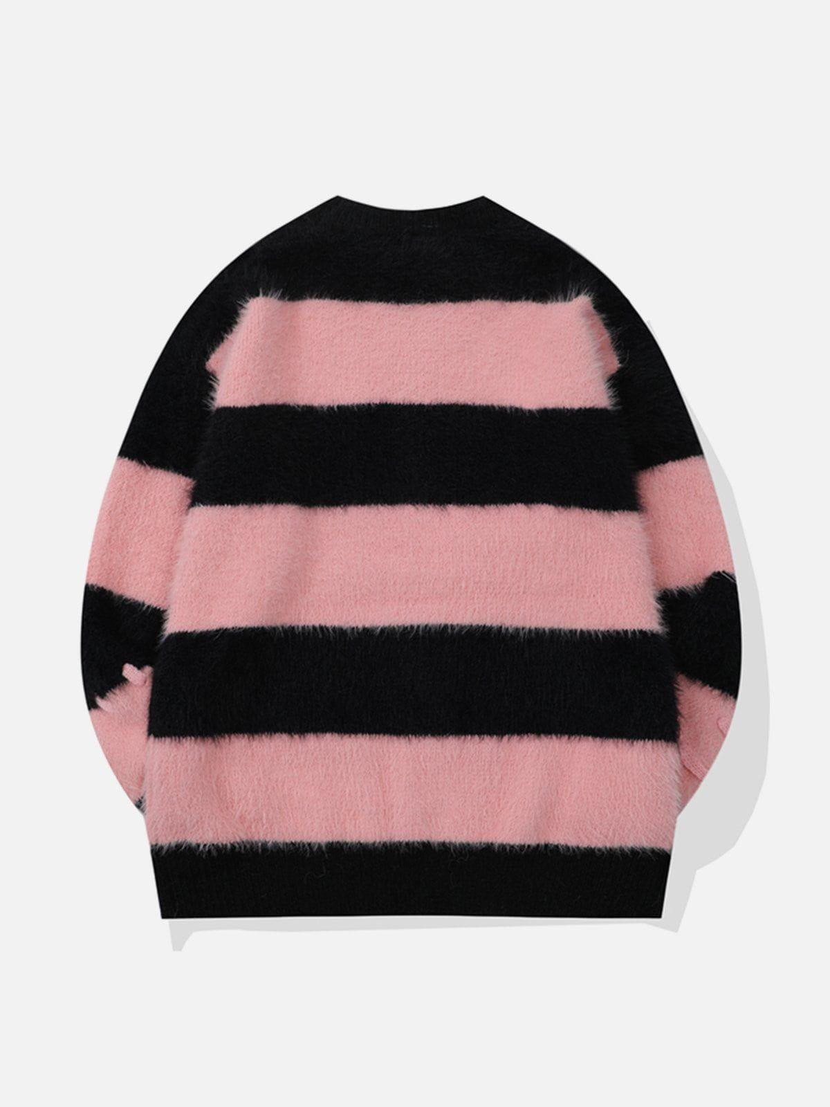 Redefine your streetwear fashion game with this bold, fuzzy striped sweater that’s all about juxtaposing edgy design with cozy vibes. The plush pink and black stripes create a striking contrast, while the playful cut-out details add an unexpected twist, making it perfect for those who dare to stand out. This piece offers a relaxed fit available in sizes S, M, and L, ensuring maximum comfort without compromising style. Pair it with your favorite jeans or layer it over a sleek skirt for outfit ideas that turn heads. Dive into a world of creative expression and grab yours today.