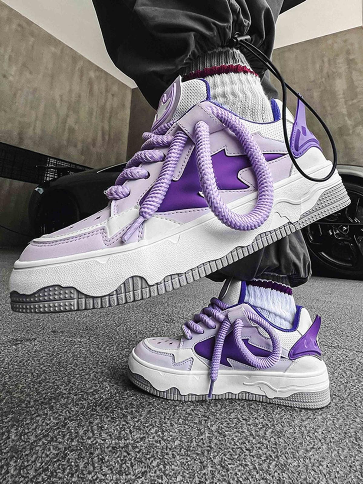 Embrace urban flair with the Niche Retro Couple Board Shoes, crafted from durable mesh and leather for lasting style. Featuring a lace-up closure and chunky sole, these shoes ensure comfort and support. Purple accents and reflective details add a bold touch and enhance visibility in low light. Ideal for casual wear and street style, they are perfect for spring and summer adventures.
