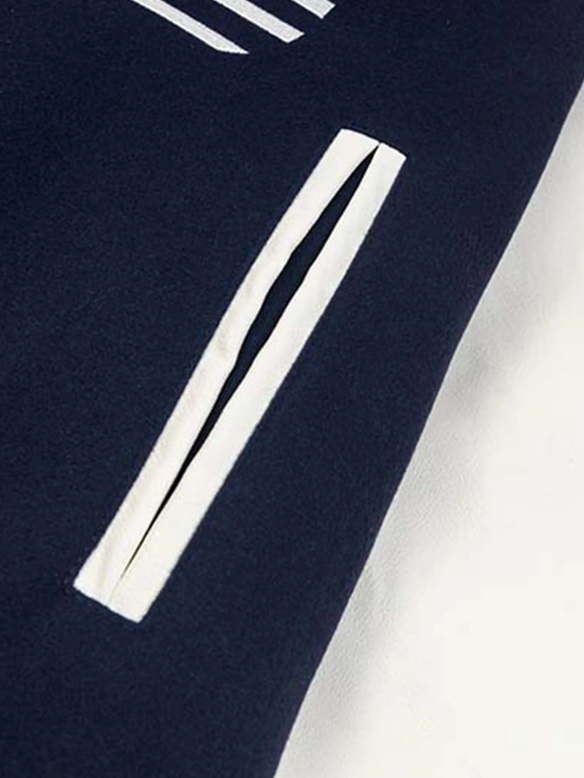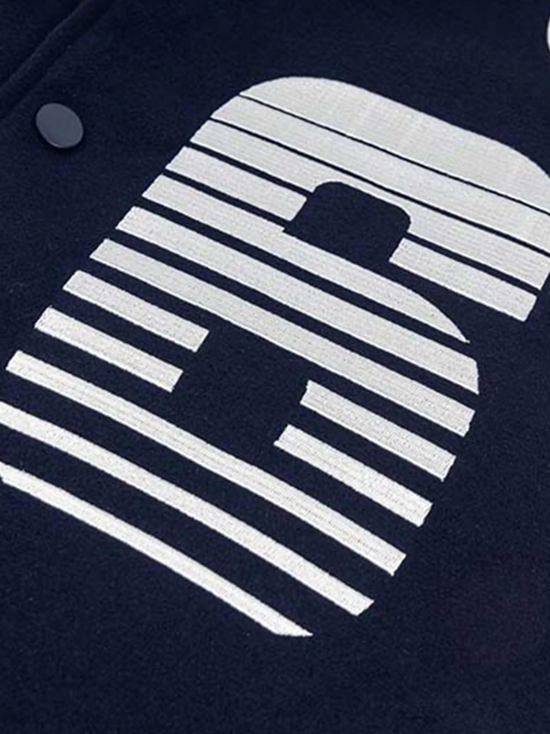 Redefine your streetwear fashion with this bold varsity jacket, where the deep black body contrasts sharply against vibrant red and white striped accents. The striking patches and graphic details scream retro athletic vibes, perfect for those looking to infuse some y2k outfits into their wardrobe. Designed for a relaxed fit, this jacket is available in sizes M, L, and XL, offering you comfort without compromising style. The red and white ribbed cuffs and hem add a pop of color, while the snap-button closure ensures a secure fit. Wear it over your favorite tee for an effortlessly cool look that takes your urban style to the next level.