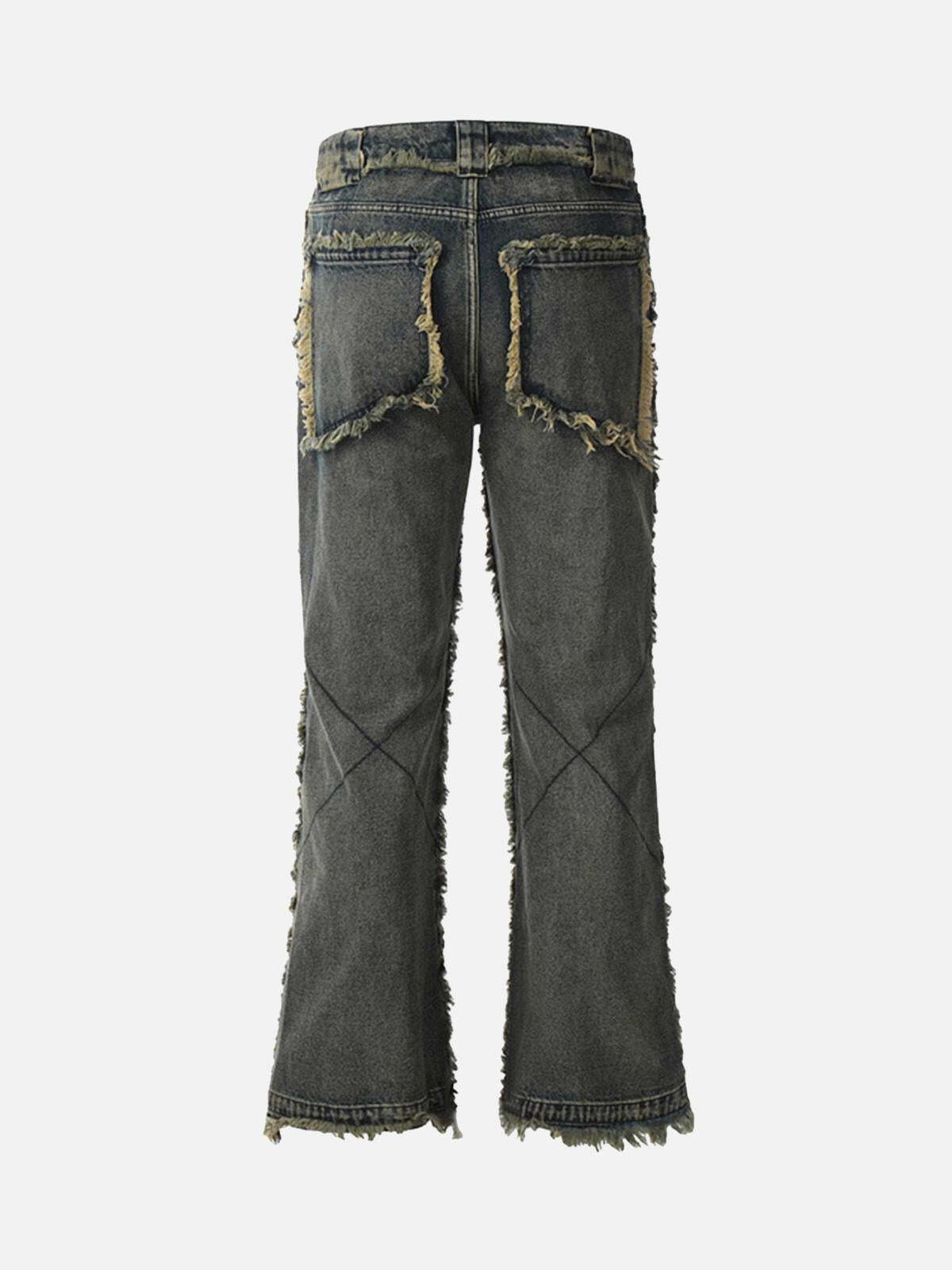 Break the mold with these edgy, deconstructed jeans, featuring raw, frayed seams that ooze rebellious streetwear fashion vibes. The deep black hue is versatile, pairing effortlessly with any top, while the irregular patchwork design adds a bold twist to your wardrobe. Made for those who dare to be different, these jeans are cut for comfort and style, available in sizes ranging from S to 2XL, ensuring the perfect fit for every urban explorer. Slip into these and let the world become your runway, challenging the ordinary with every step.