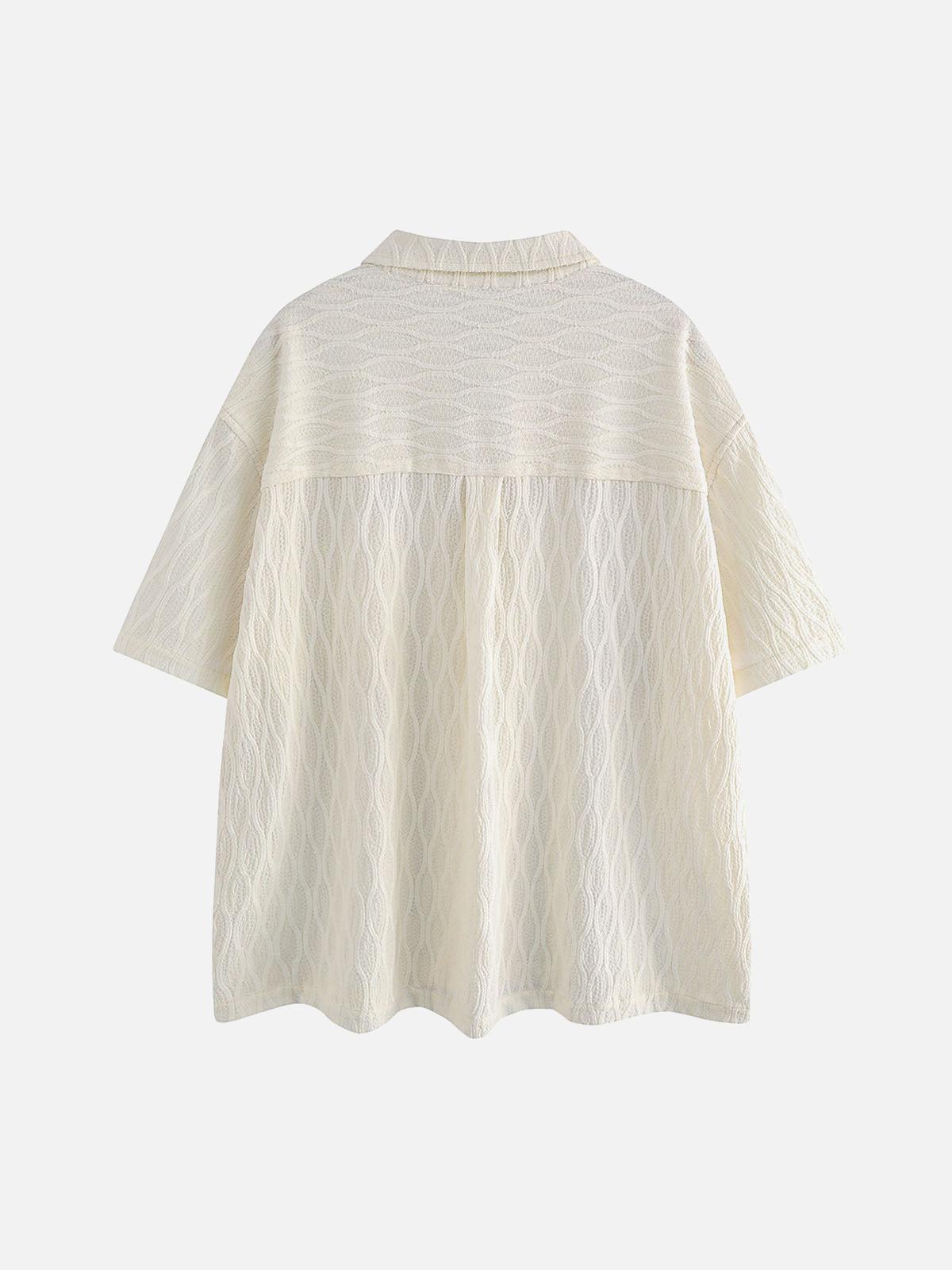 Channel your inner urban explorer with this textured masterpiece, where the intricate weave meets a laid-back vibe, perfect for y2k outfits. The muted apricot hue gracefully complements the bold graphic print, offering a dynamic look that effortlessly transitions from city streets to sandy shores. Available in sizes ranging from S to XL, its relaxed fit ensures comfort without sacrificing style, making it a versatile staple in any streetwear fashion collection. Elevate your wardrobe and let your outfit ideas flow with this essential piece.