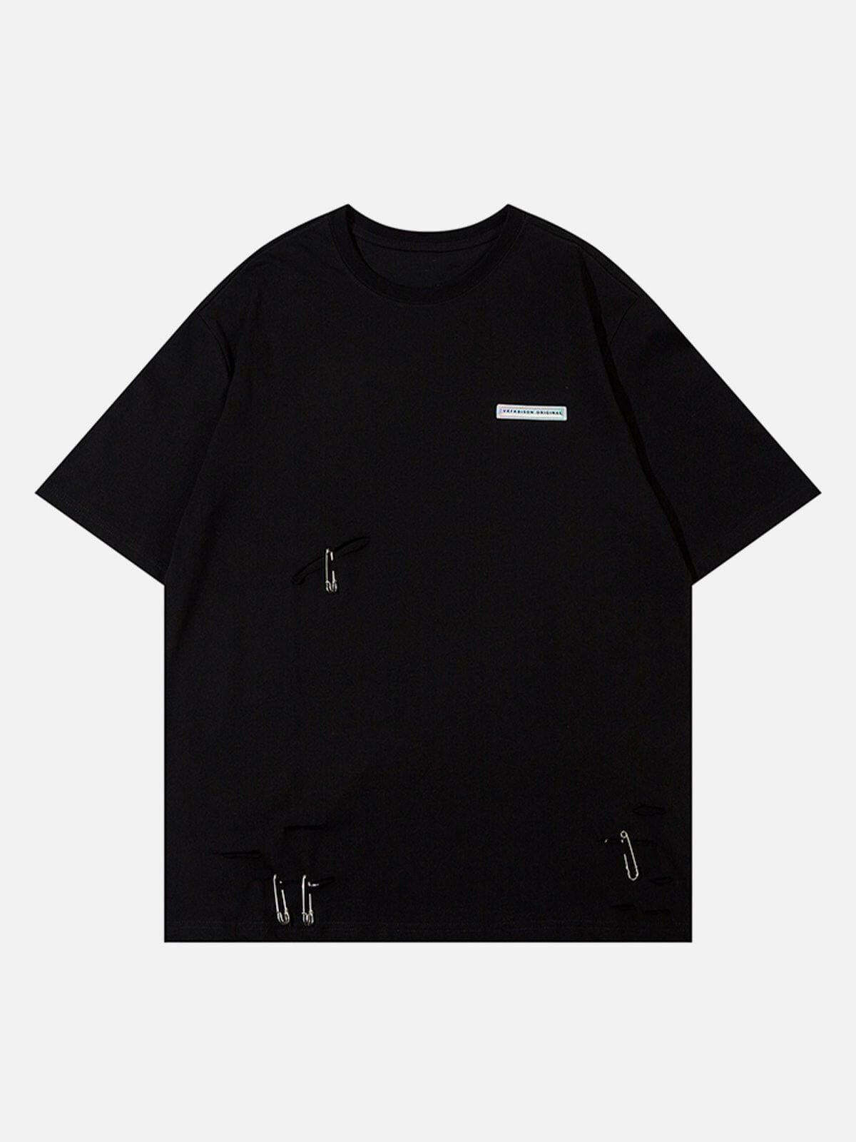 Break the mold with a tee that redefines summer fashion inspo, combining sleek minimalism with edgy details. The smooth black canvas is punctuated with bold, metallic zippers, adding an urban edge to your look, while the relaxed fit ensures all-day comfort. Available in versatile sizes from S to XL, this tee effortlessly adapts to any silhouette. Whether you’re pairing it with distressed denim or layering it under a sharp jacket, this piece is your go-to for commanding the streets in style. Explore your boldest summer style today.
