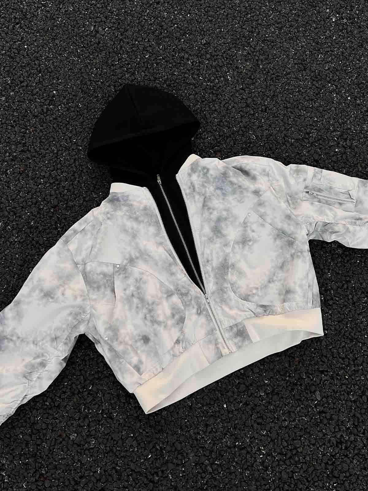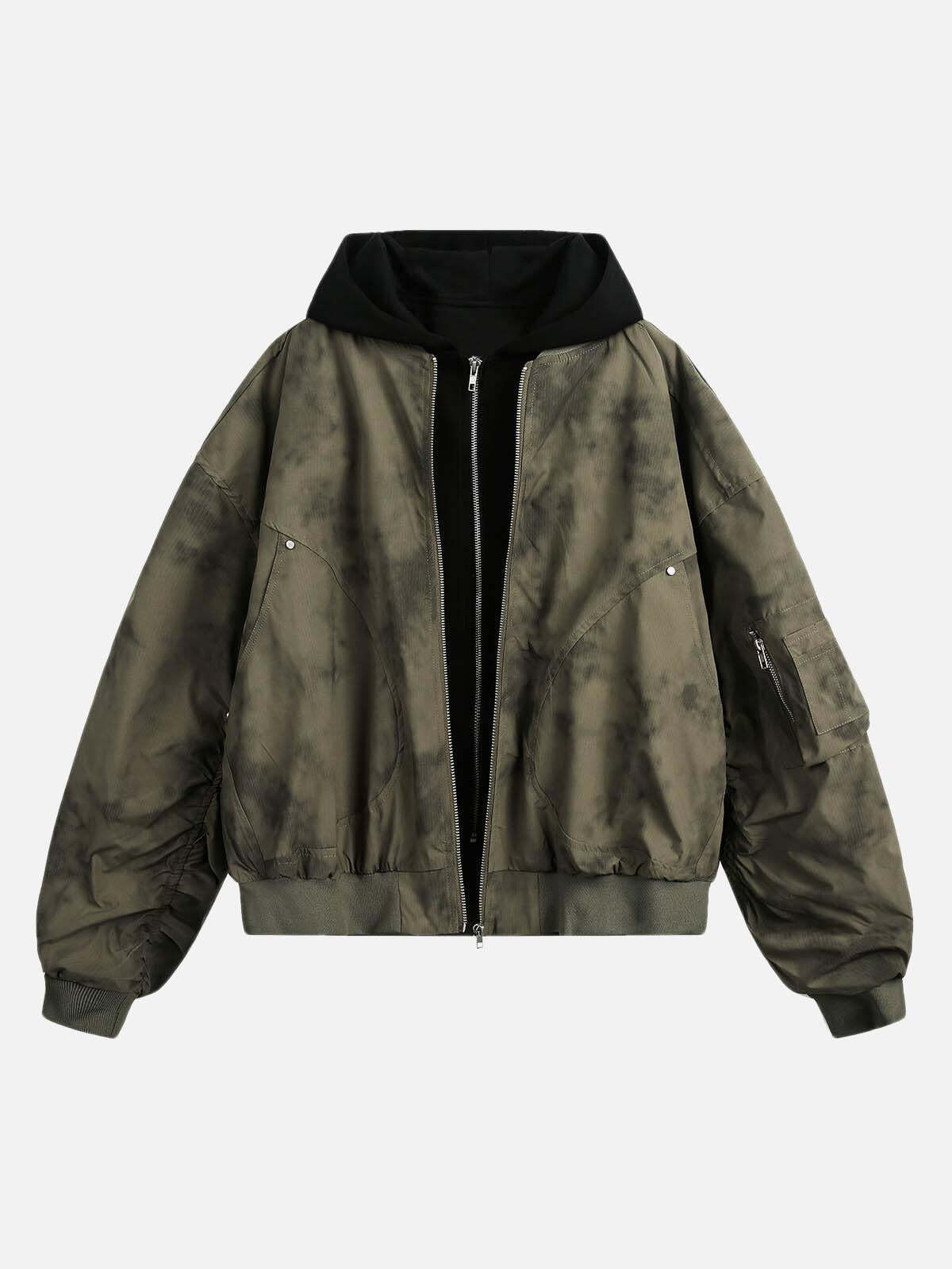 Concert Outfit Patchwork Faux Two-piece Gradient Hooded Bomber Jacket – Concert Outfit