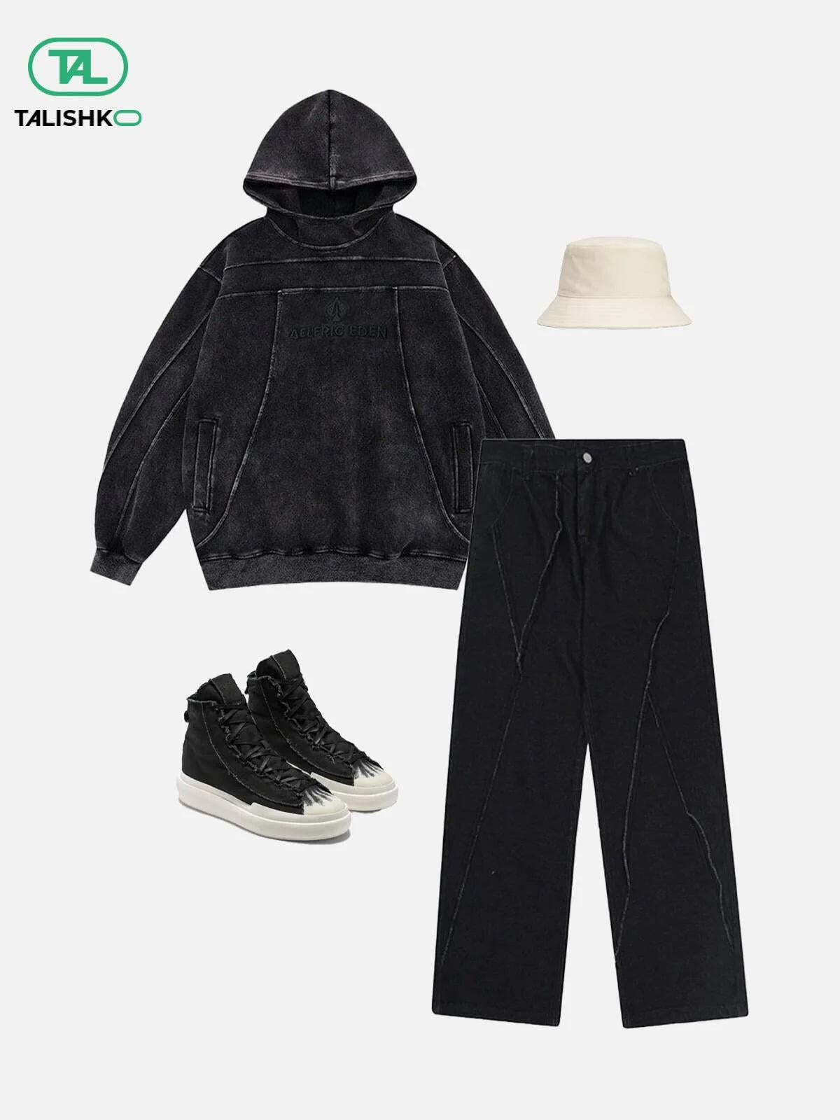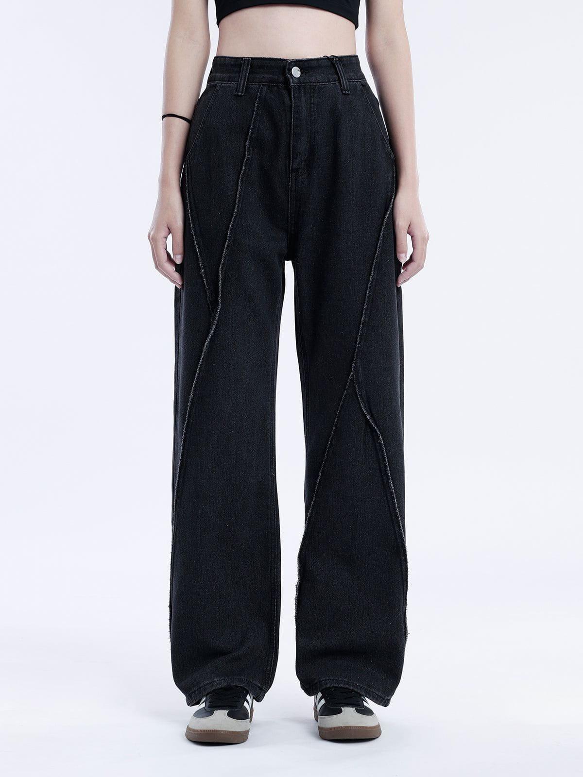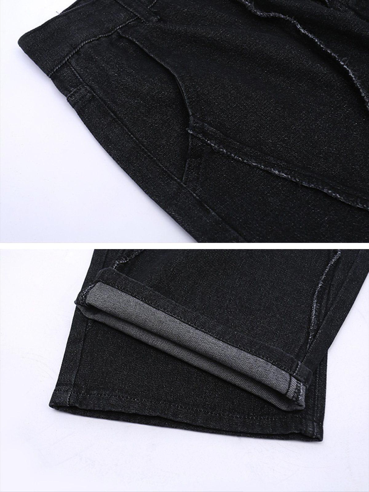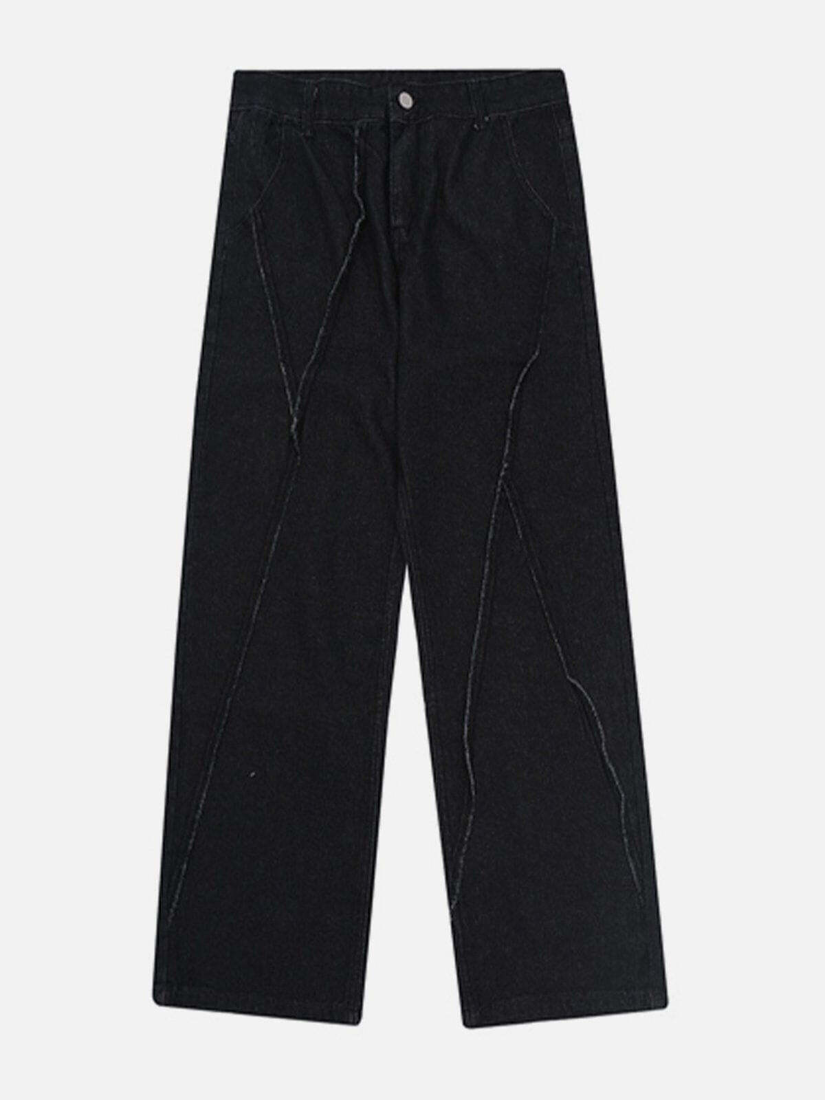 Break free from the ordinary with these edgy, oversized pants that redefine streetwear fashion. The rugged black denim, accentuated by bold, angular stitching, creates a striking visual texture that demands attention. Designed in a versatile one-size fit, these pants offer effortless comfort while maintaining a sleek silhouette. Pair them with your favorite kicks and a loose tee for an outfit inspo that channels urban cool with a touch of y2k flair. Let your style speak volumes and take on the streets with unparalleled confidence.