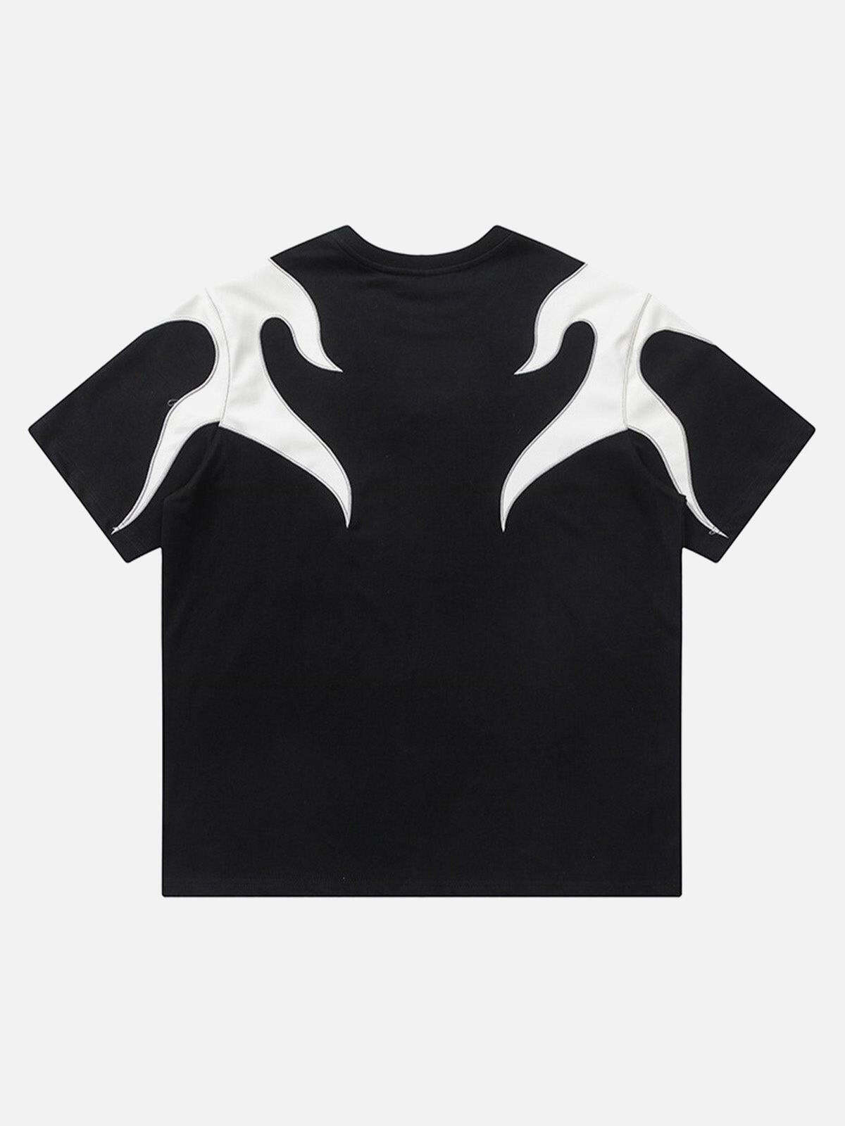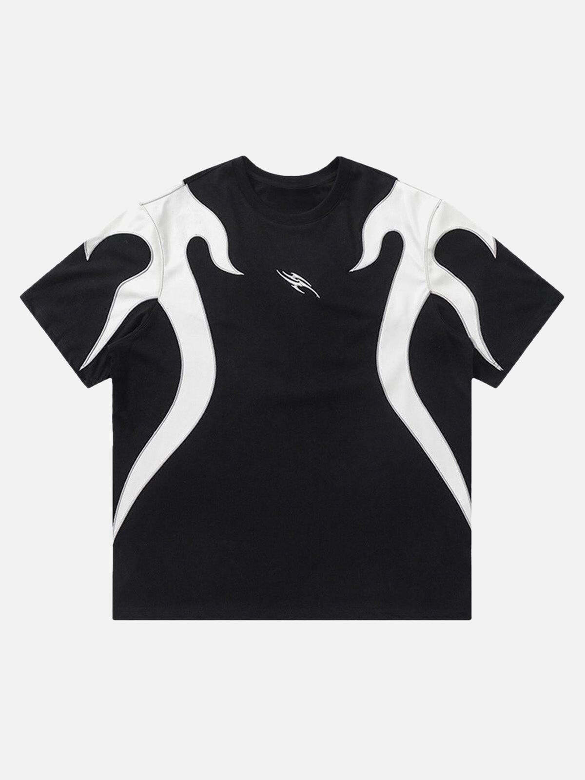 Ignite your summer style with this dynamic black tee featuring striking white flame-like graphics that surge up the shoulders, creating an unparalleled visual impact. Crafted for those who dare to be bold, this tee offers a relaxed fit that’s perfect for any summer outing, available in sizes from S to XL to ensure your perfect fit. The soft, breathable fabric keeps you cool while the edgy design speaks volumes, making it the ultimate summer fashion inspo. Pair it with your favorite jeans or shorts for a look that’s effortlessly cool and fiercely individual. Elevate your wardrobe and let your style roar.