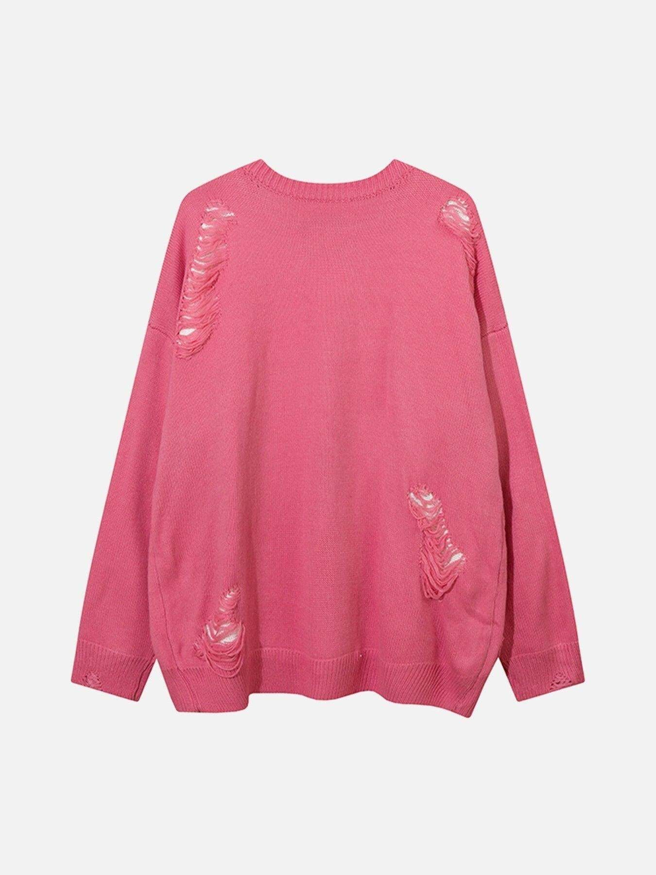 Push the boundaries of streetwear fashion with this eye-catching sweater, featuring a bold star design that commands the spotlight. The vibrant pink hue, interspersed with edgy distressed details, gives it a rebellious edge, perfect for those who dare to be different. Crafted for a relaxed fit in sizes M through 2XL, this piece offers both comfort and versatility, effortlessly integrating into y2k outfits or any urban ensemble. Pair it with your favorite ripped jeans for an outfit that speaks volumes without saying a word. Elevate your wardrobe with a touch of bold flair.