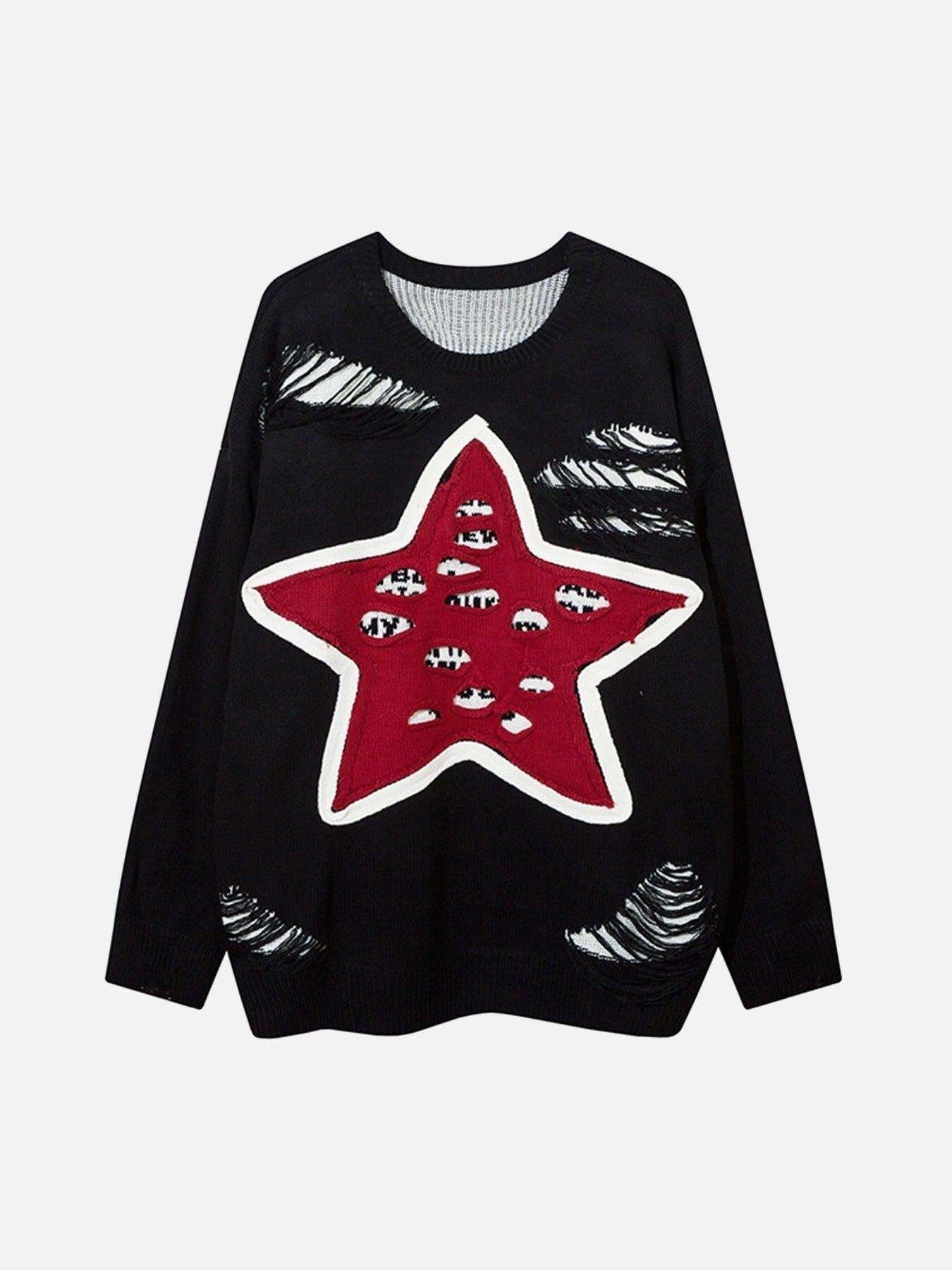 Concert Outfit Pentagram Torn Loose Sweater High-quality product featuring concert outfit ideas, country concert outfit, outfit inspo and more. Modern design that fits the latest trends. Premium materials ensure durability and comfort. Order now for special offers! Product designed with attention to every detail. Suitable for all occasions and personal styles.