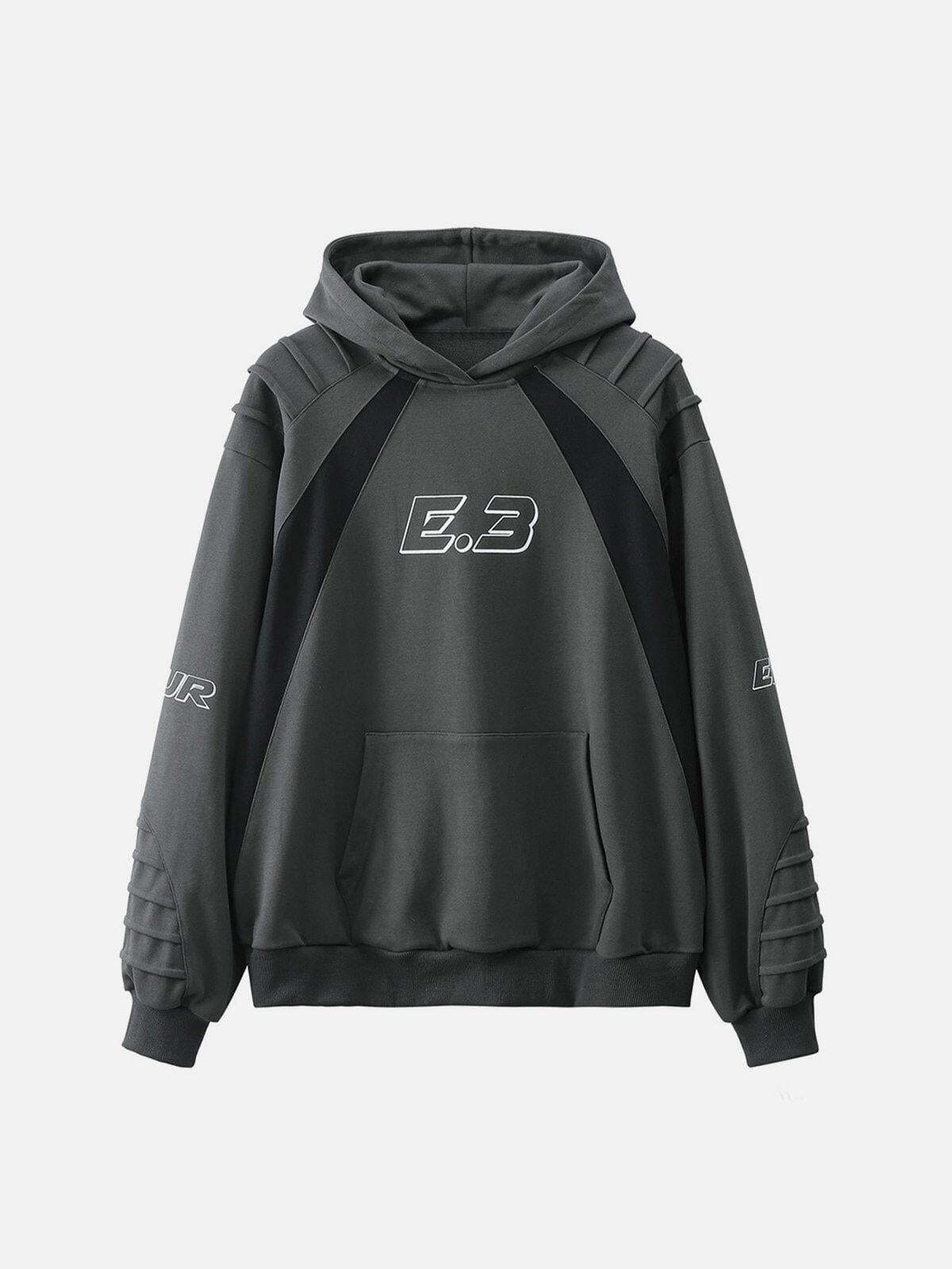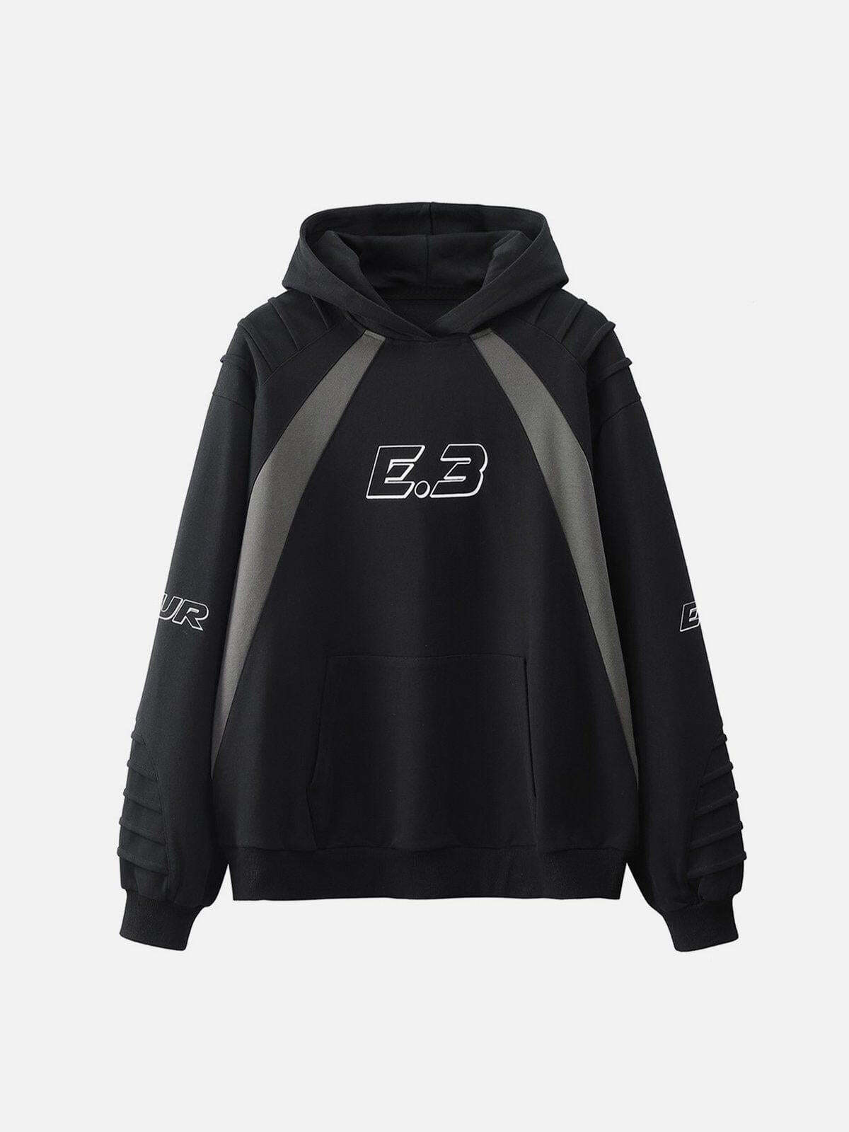 Embrace the future with this sleek hoodie, where urban edge meets comfort in a bold black and gray palette. The striking E.3 graphic on the front captures attention, while the textured paneling on the sleeves adds a unique twist to your streetwear fashion game. Available in sizes from S to XL, this piece offers a relaxed fit that’s perfect for layering over your favorite Y2K outfits or pairing with modern streetwear essentials. Whether you’re exploring new outfit ideas or honing your everyday look, this hoodie is your go-to for effortless style. Slip into it and redefine what it means to be bold.