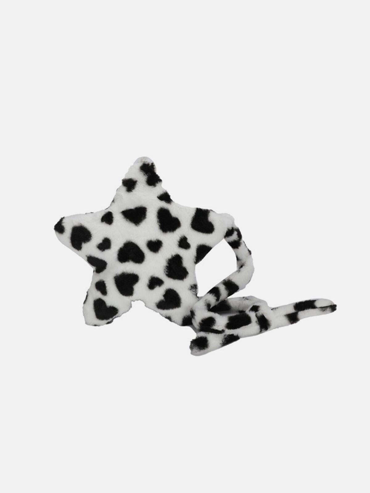 Bring a playful twist to your streetwear fashion with this star-shaped accessory, blending bold black and white patterns for a standout look. The plush texture offers a touch of whimsy, making it perfect for any outfit that demands attention. Available in a versatile one size, it effortlessly complements both edgy black and soft pink ensembles. Whether you’re curating y2k outfits or just adding a bit of fun to your day, this piece is an essential part of your outfit ideas. Grab yours now and let your style shine.