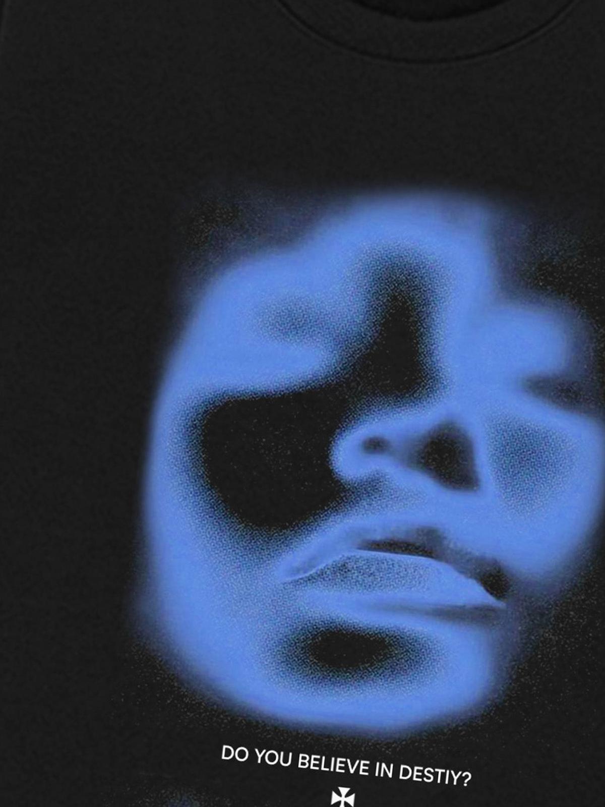 Channeling the enigmatic vibes of urban nights, this sweatshirt features a striking blue visage, daring you with the question, ‘Do you believe in destiny?’ Set against a rich black backdrop, the vivid design pulses with mystery and modernity. Crafted for those who embrace bold statements, it offers a relaxed fit available in M, L, and XL, perfect for layering or standing alone. Pair it with your favorite y2k outfits for an effortlessly edgy look. Ready to redefine your streetwear fashion?
