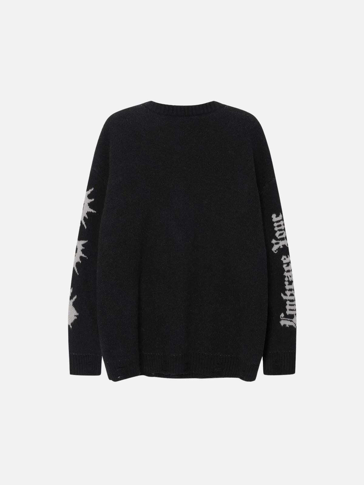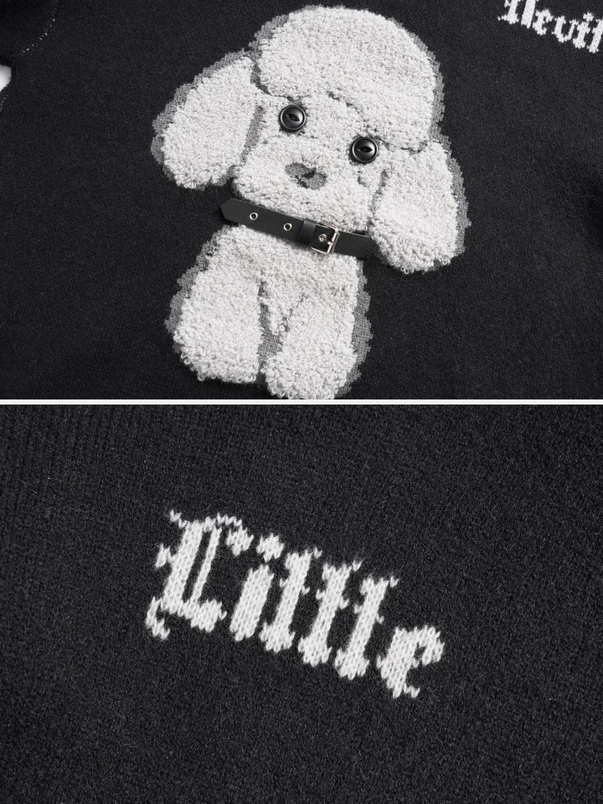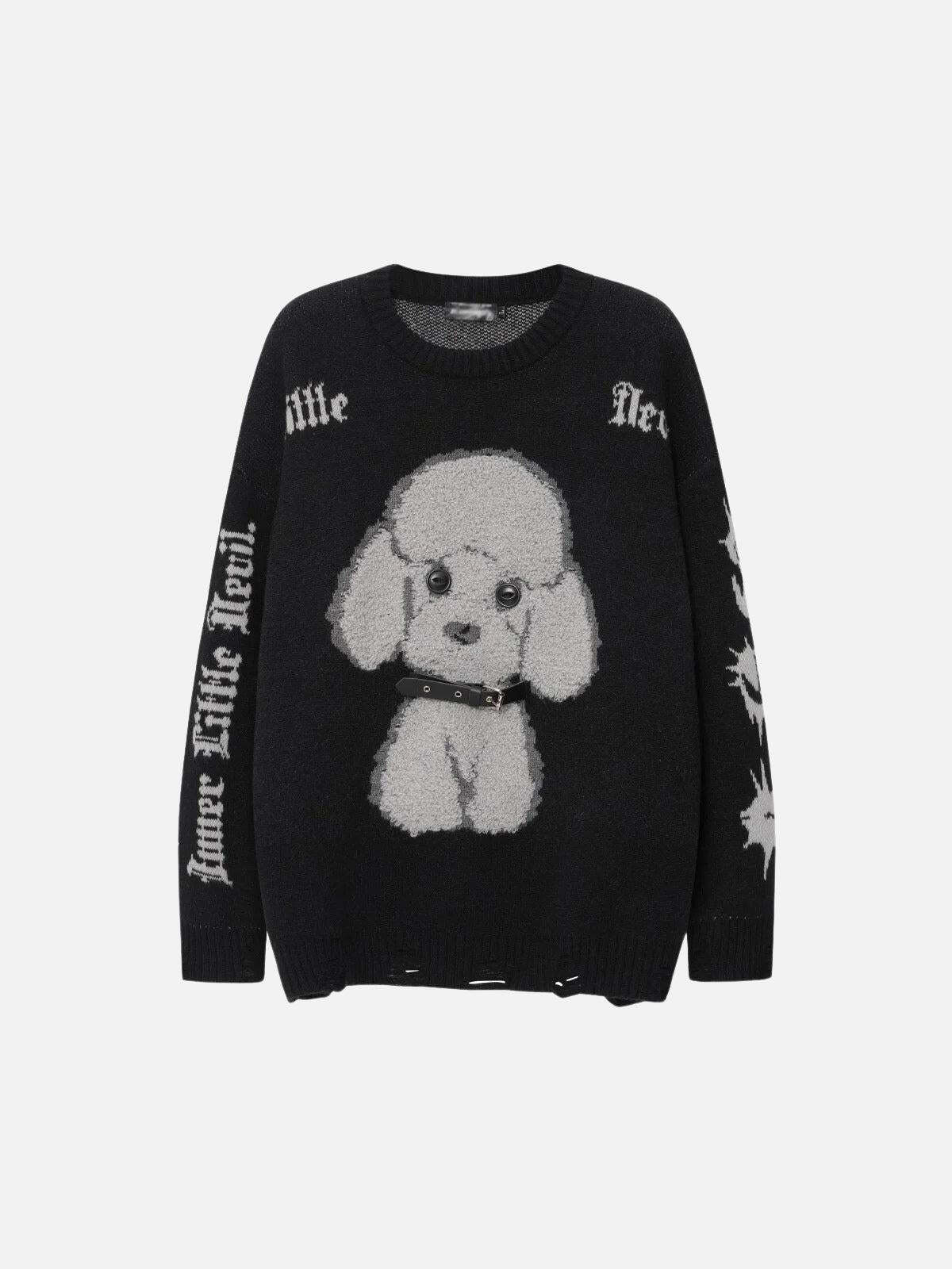 Break the monotony with a sweater that’s as bold as your vibe. This rich red piece features a playful poodle graphic that pops with personality, while the edgy text details down the sleeves add a touch of streetwear rebellion. Its cozy knit fabric wraps you in warmth, perfect for layering over your favorite tees. Available in sizes from S to XL, this sweater is ready to redefine your Y2K-inspired wardrobe in both red and black hues. Pair it with distressed jeans for a look that’s undeniably you. Ready to make it yours?