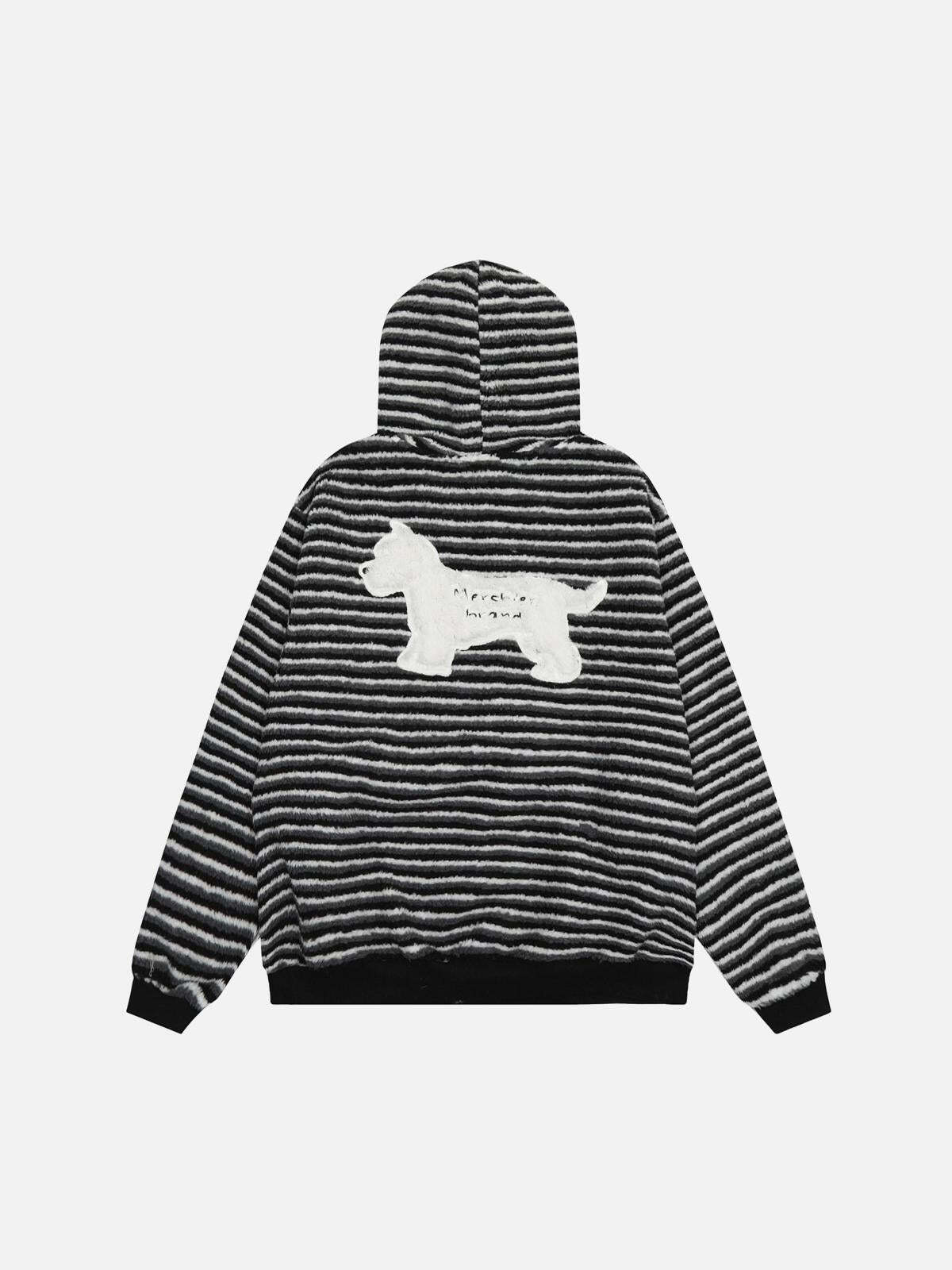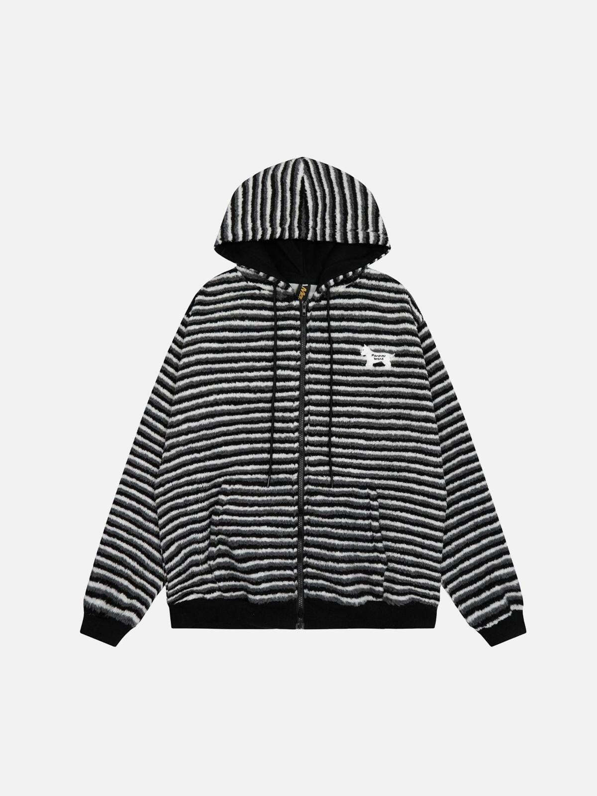 Concert Outfit Puppy Patch Embroidered Striped Zip-Up Hoodie