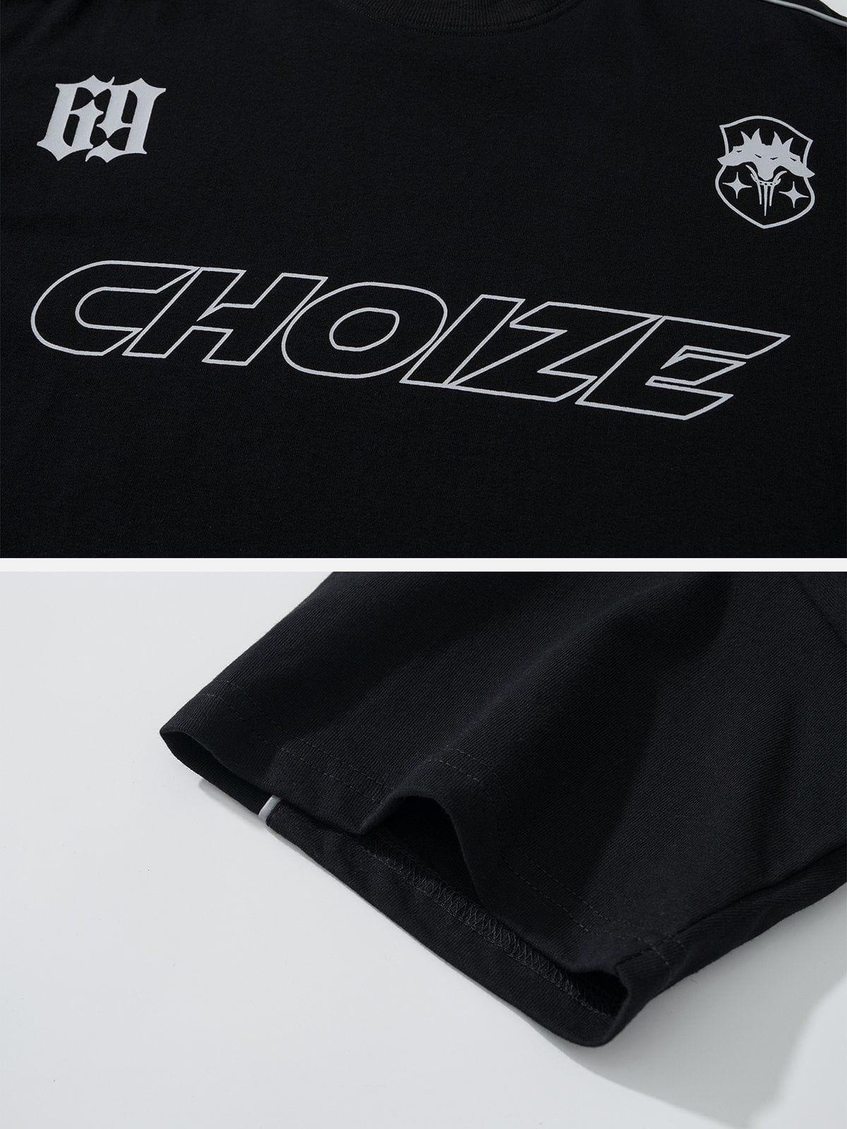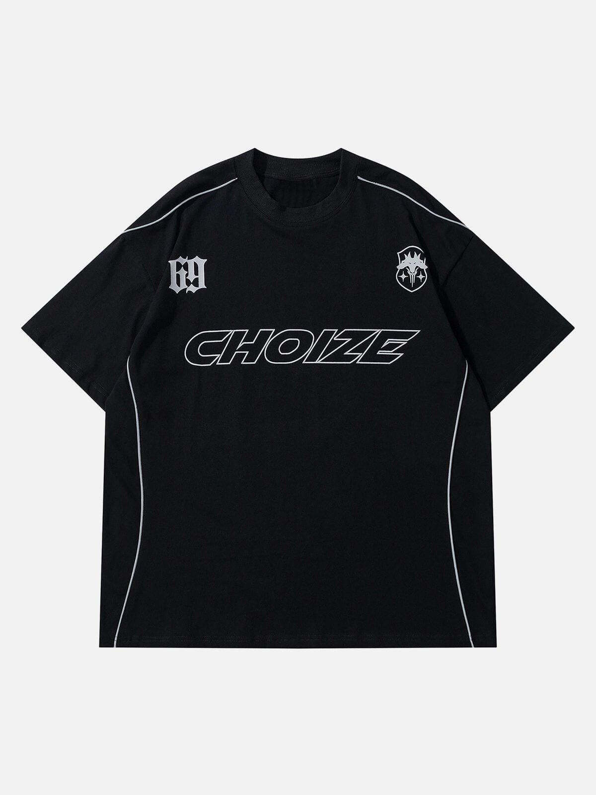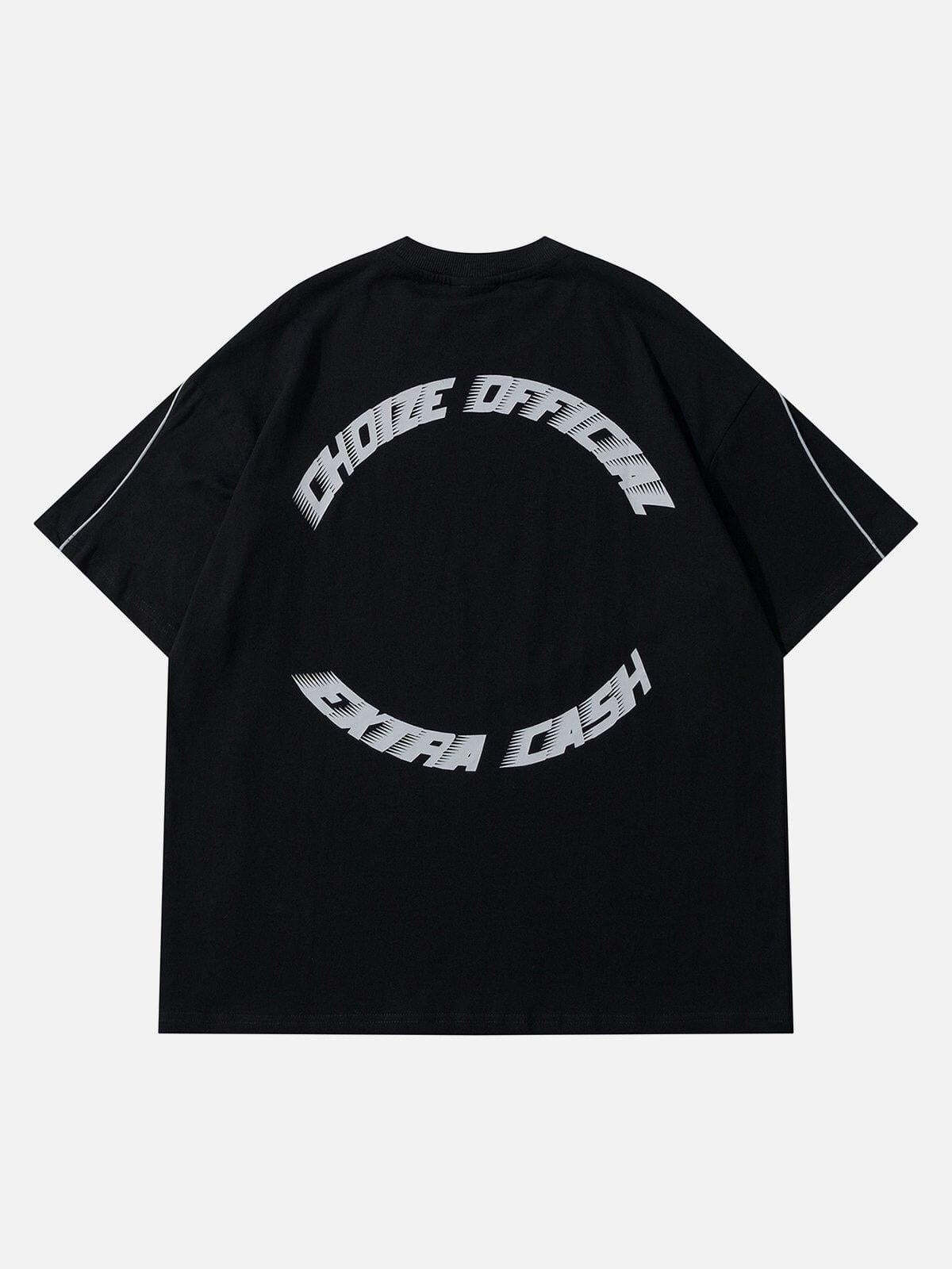 Push boundaries with a bold aesthetic that speaks volumes in any urban landscape. This sleek black tee, accented with striking graphic elements and crisp white piping, is the ultimate fusion of comfort and edge, making it your go-to piece for summer fashion inspo. Available in sizes S to XL, its relaxed fit ensures you stay cool while embracing your unique street style. Whether paired with joggers or distressed denim, this tee is a versatile staple for those who dare to be different. Slip into this standout design and let your outfit do the talking.