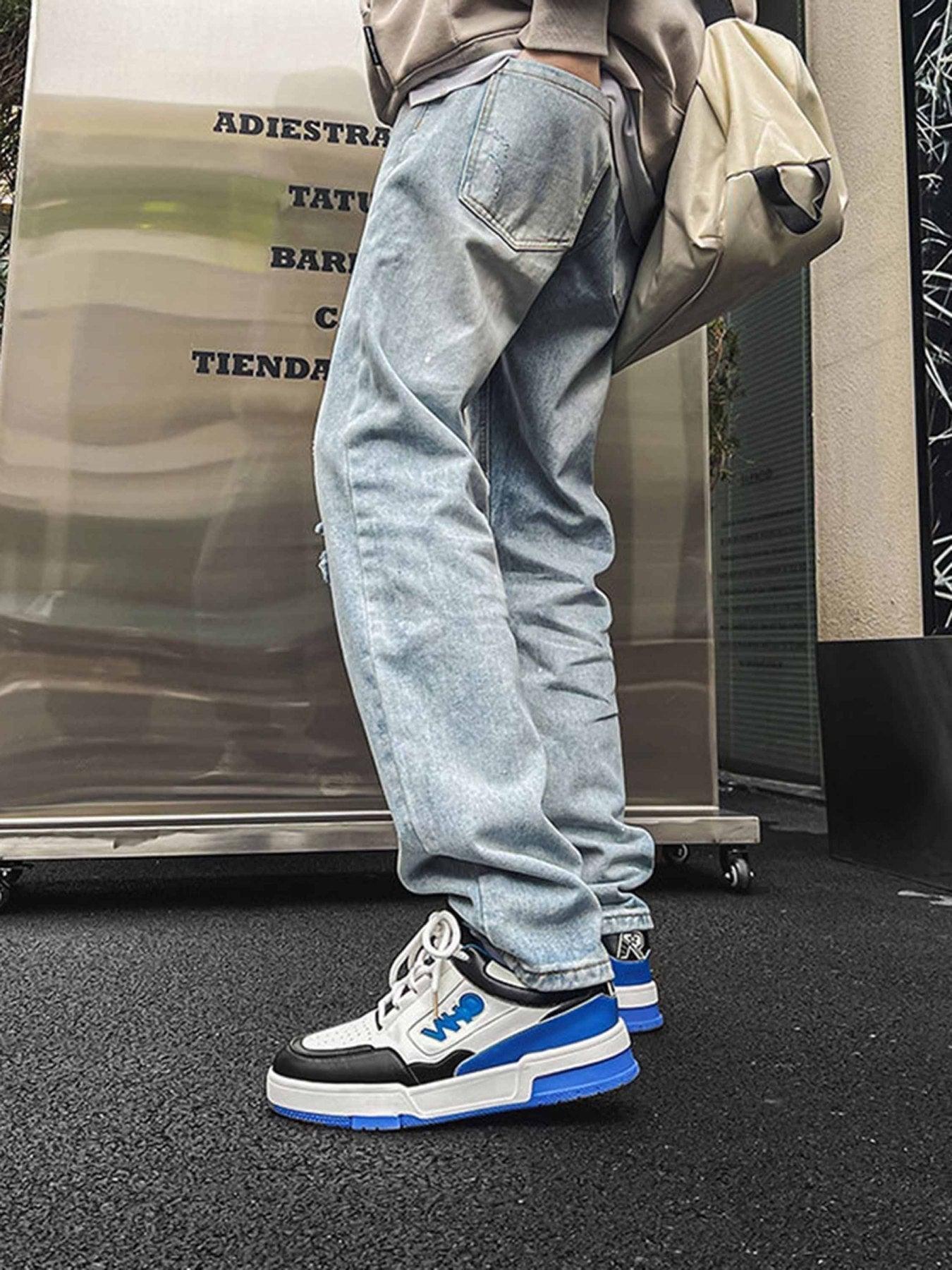 Step up your streetwear game with these kicks that blend bold black and electric blue accents for the ultimate urban vibe. The sleek leather finish and dynamic color blocking make them a standout addition to any Y2K-inspired outfit. Available in sizes 38 to 44, these sneakers ensure a comfortable fit while turning heads on the street. Pair them with your favorite distressed jeans or joggers for effortless outfit ideas. Don’t just follow the trend—set it.