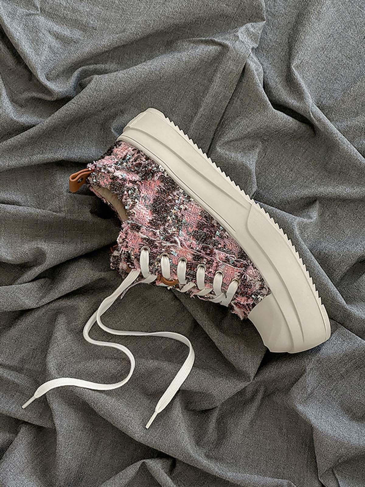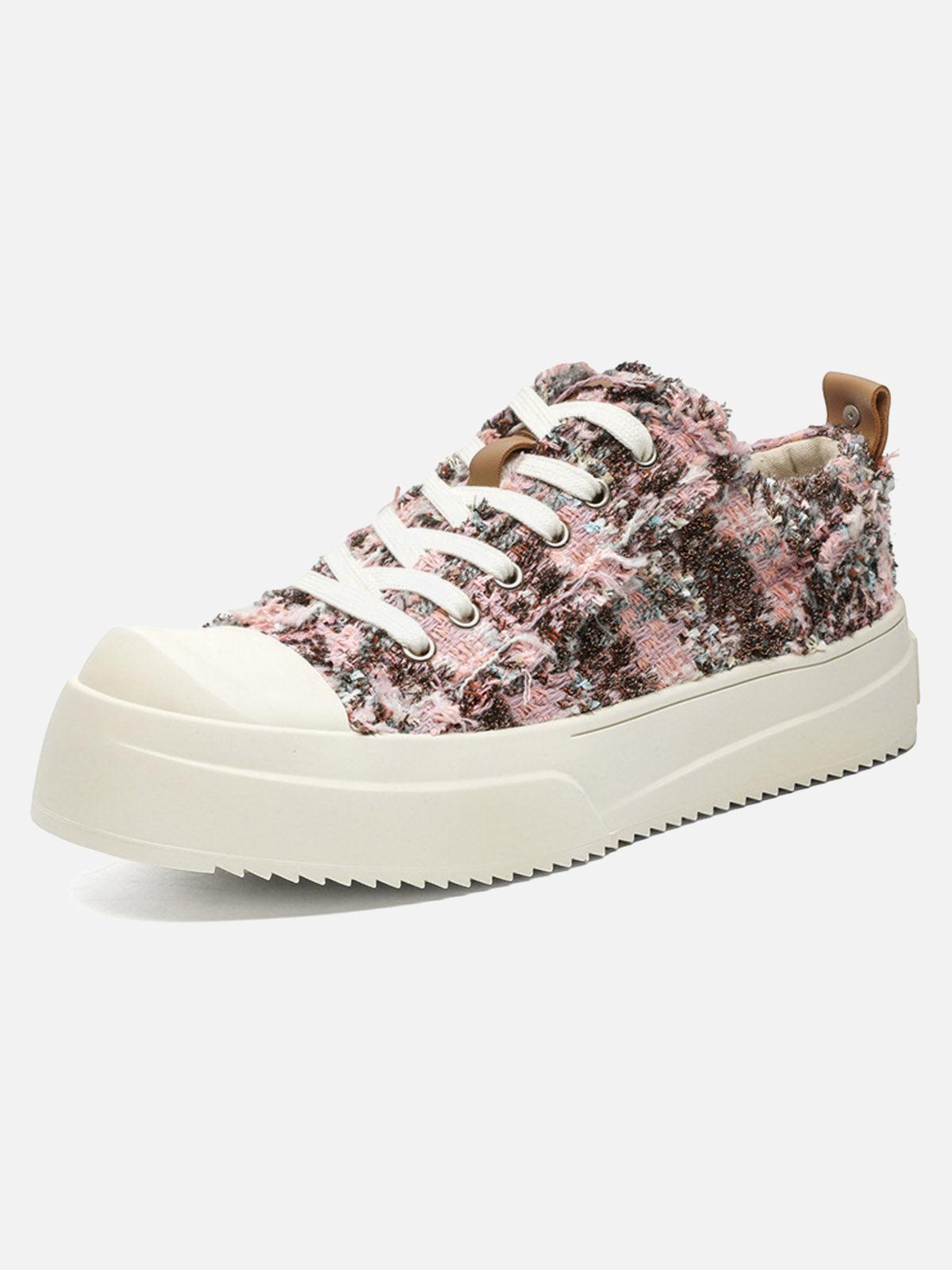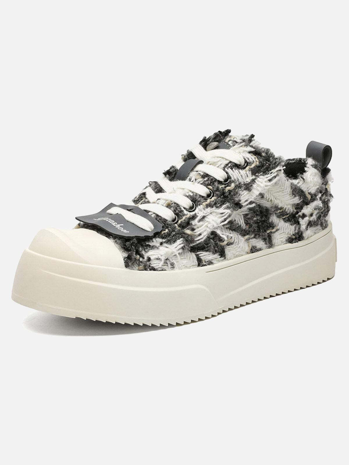 These Retro Canvas Irregular Sneakers from are your go-to for Spring and Autumn urban adventures. Featuring a unique plaid pattern and a chunky sole, they merge style with comfort, ensuring support during your daily outings, school runs, or leisure activities. The white lace-up closure offers a versatile fit, making them a bold addition to any streetwear ensemble.