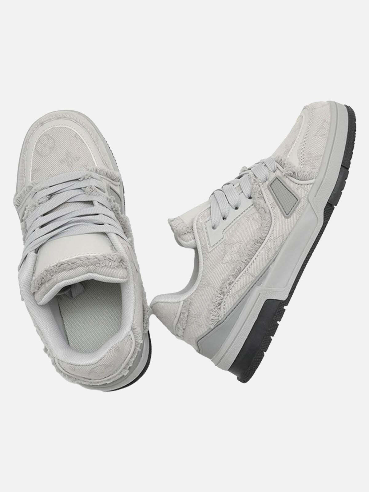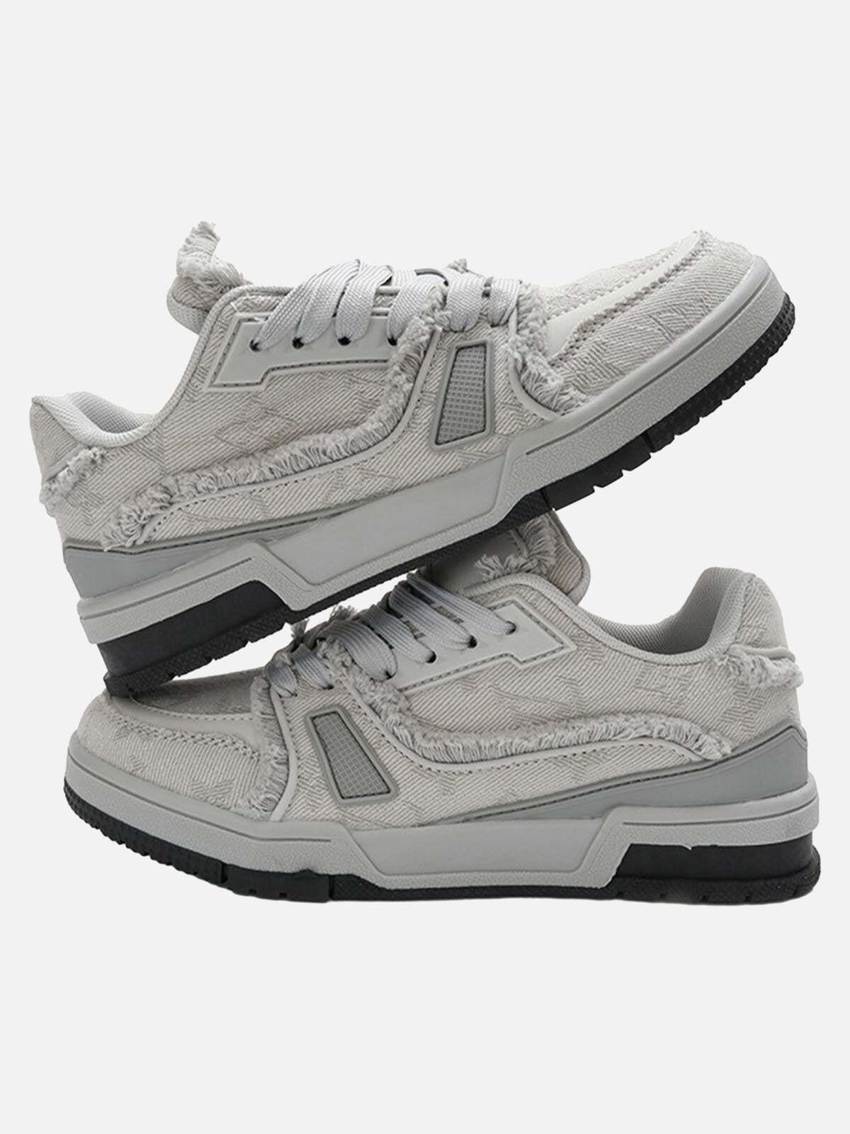 Command attention with Retro Denim Sneakers, crafted from premium leather and breathable mesh for a perfect blend of style and comfort. A chunky sole elevates your streetwear game, offering added support and a boost in height. Ideal for spring through fall, these sneakers feature a lace-up closure that ensures a secure fit. Stay cool and dry with a design that doesn’t compromise on performance or flair.
