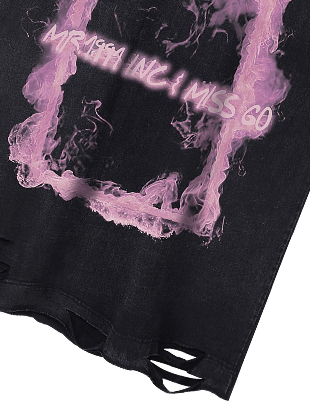 Rebel against the ordinary with this edgy sleeveless top, where the distressed hem and bold chain detail redefine streetwear fashion. A striking purple graphic erupts against the deep black fabric, creating a visual impact that’s both fierce and enigmatic. Available in sizes S to XL, this top offers a relaxed fit that pairs effortlessly with your favorite denim or layered under a rugged jacket. Whether you’re rocking it in classic black or fresh white, it’s designed to keep you at the forefront of style. Embrace the urban vibe and let your outfit echo the boldness within.