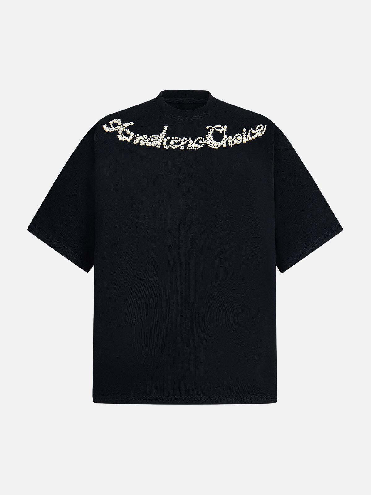 Concert Outfit Retro Embroidery Beaded Letter Print T-shirt – Concert Outfit