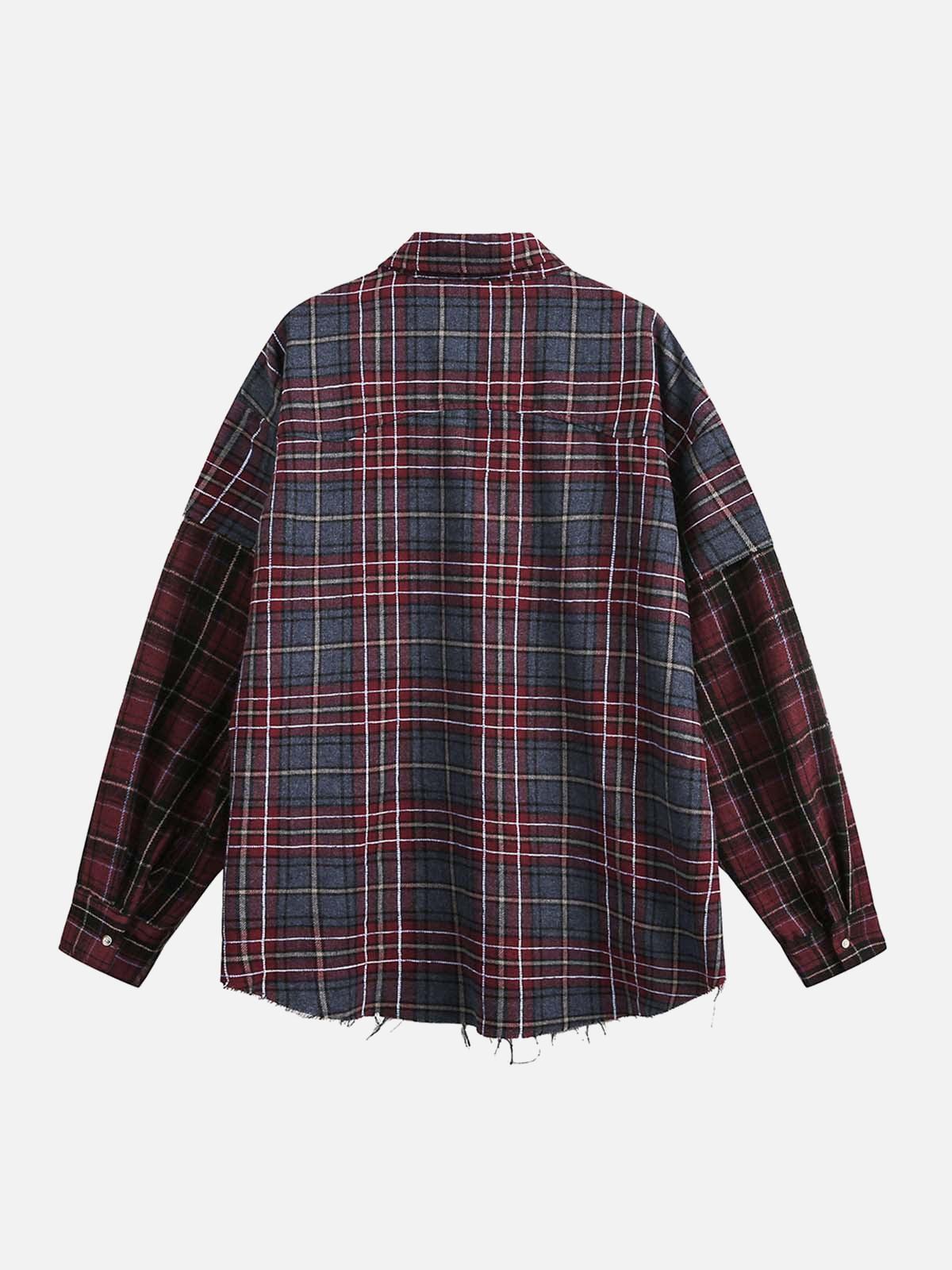 This plaid shirt breaks boundaries with its bold burgundy and navy checkered pattern, blending effortlessly into any urban wardrobe. The textured fabric and relaxed fit offer a laid-back vibe, perfect for layering over a tee or under a jacket. Available in sizes from M to 2XL, it’s designed for those who appreciate comfort without sacrificing style. Pair this versatile piece with your favorite jeans and sneakers for a look that’s both effortless and edgy. Ready to redefine your streetwear fashion game?