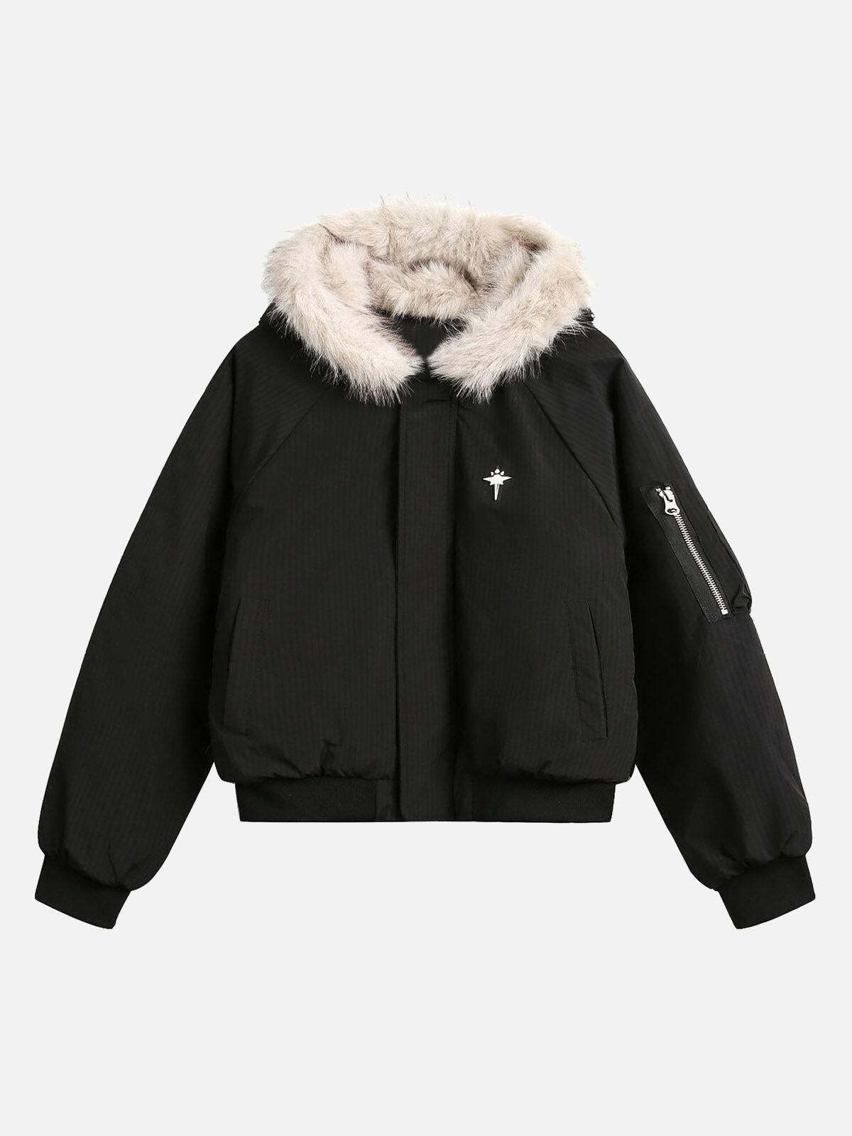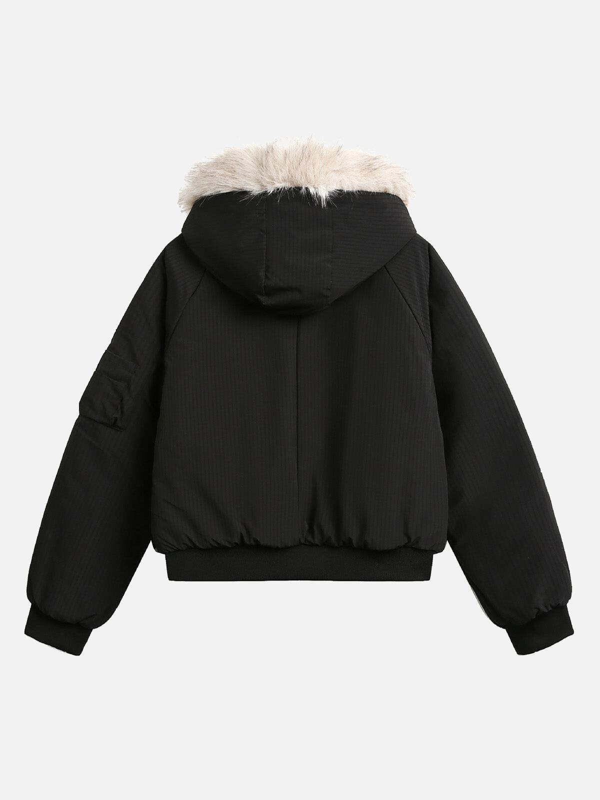 Concert Outfit Retro Fur Hooded Fleece Bomber Jacket High-quality product featuring concert outfit ideas, puffer jacket outfit, country concert outfit and more. Modern design that fits the latest trends. Premium materials ensure durability and comfort. Order now for special offers! Product designed with attention to every detail. Suitable for all occasions and personal styles.