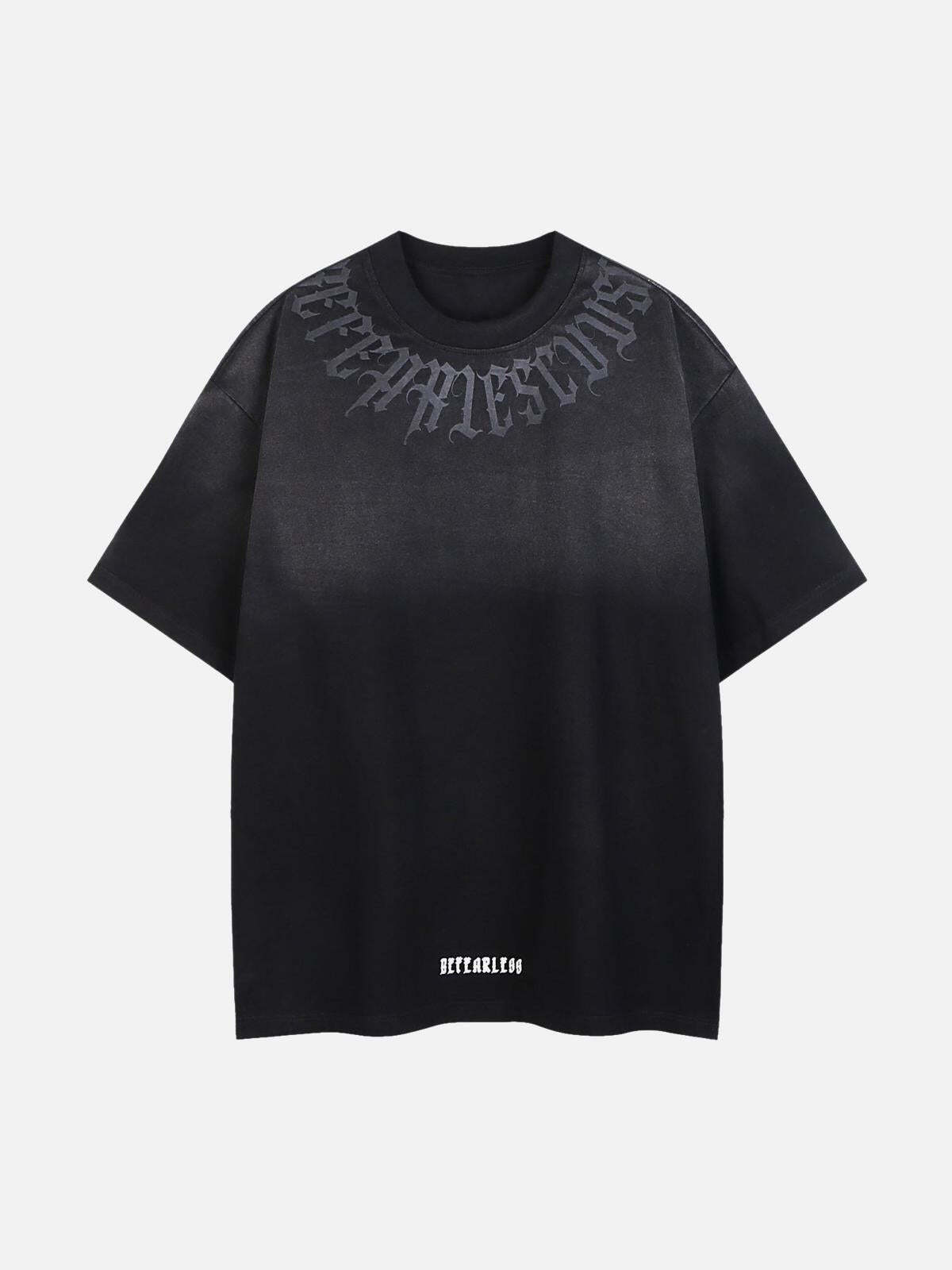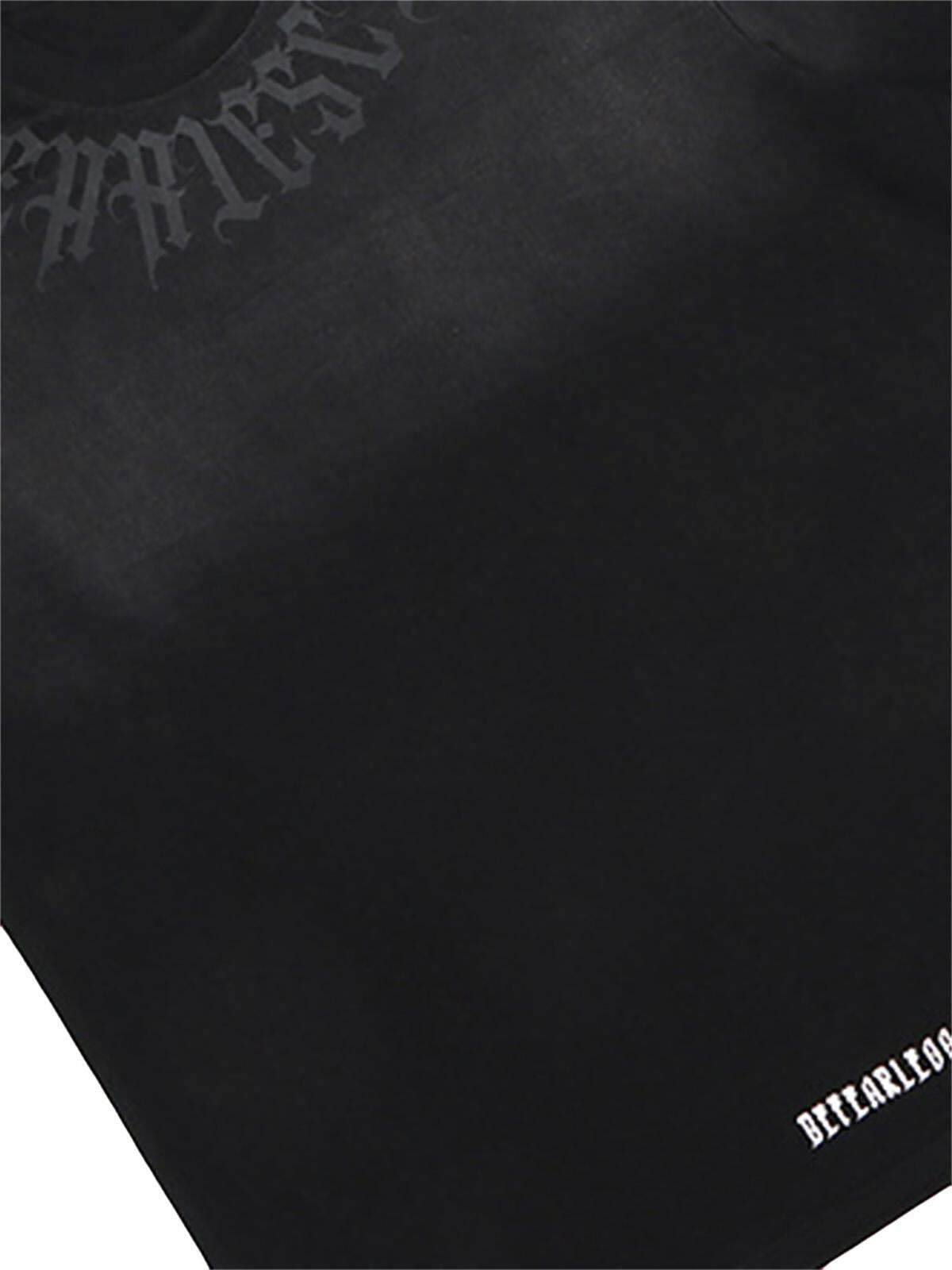 Break the monotony with this audacious black tee, where bold gothic lettering dominates the neckline, whispering urban tales of rebellion. The rich depth of black pairs effortlessly with any summer outfit, ensuring you’re always on point with your summer fashion inspo. Available in sizes from S to XL, its relaxed fit and soft texture promise comfort without compromising style. Layer it under a denim jacket or let it shine solo; either way, it’s your go-to for a fearless summer style. Grab yours today and redefine your streetwear game.