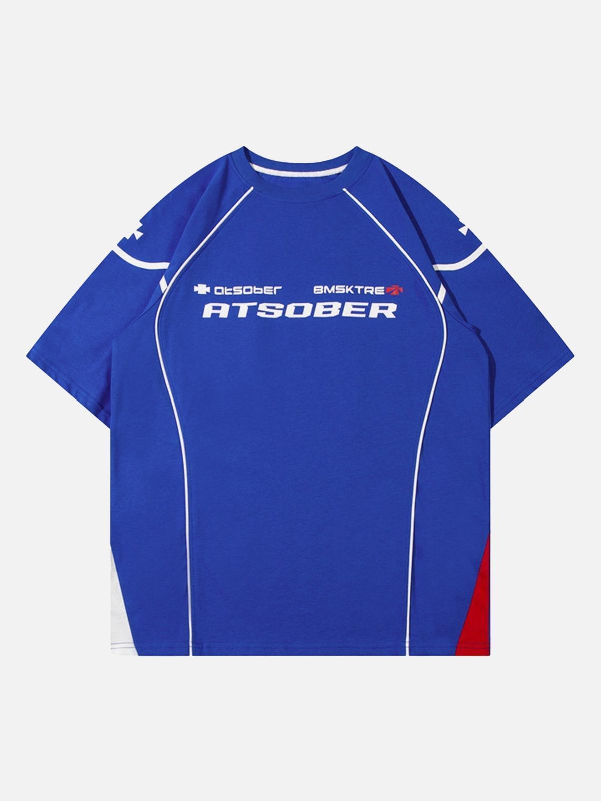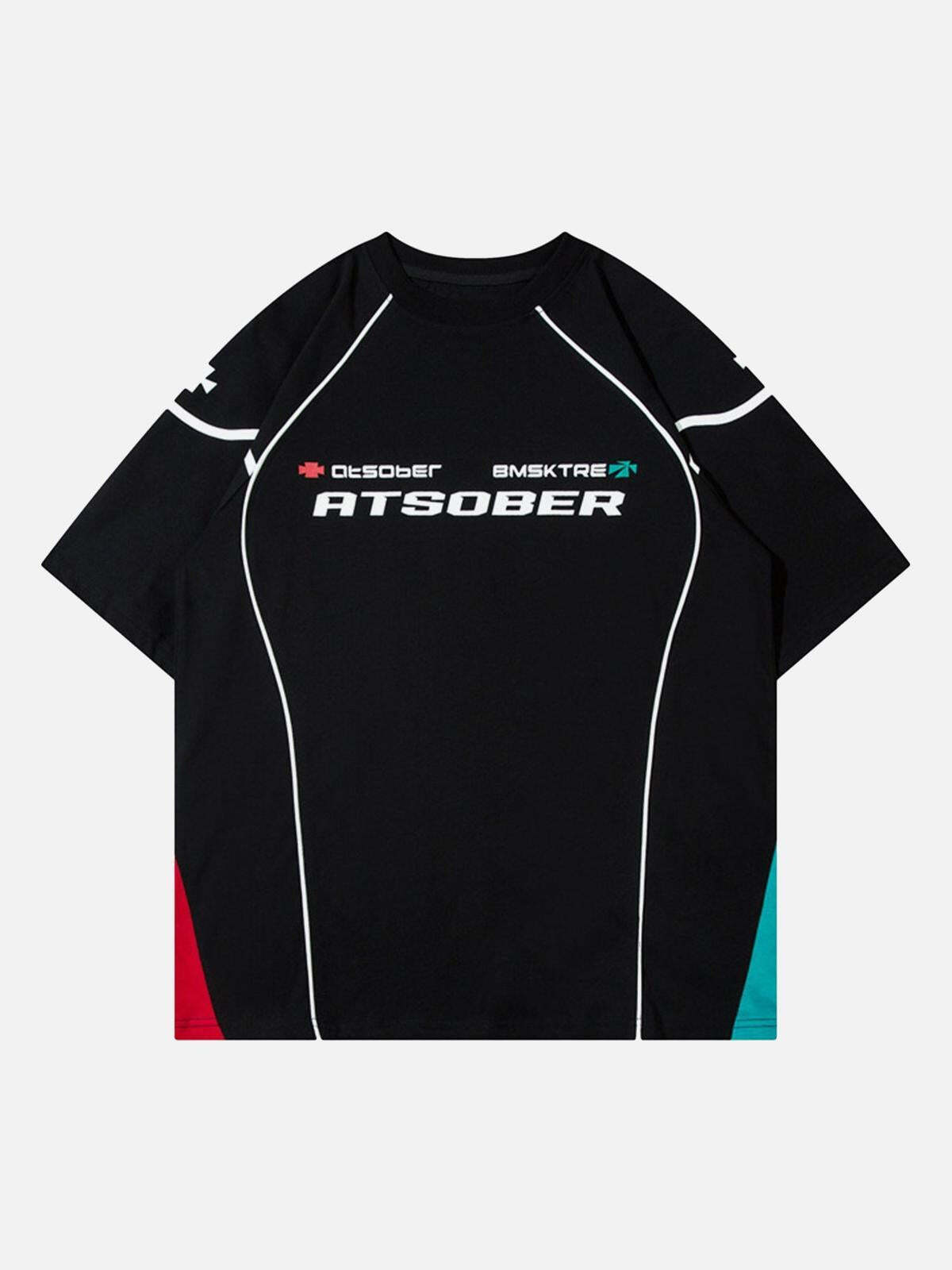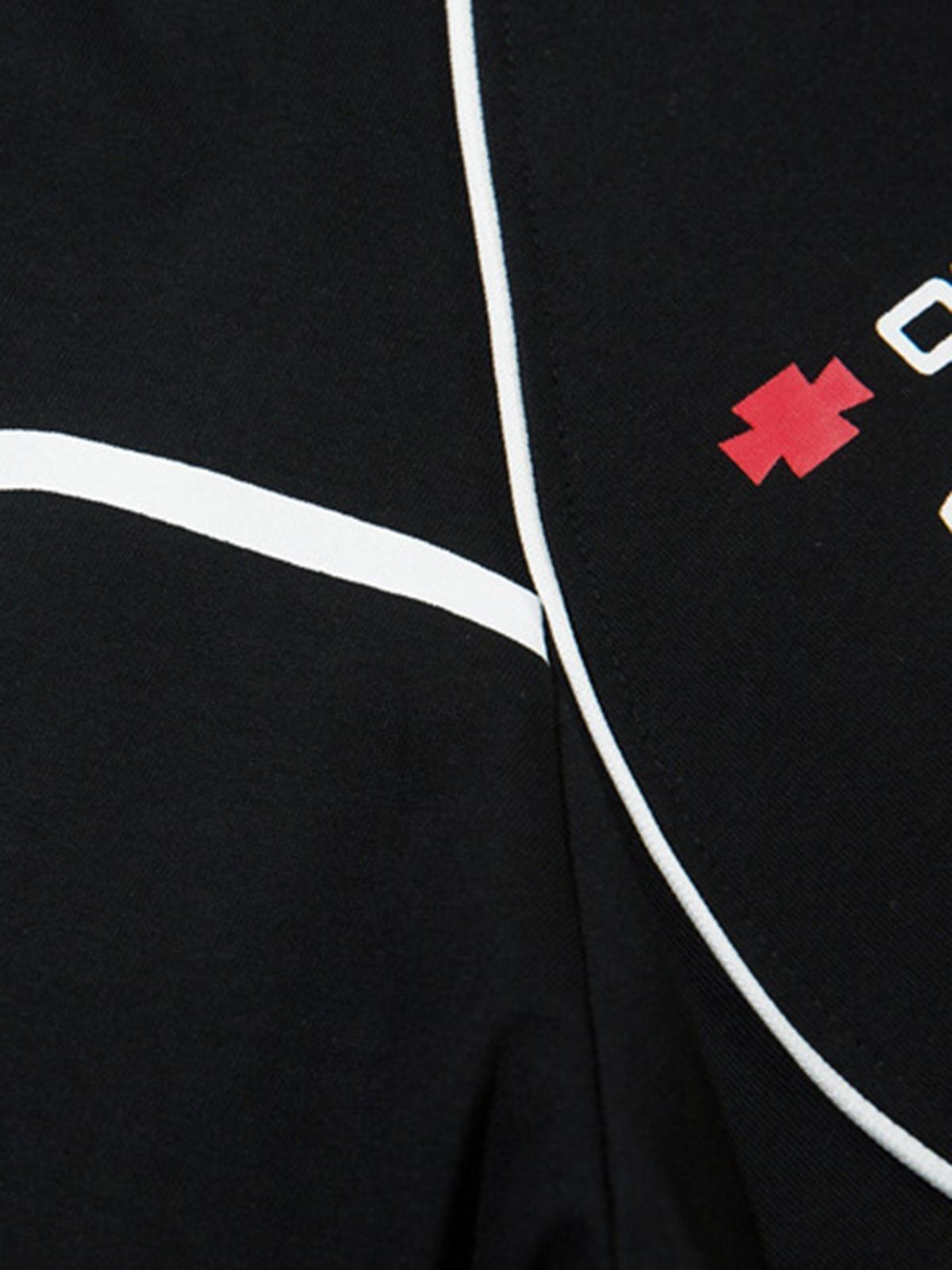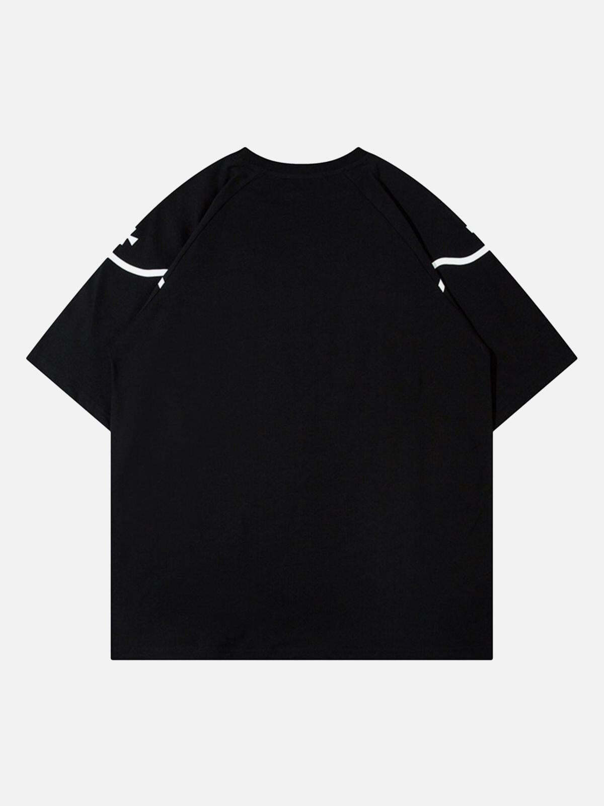 Push the boundaries of urban style with this sleek tee, where bold graphics and sharp white piping create a striking contrast against the deep black backdrop. The vibrant pops of red and turquoise on the sides add a daring edge, making it a perfect choice for those who thrive on being ahead in summer fashion inspo. Available in versatile sizes from M to 2XL, this piece offers a relaxed fit that feels as good as it looks, effortlessly pairing with both jeans and joggers. Choose between the intensity of black or the cool allure of blue, and let your summer style speak volumes. Grab yours now and redefine your streetwear game.